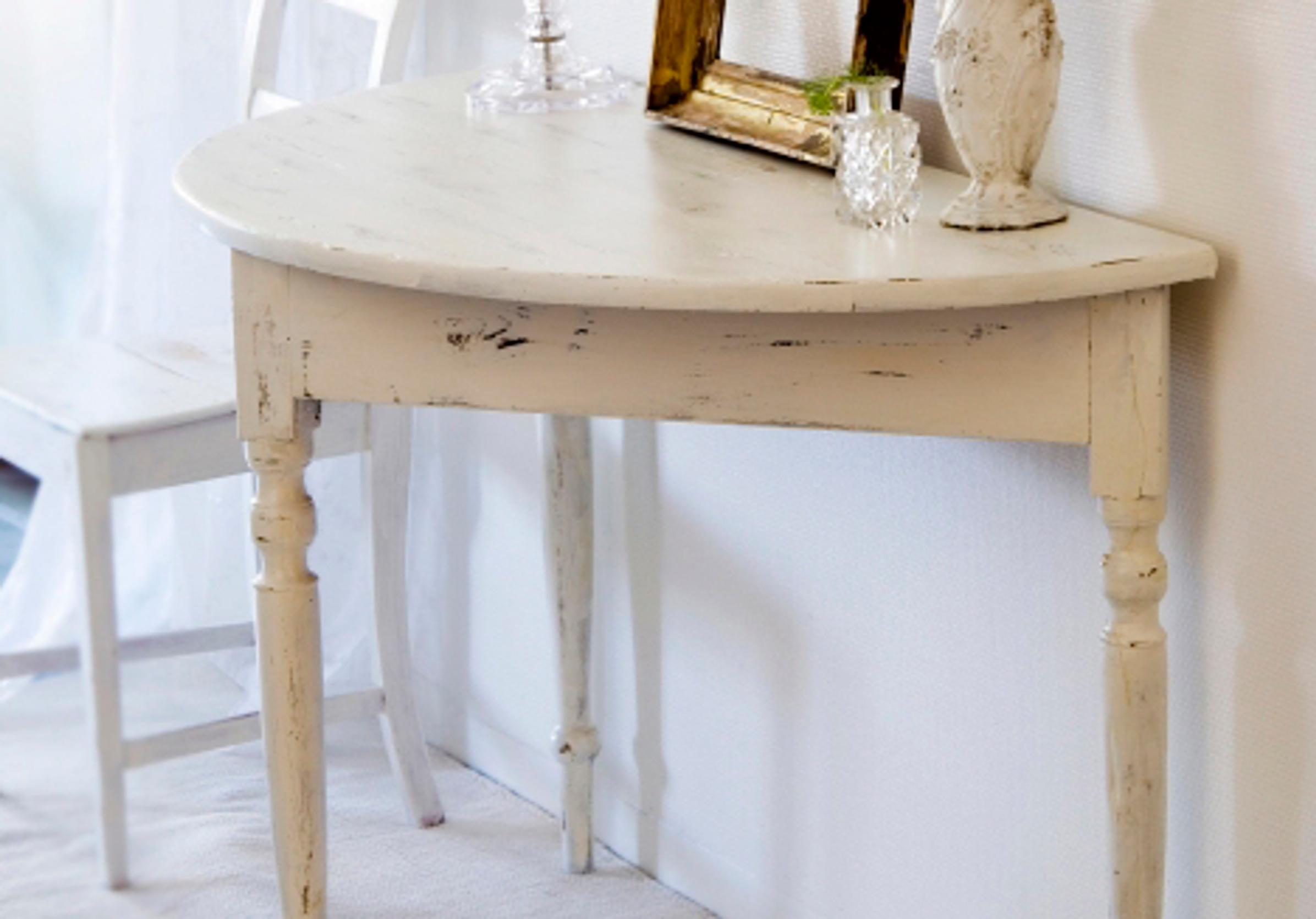 Uusistakin huonekaluista voi maalata vanhan näköisiä. Antaudu romuromantiikalle ja maalaa huonekaluille kauniin kulunut pinta.