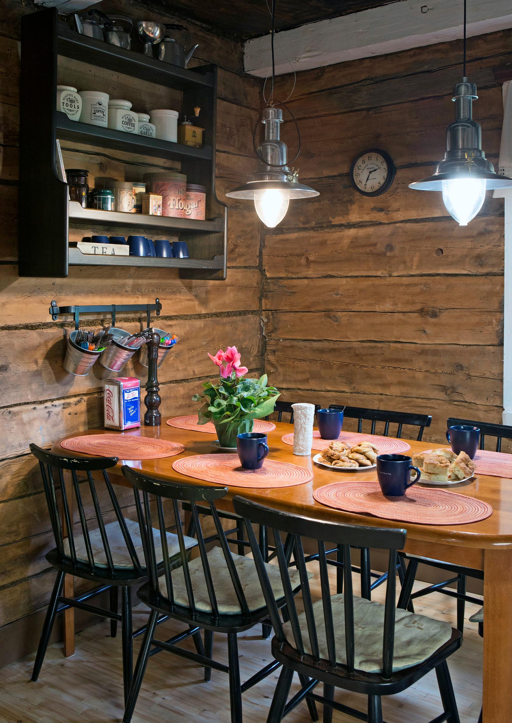 Hommaa piisasi, sillä lahonneet hirret vaihdettiin, alapohjan eristys uusittiin ja katto korjattiin. Remontissa vedettiin sähköjen lisäksi taloon myös viemäriputket. Rakentajat hyödynsivät kierrätettyjä materiaaleja, kuten vanhoja kaapistoja.