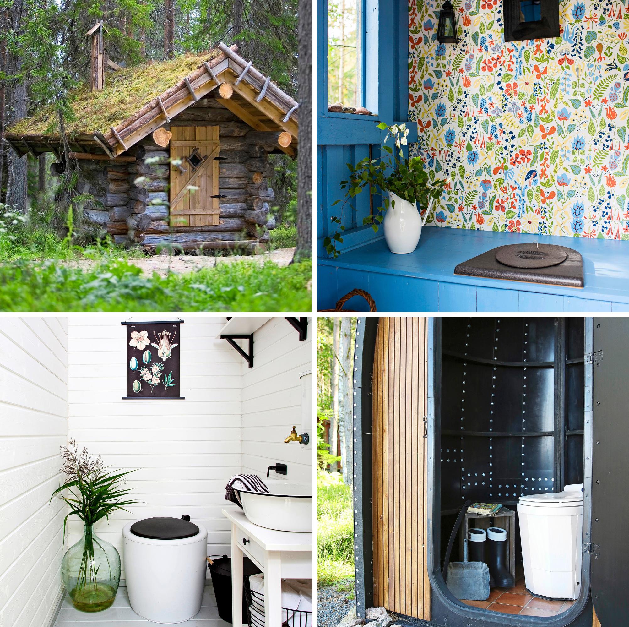 Värikäs kukkatapetti, lautashylly aarteille ja röllimäinen maja – huussista voi tehdä ihan sen näköisen kuin haluaa! Näissä näteiksi laitetuissa huusseissa on ilo pistäytyä.