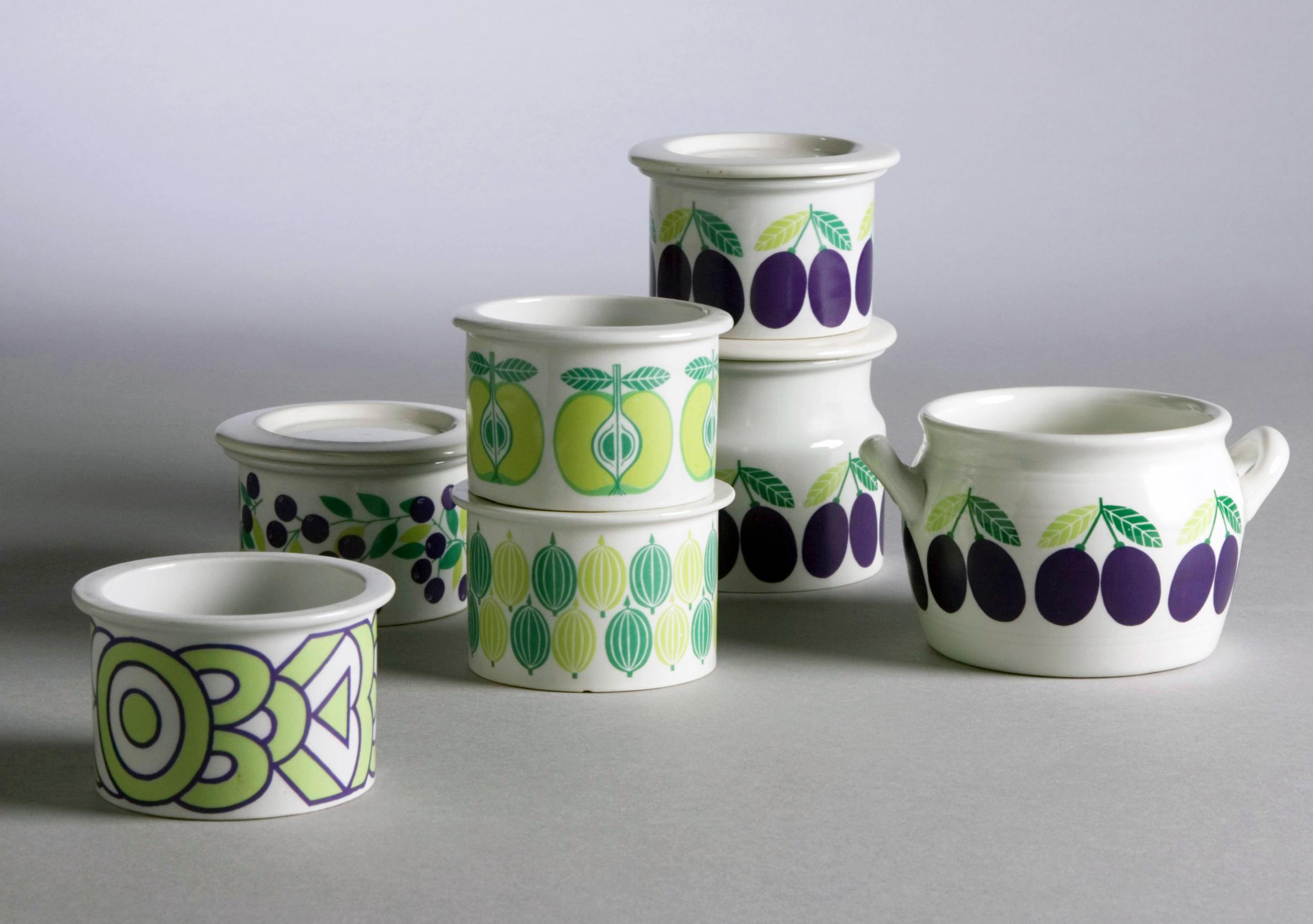 Pomona-sarjaan kuuluu värikkäitä, yksinkertaisia marja- ja hedelmäaiheisia astioita. Kuviot suunnitteli Arabian tehtaan koristesuunnittelija Raija Uosikkinen vuonna 1962.