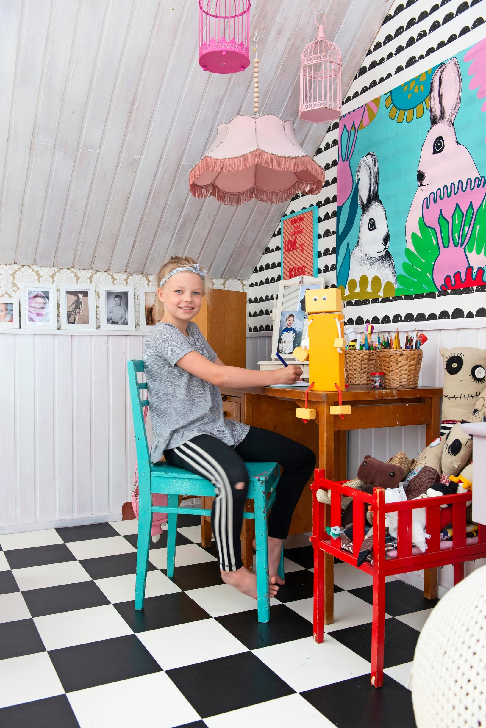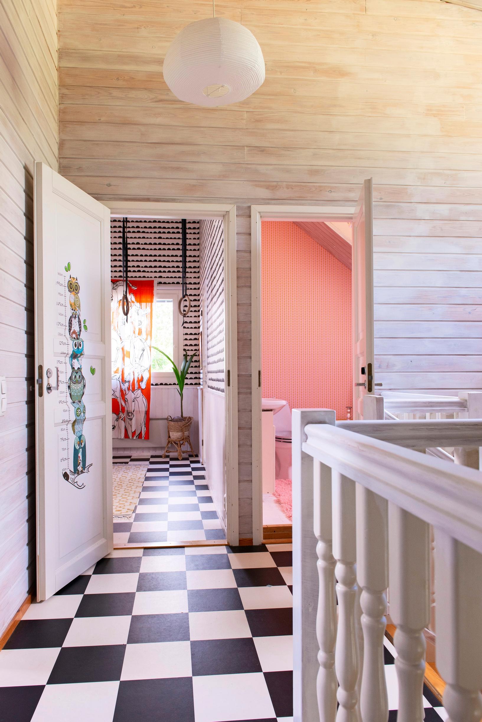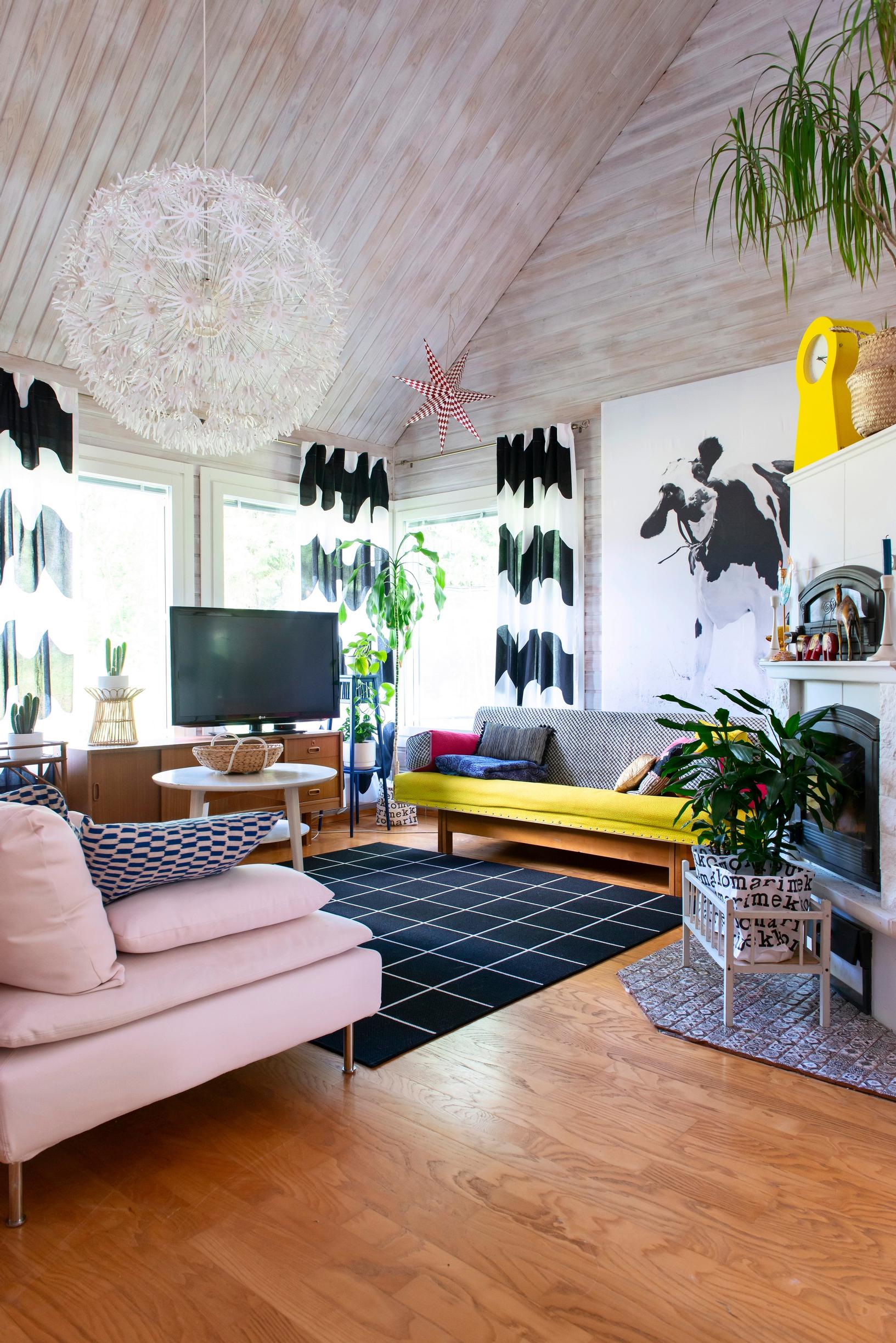 Huvikumpu valkoisen tiilitalon sisällä! Tuskin on väriä, jota ei Heinosten vinkeän kodin sisustuksesta löytyisi