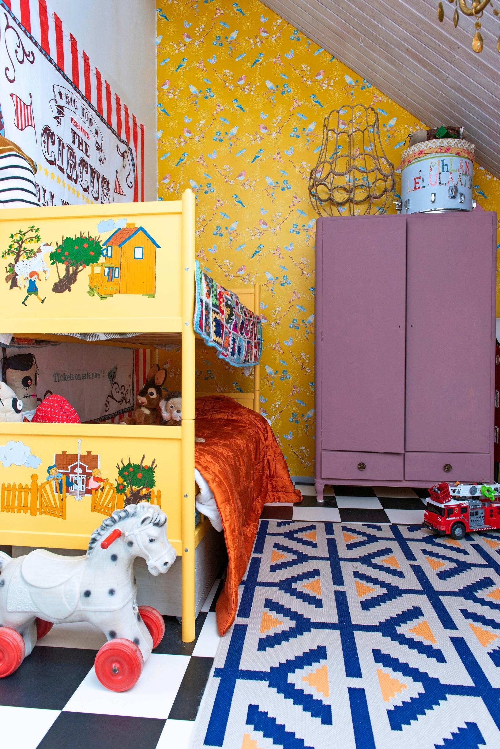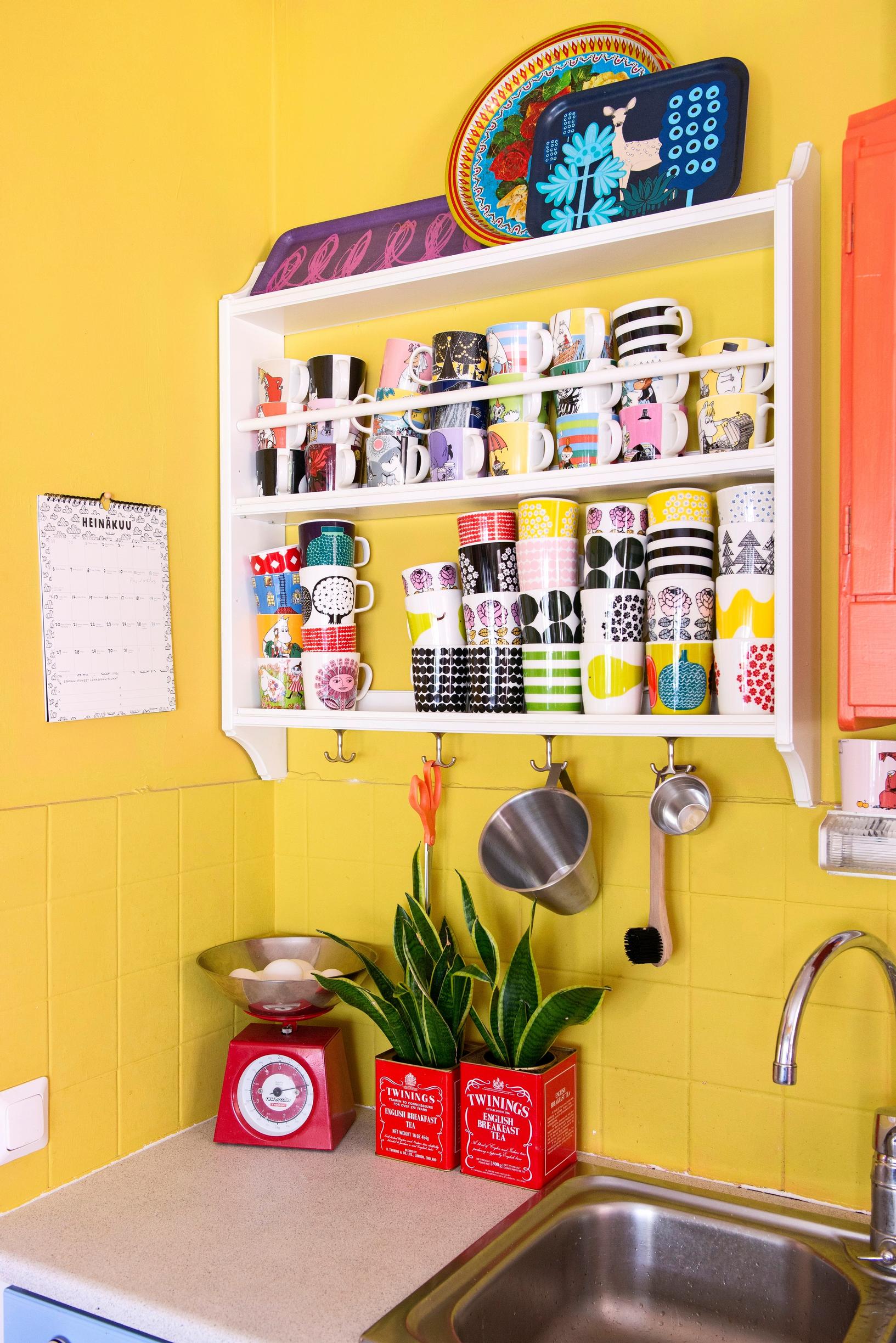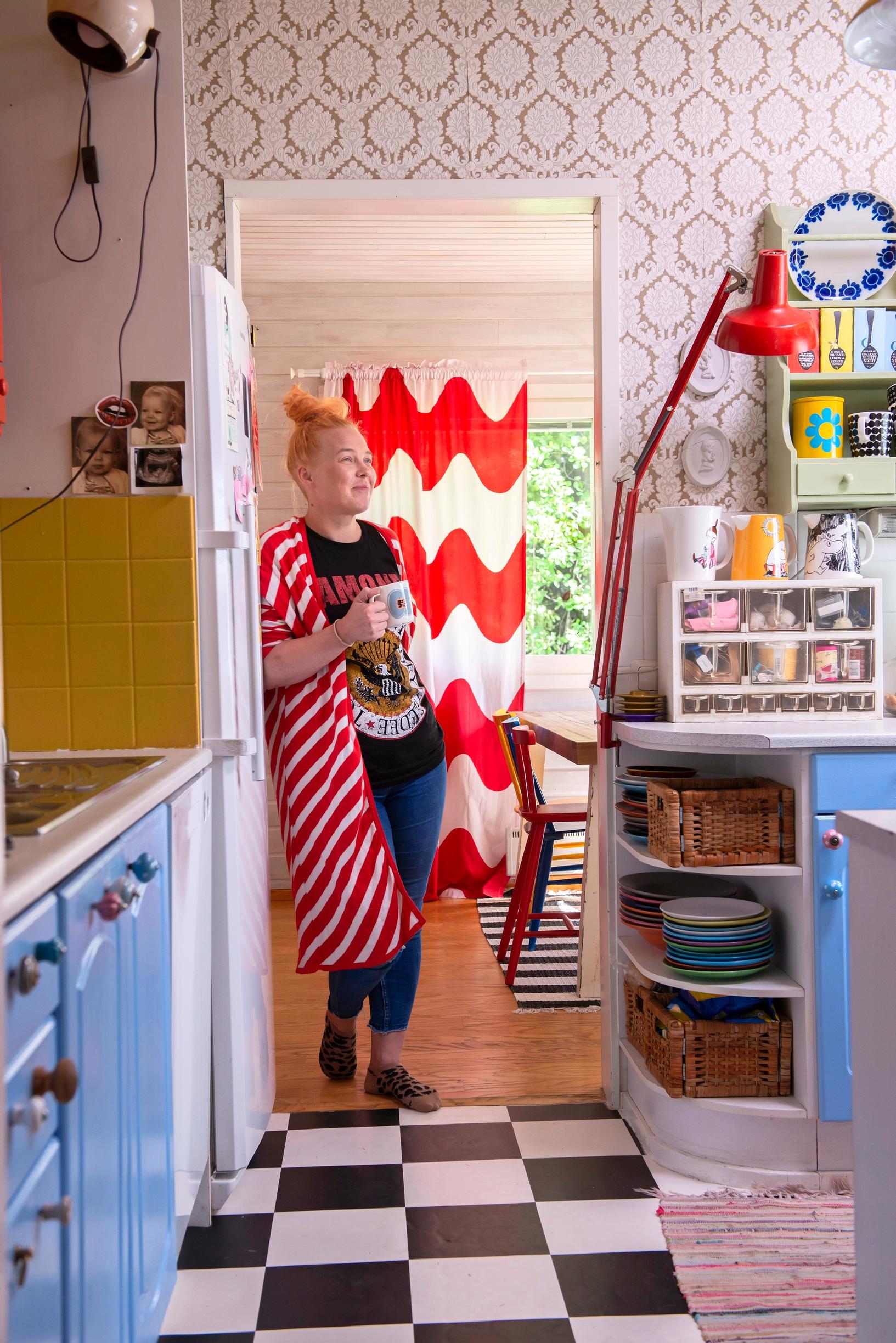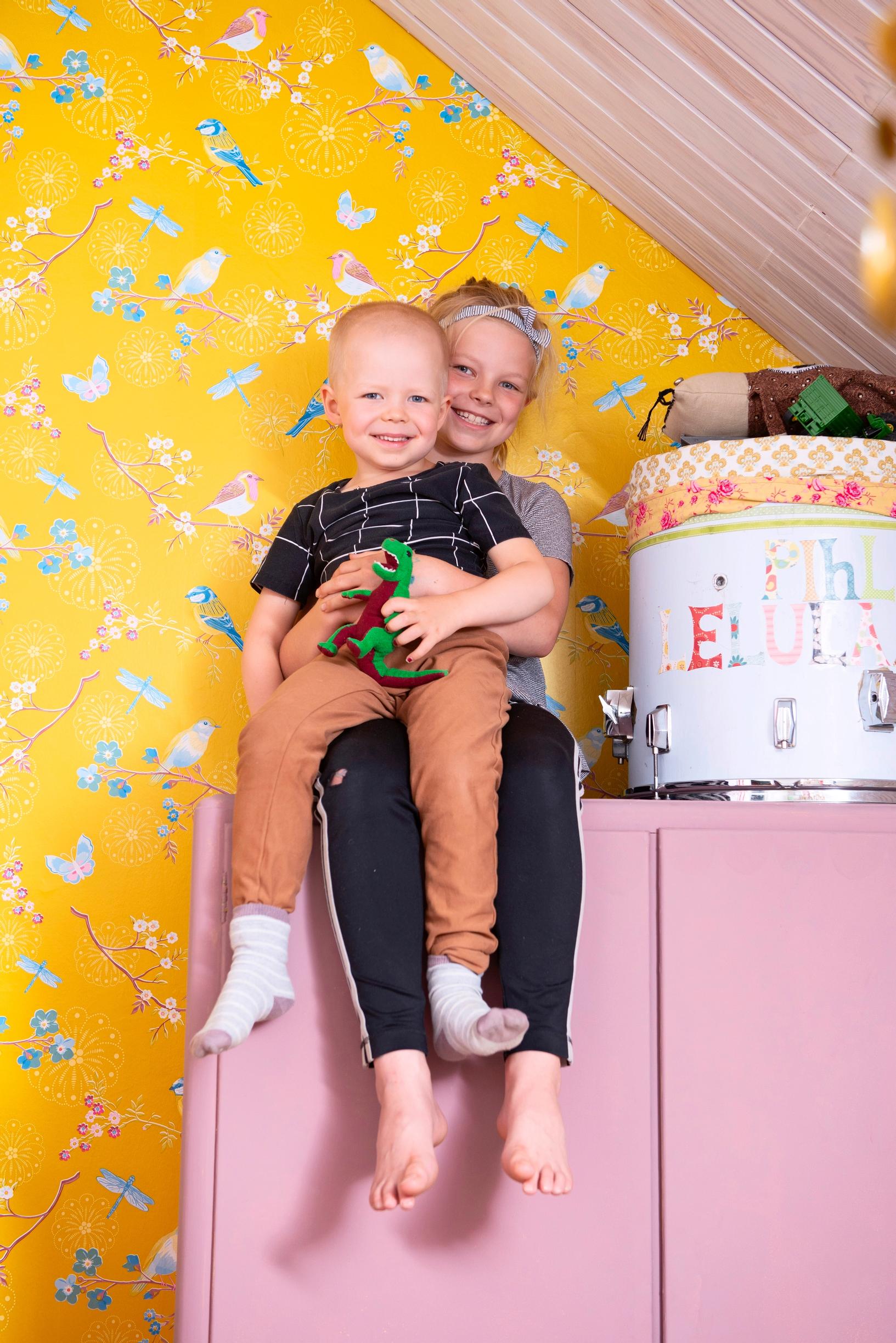 Huvikumpu valkoisen tiilitalon sisällä! Tuskin on väriä, jota ei Heinosten vinkeän kodin sisustuksesta löytyisi