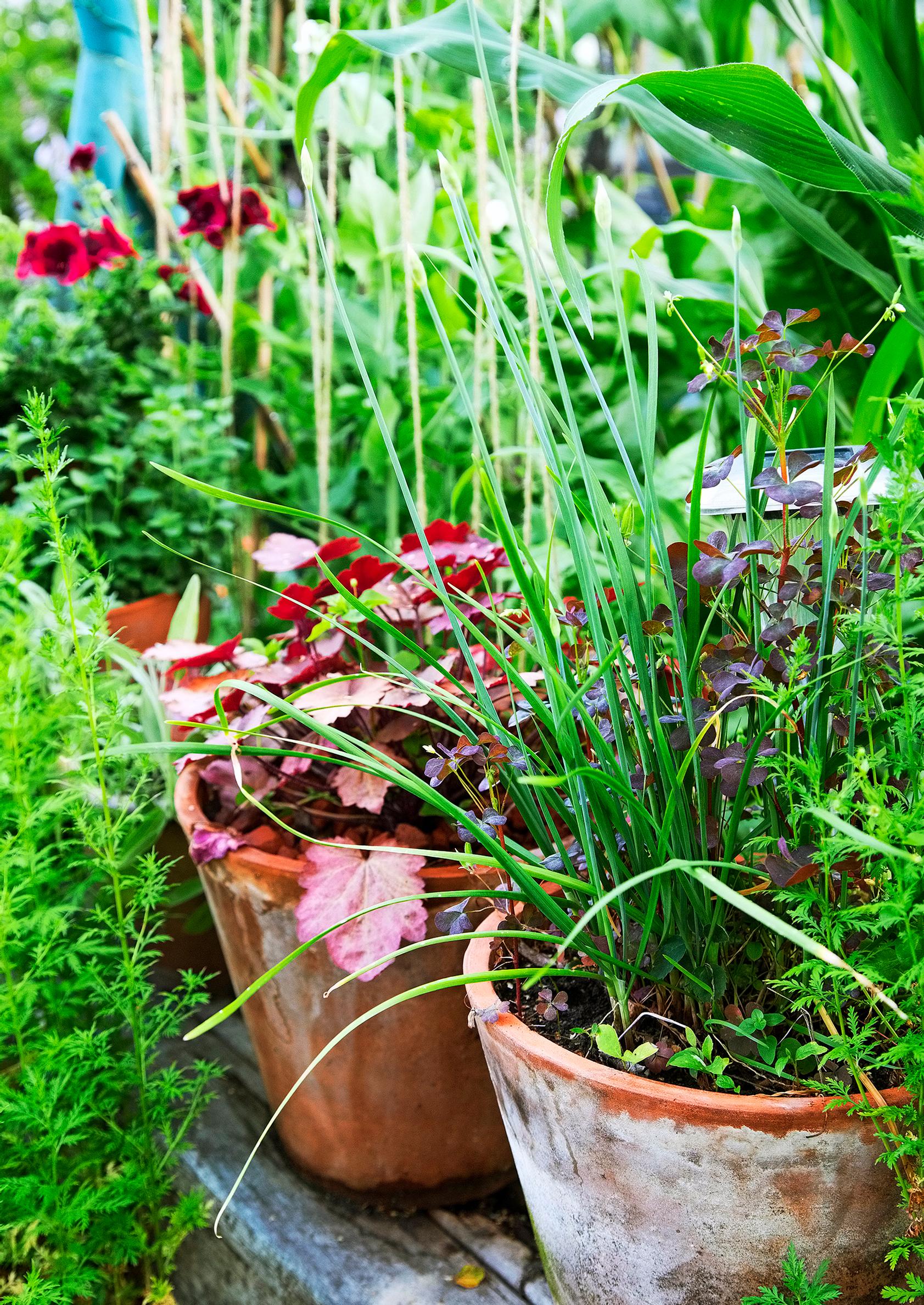 Ulkona puuhastelu on rentouttavaa. Samalla saan käyttää mielikuvitustani ja sommitella kasveja yhteen. Tykkään leikitellä väreillä ja muodoilla. Istutan oleskelupation ympäristön vähän erinäköiseksi joka vuosi. Tänä vuonna siellä on paljon tummia lehtiä ja dramaattisia kukkasävyjä.
