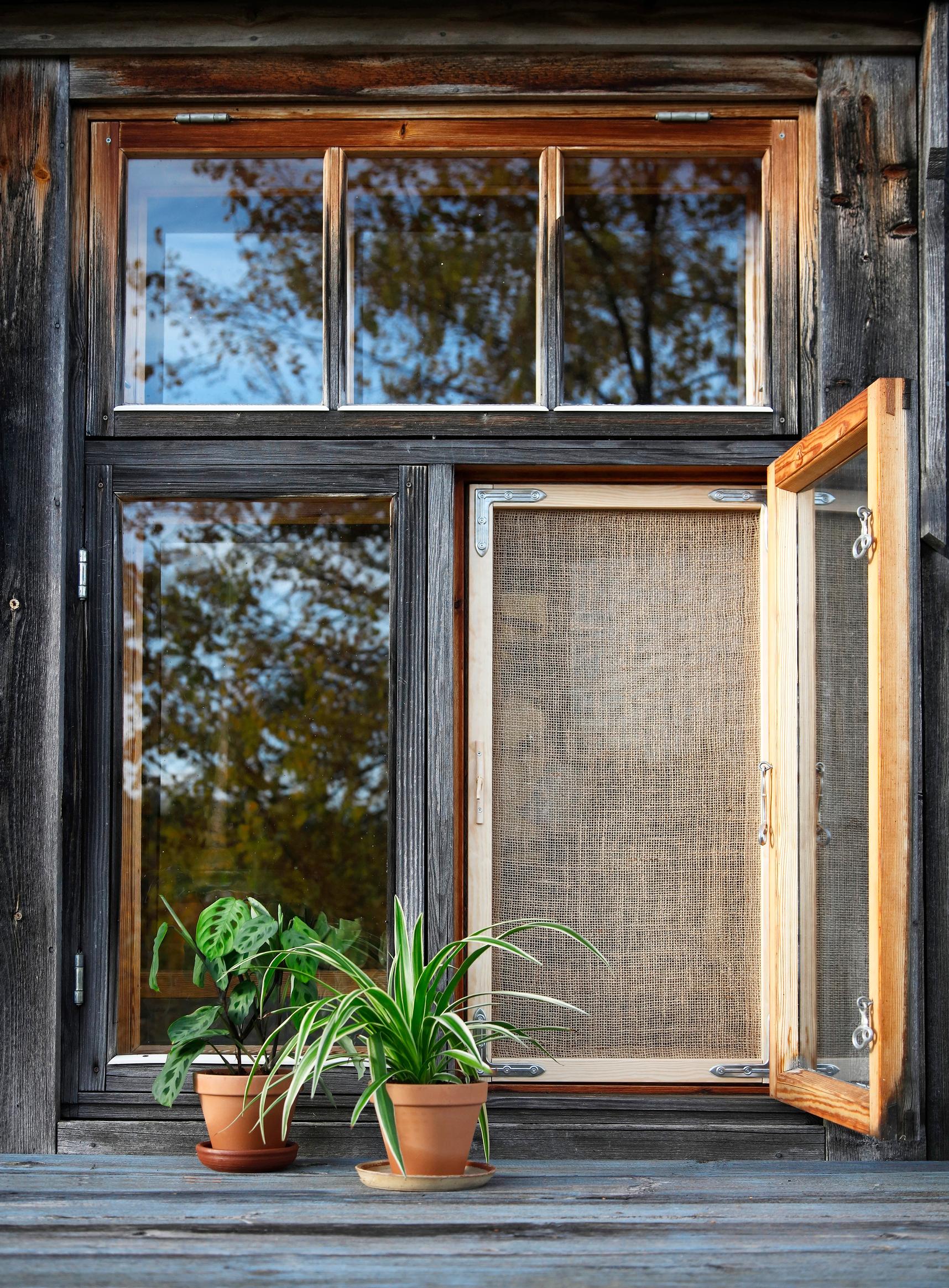 Tarkasti mitoitettu ja ikkunoiden tyyliin sopiva hyönteisverkko on kaunistus eikä kauhistus. Kun alkukesällä askartelee päivän pari, nauttii loppukesän hyvästä sisäilmasta ilman surinoita ja ininöitä.