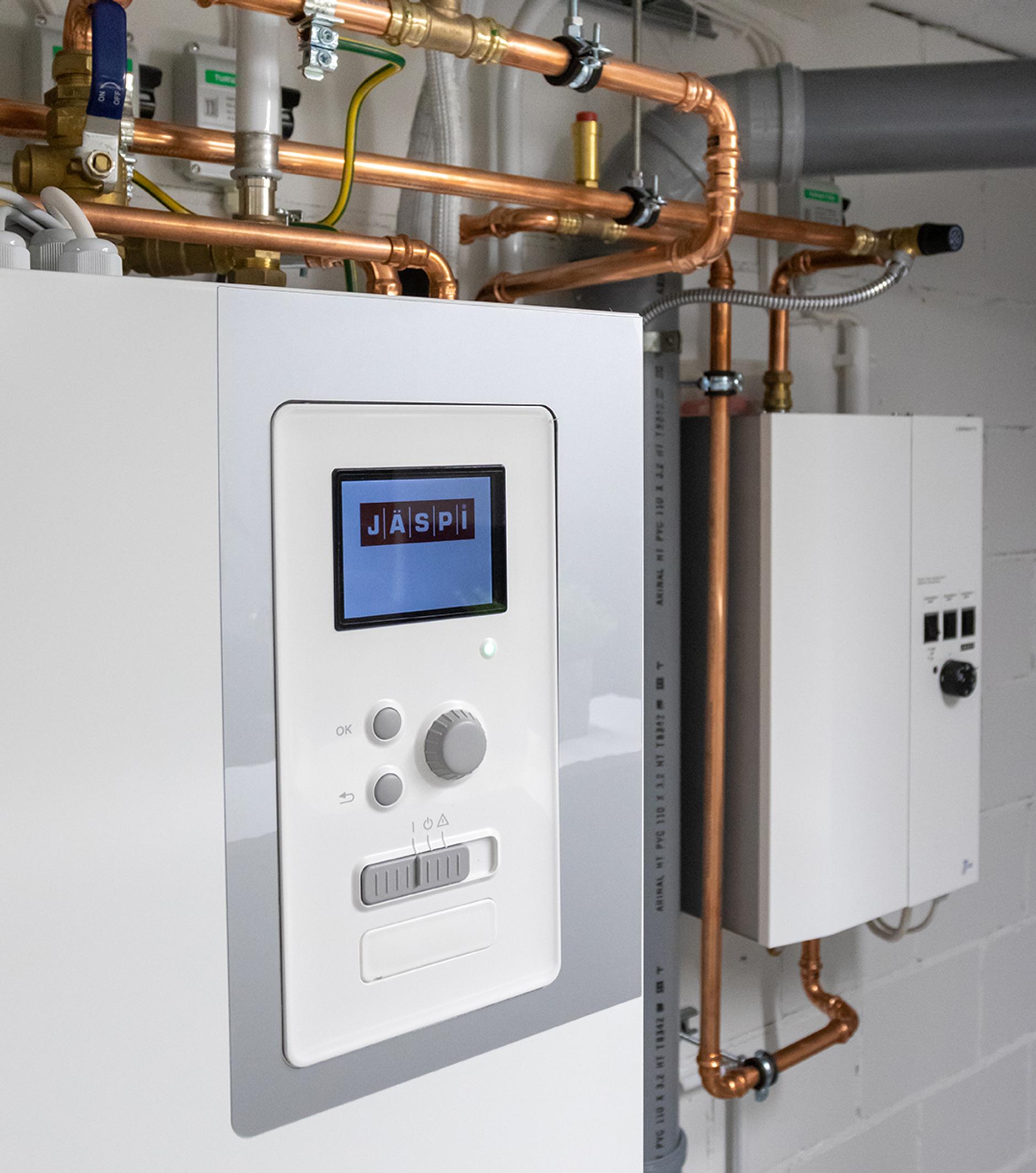 –Laite on todella tehokas. Hyvissä olosuhteissa sen hyötysuhde (COP) on lähellä viittä. Meillä järjestelmään kuuluu Jäspi Split 12 kW:n ulkoyksikkö, sisäohjainyksikkö sekä Jäspi lisäwatti sähkökattila, joka pitää huolen, että lämpöä riittää kovillakin pakkasilla.
