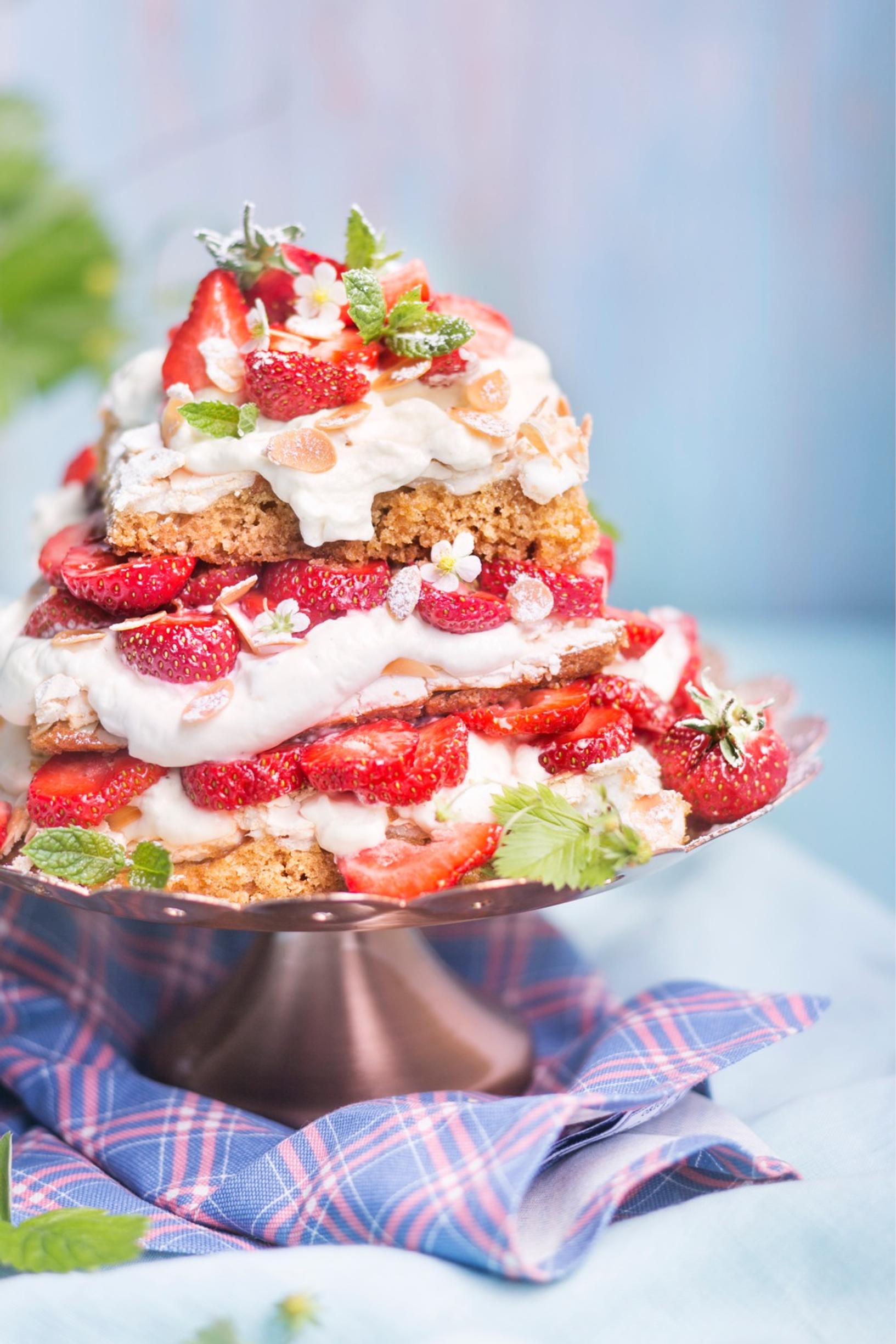 Gluteenittoman mansikkabritan viehätys perustuu makean ja rapean marengin, täyteläisen kermarahkan ja raikkaiden mansikoiden yhdistelmään. Tätä klassikkokakkua on ihan pakko tehdä ainakin kerran kesässä!