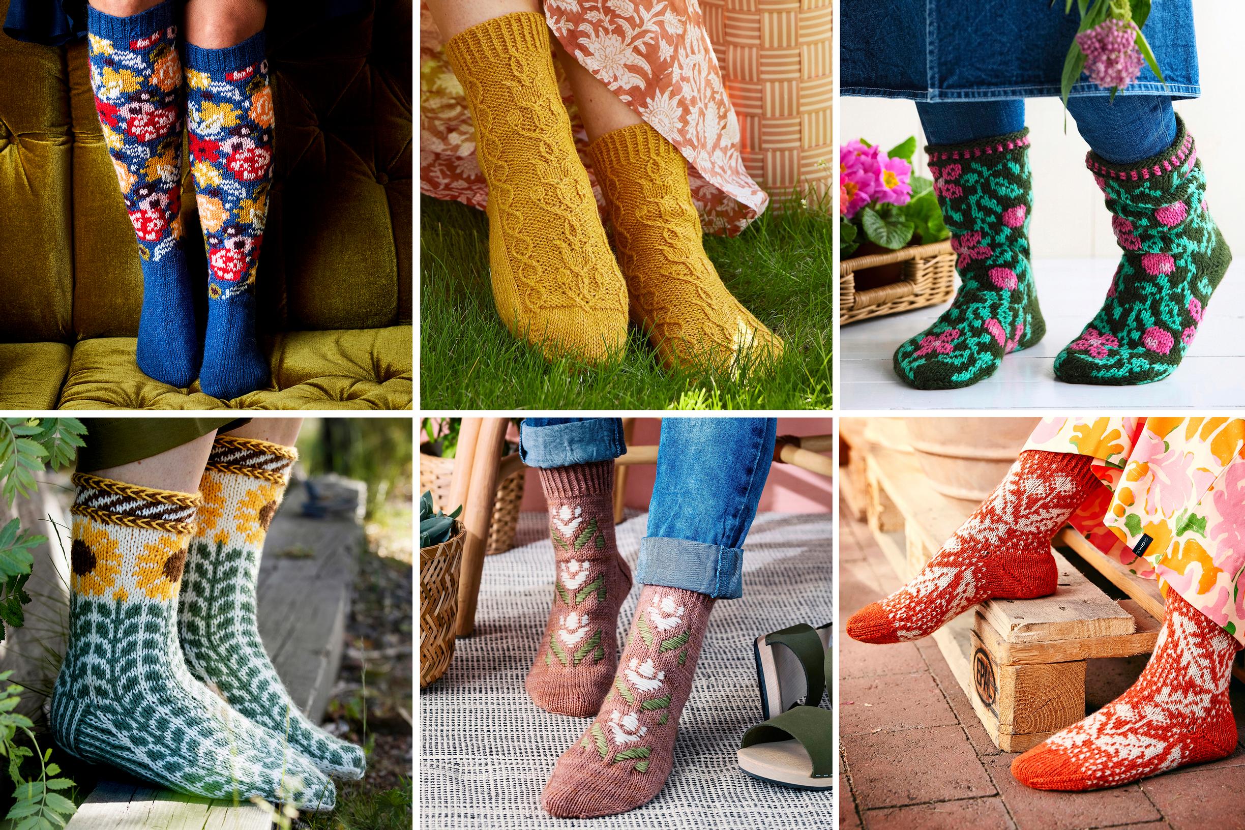 Jämälangoilla koristelluissa sukissa tassuttelu tuntuu rentouttavalta, sillä niihin kirjotut kukka- ja lehtikuviot hierovat jalkapohjia. Kuvioilla voi myös paikata vanhat rikkikuluneet sukat kauniisti! Katso hierovien villasukkien ohje.