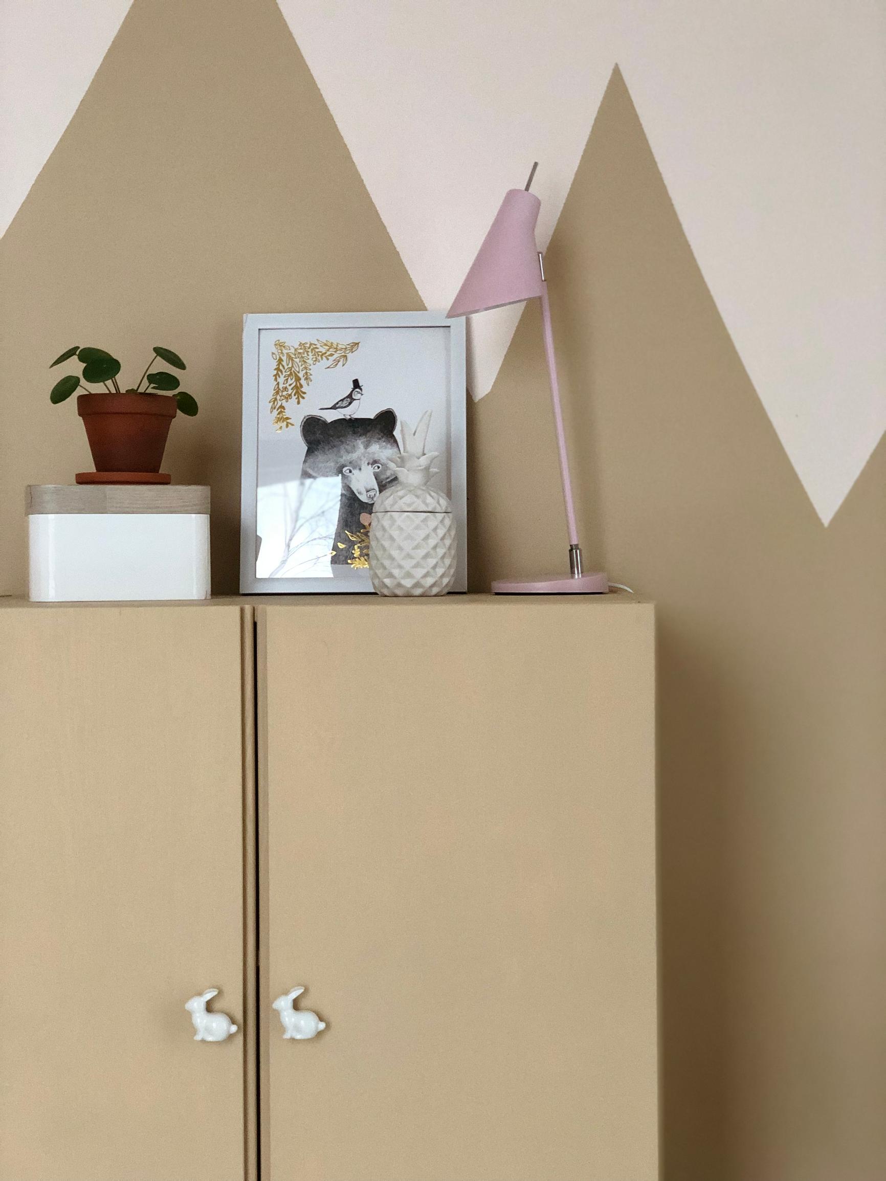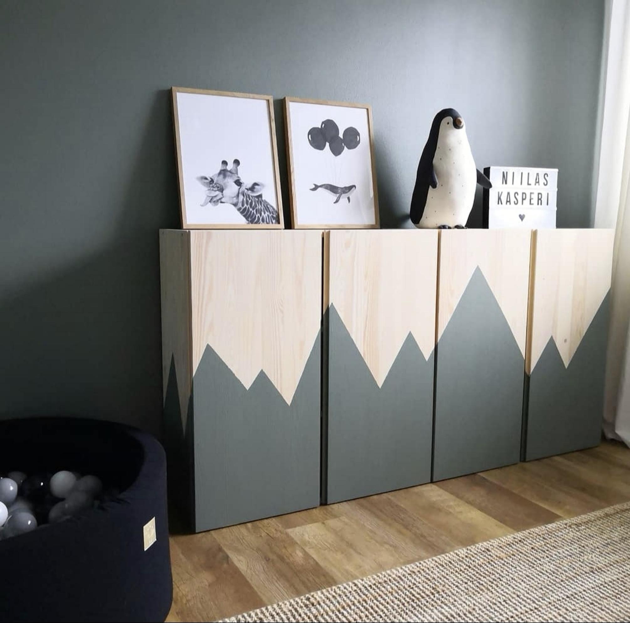 Mielestäni vuoristo sopii hyvin lapsen huoneeseen. Pidän myös siitä, että kuvio on samaa sävyä kuin seinä. Sisustuksessamme on paljon puunsävyä sekä vihreää, joten kaappi sopii myös asuntomme kokonaisuuteen.