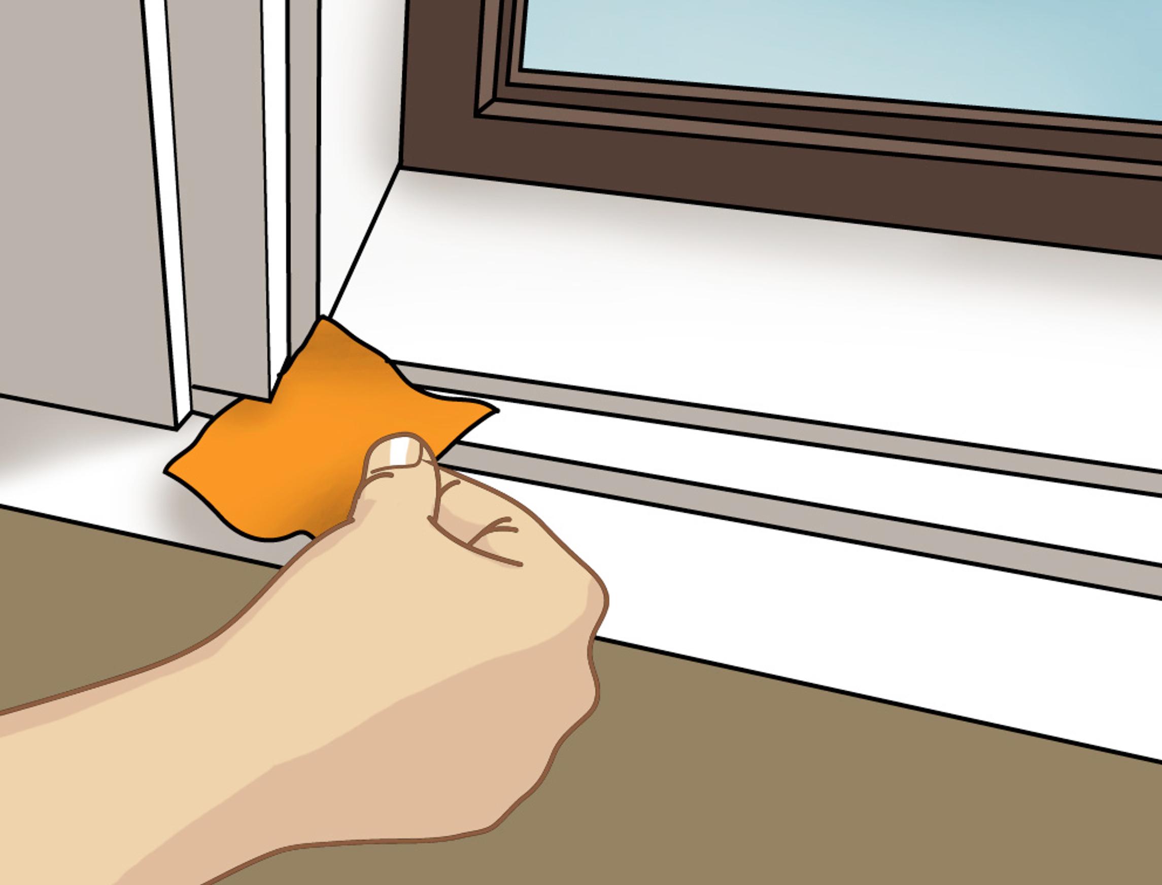 6. Viimeistele urakka karmin ja puitteiden mahdollisten rakojen tiivistämisellä. Tummentumat kertovat ilma- tai vesivuodoista. Voit käyttää rakojen etsinnässä paperia. Jos paperi luiskahtaa puuosien väliin, siitä virtaa ilmakin. Käytä tiivistämiseen esimerkiksi elastista massaa. Vaihda puitetta alapuolelta ryhdissä pitävä muovinen pala eli liuku, jos se on kulunut tai katkennut.