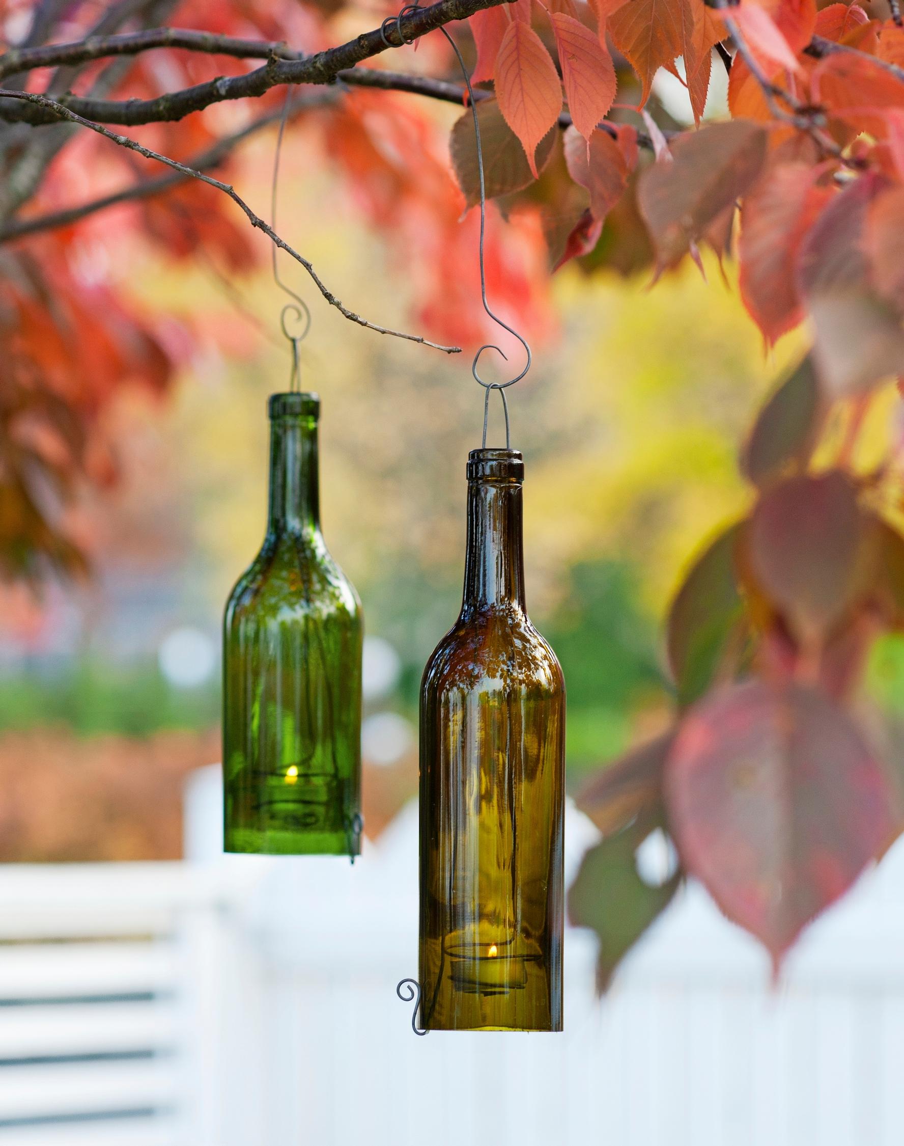Vanhoista viinipulloista saa kauniit lasilyhdyt. Katso ohje pohjaosan katkaisuun: meko.fi/lasipullosta-lyhty