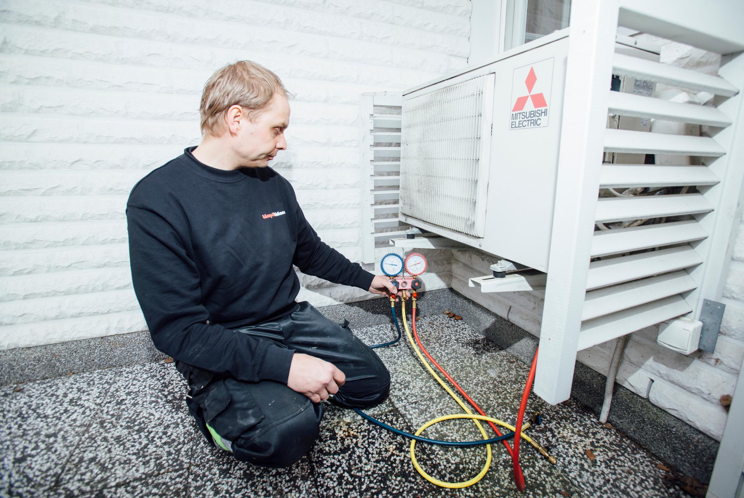– Kun likaisella koneella viilentää, kondenssivesiputki voi mennä tukkoon. Ja sitten vesi roiskuu pikin seiniä, kertoo Lämpö-Ykkösen asentaja Tomi Nikama.