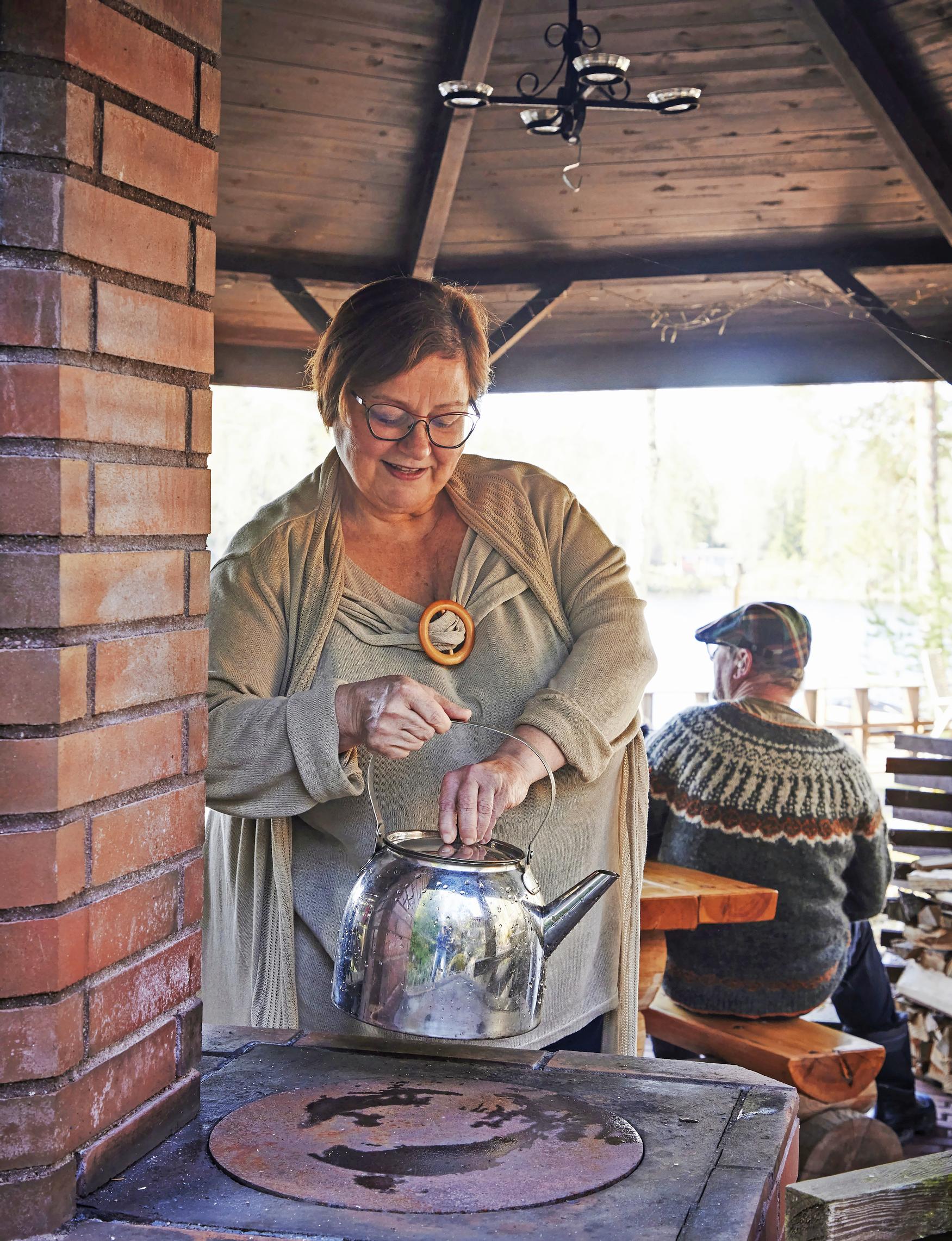 – Yksi lempipuuhistamme on laittaa yhdessä ruokaa: savustamme järvestä saatuja ahvenia, muikkuja ja haukia.