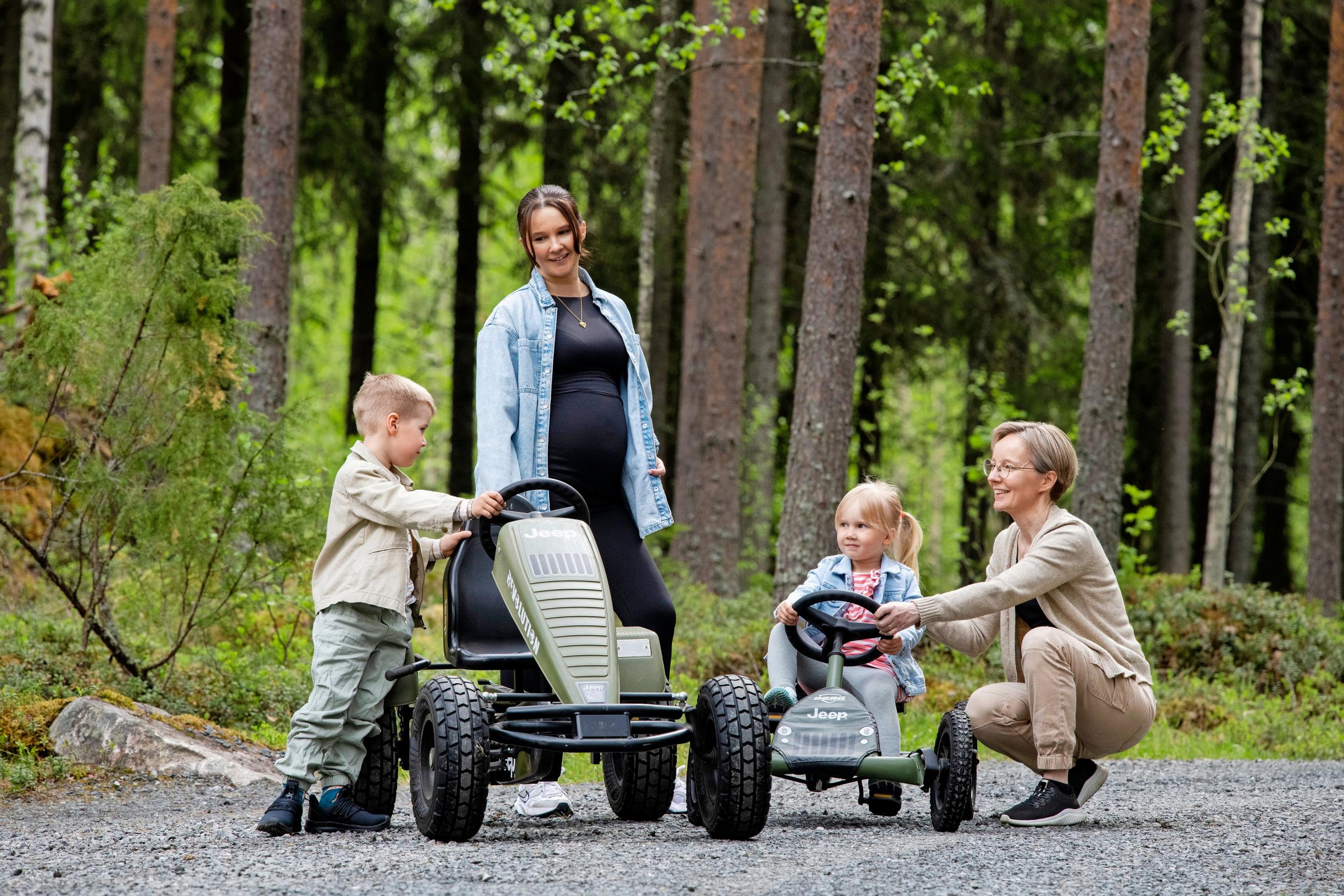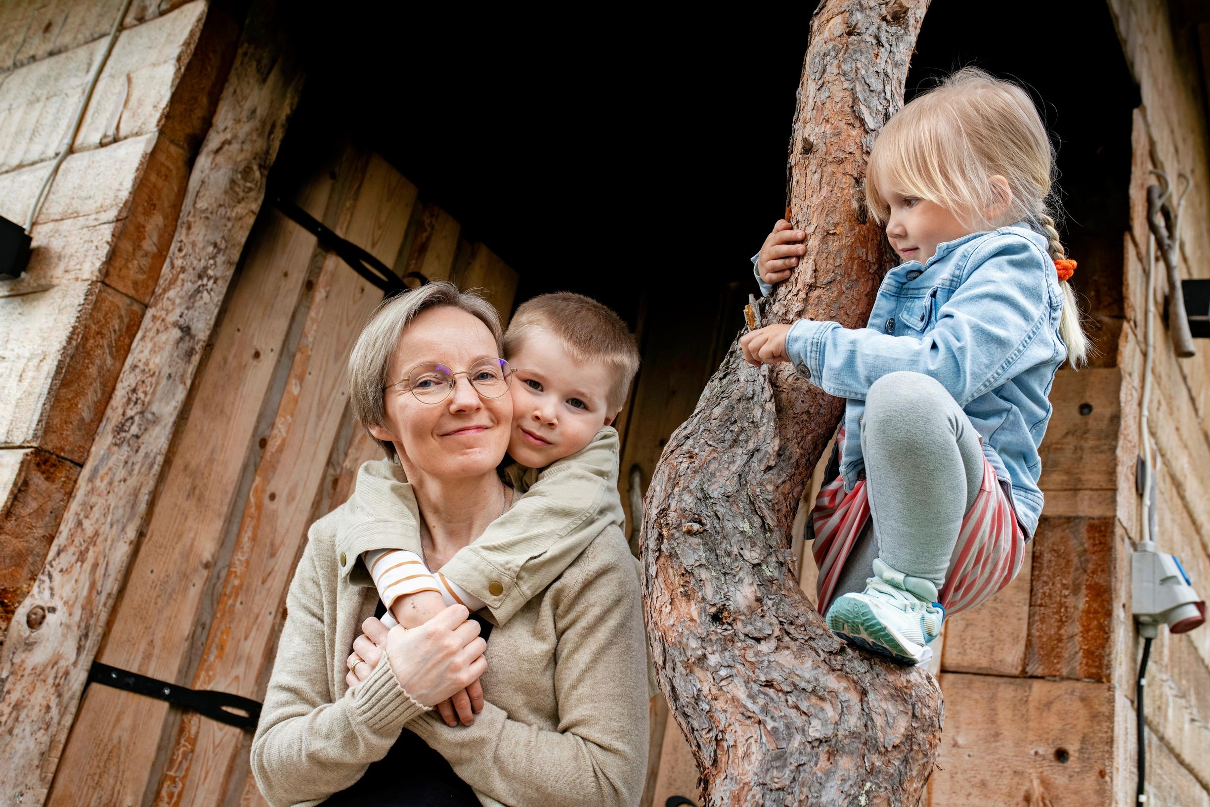 ”Luonto on meitä lähellä, joten olemme paljon ulkona. Tarkkailemme lintuja, kalastamme, marjastamme tai kokkaamme leikkiruokaa männynneulasista ja ruohosta. Talvella hiihdämme.”