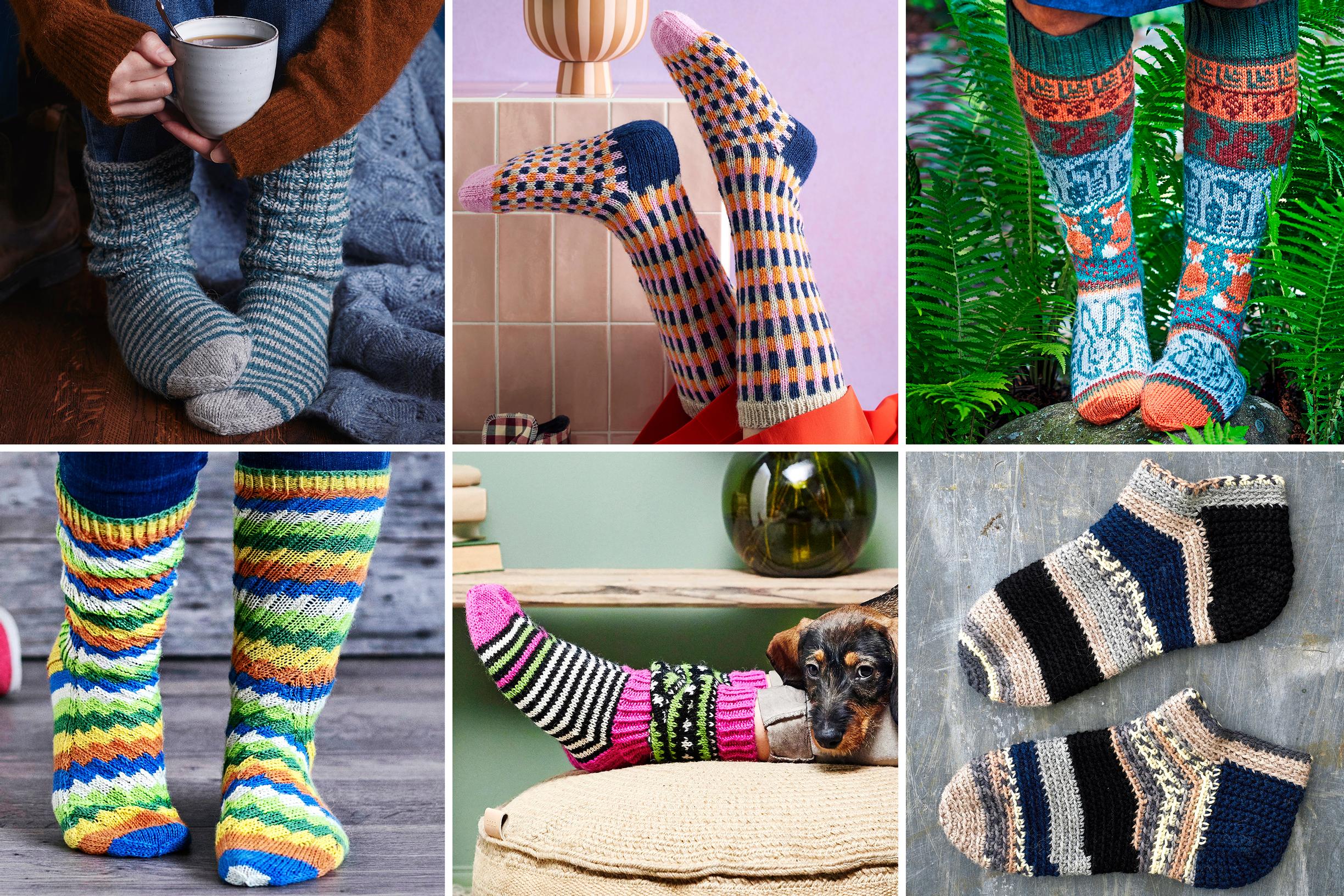 Jos lankoja riittää, samalla väripaletilla on helppo neuloa myös yhteensopivat Syysmetsän sukat.