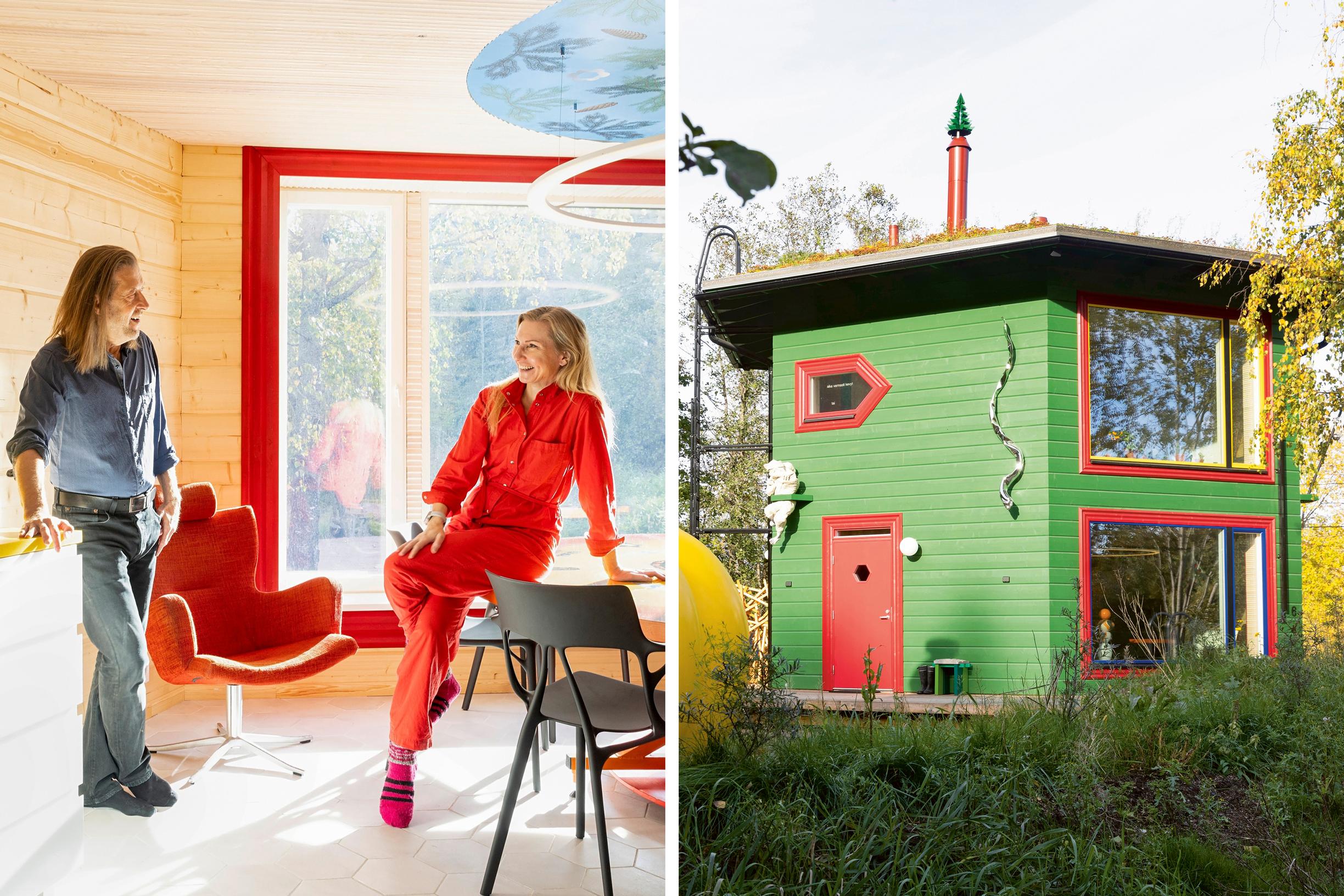 Jan-Erik Andersson ja Marjo Malin rakensivat sympaattisen kotipesän pieneen kuusikulmioon. Kuusi-o-talossa taide ja leikittely ovat oleellinen osa arkkitehtuuria.