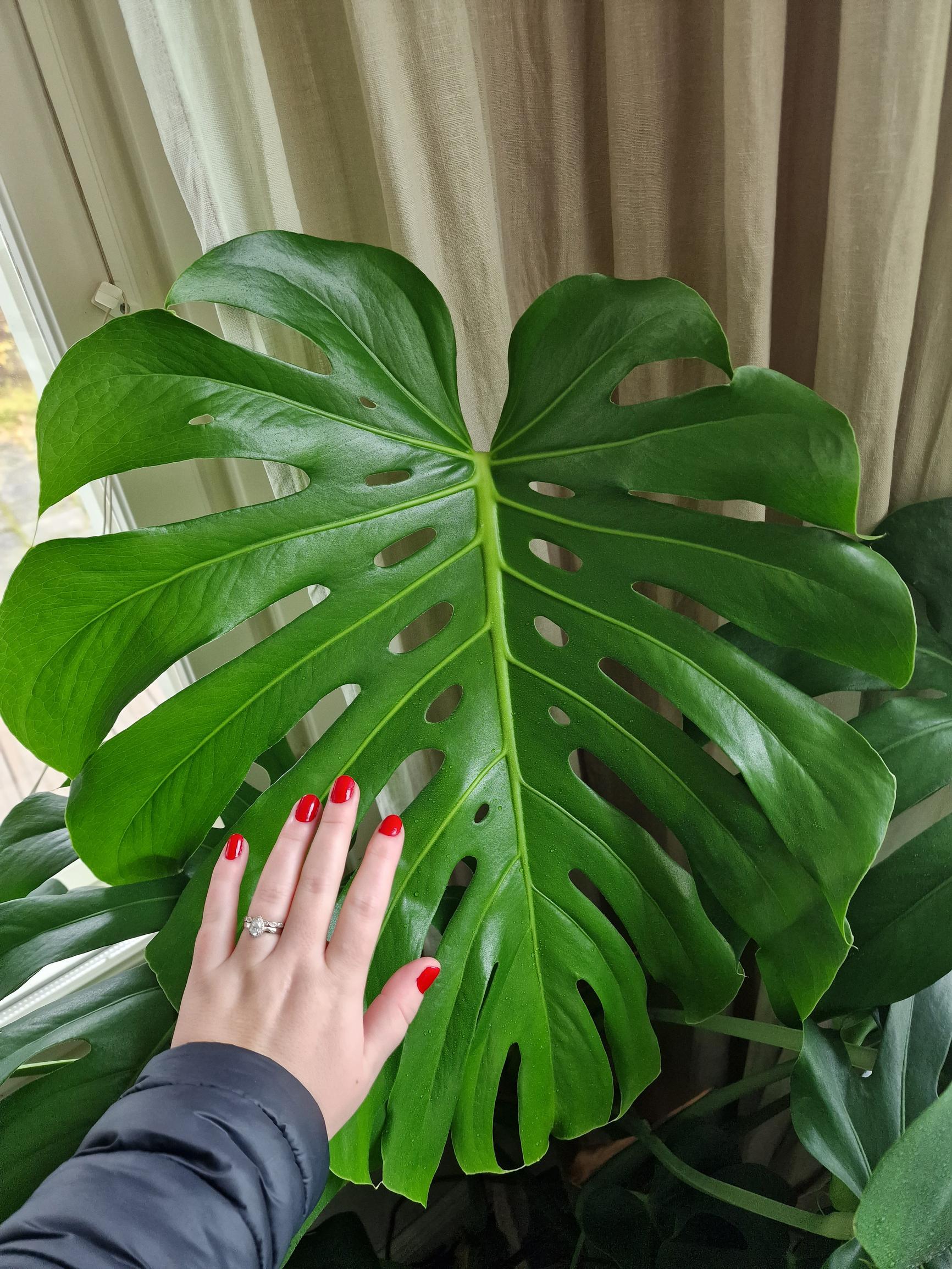 En osannut, se on ollut yllätys! Se alkoi kasvaa tosi nopeasti, ja jouduin melkein heti vaihtamaan ruukun isommaksi. En tiennyt, että marketissa myytävästä peikonlehdestä edes voi tulla näin iso. Luulin, että kaksimetrisiksi kasvavat peikonlehdet ovat eri lajiketta.