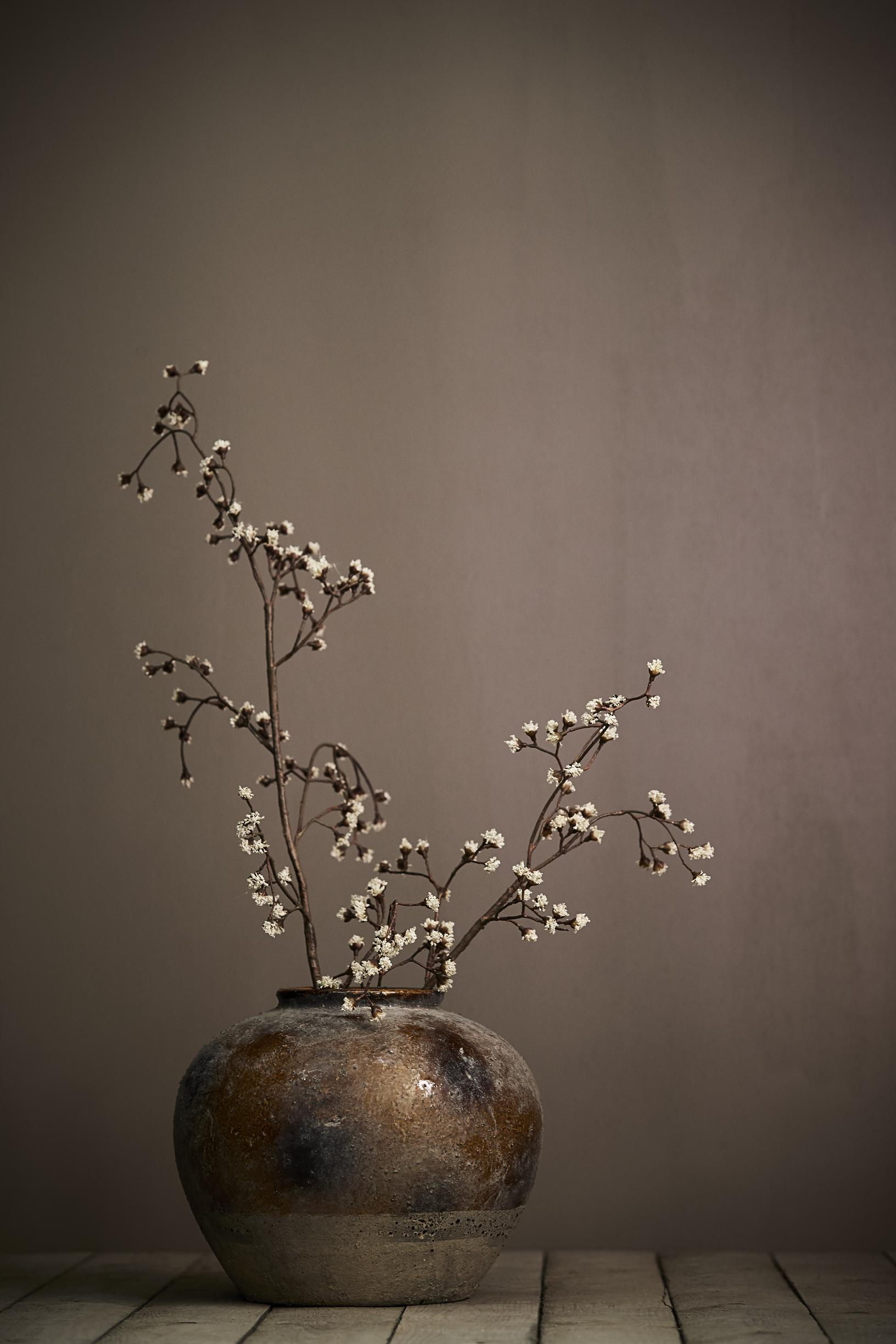 Japanilainen estetiikan termi wabi-sabi on kauneuden näkemistä myös epätäydellisessä ja rosoisessa. Keraaminen Novinne-vaasi näyttää rustiikkiselta kuin ajopuun pinta. Tämän pariksi riittää yksi kiemurainen oksa. Saatavilla myös isompi malli.