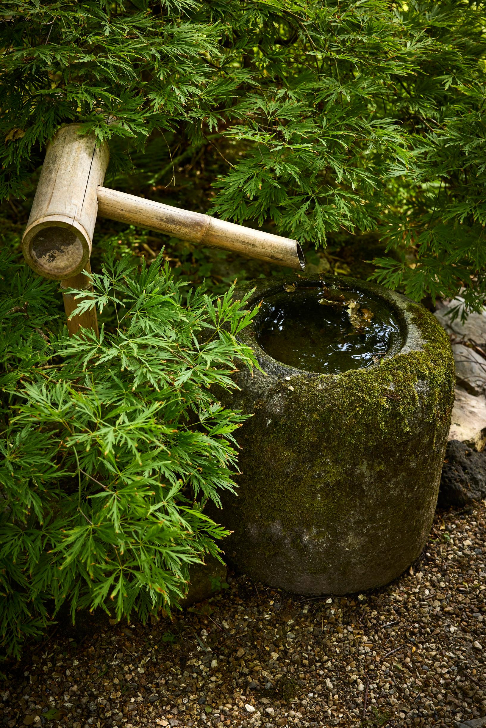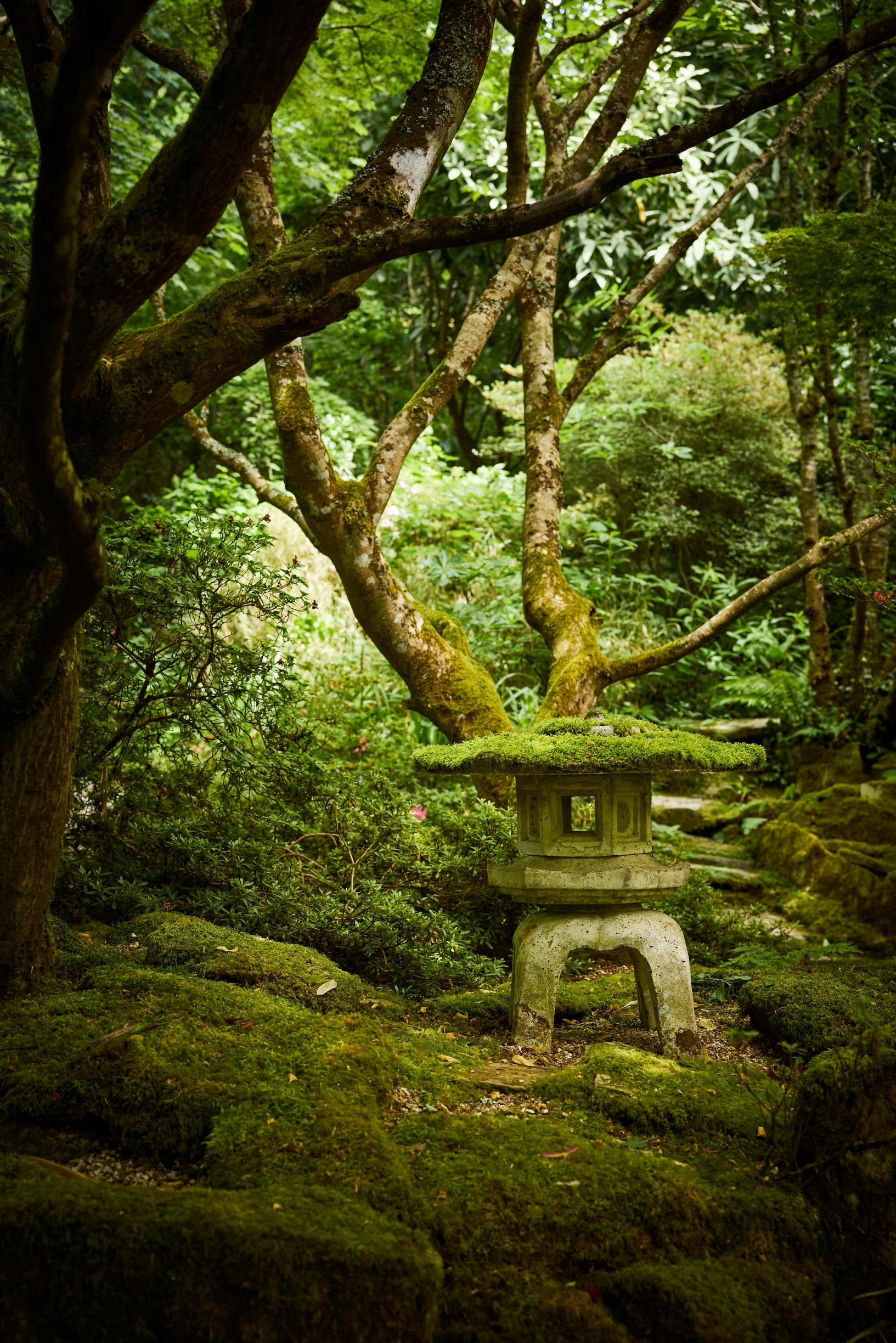 Ensin iholle osuu kosteus ja lempeä viileys. Lintujen sirkutus kuuluu jostain korkeuksista. Ylle kaartuvat korkeat vanhat pajut ja jättimäinen tammi muodostavat turvallisen katoksen. On hämärää ja hiljaista. Syke hidastuu, kun astun perinteisestä shintolaisesta Torii-portista sisälle japanilaiseen puutarhaan.