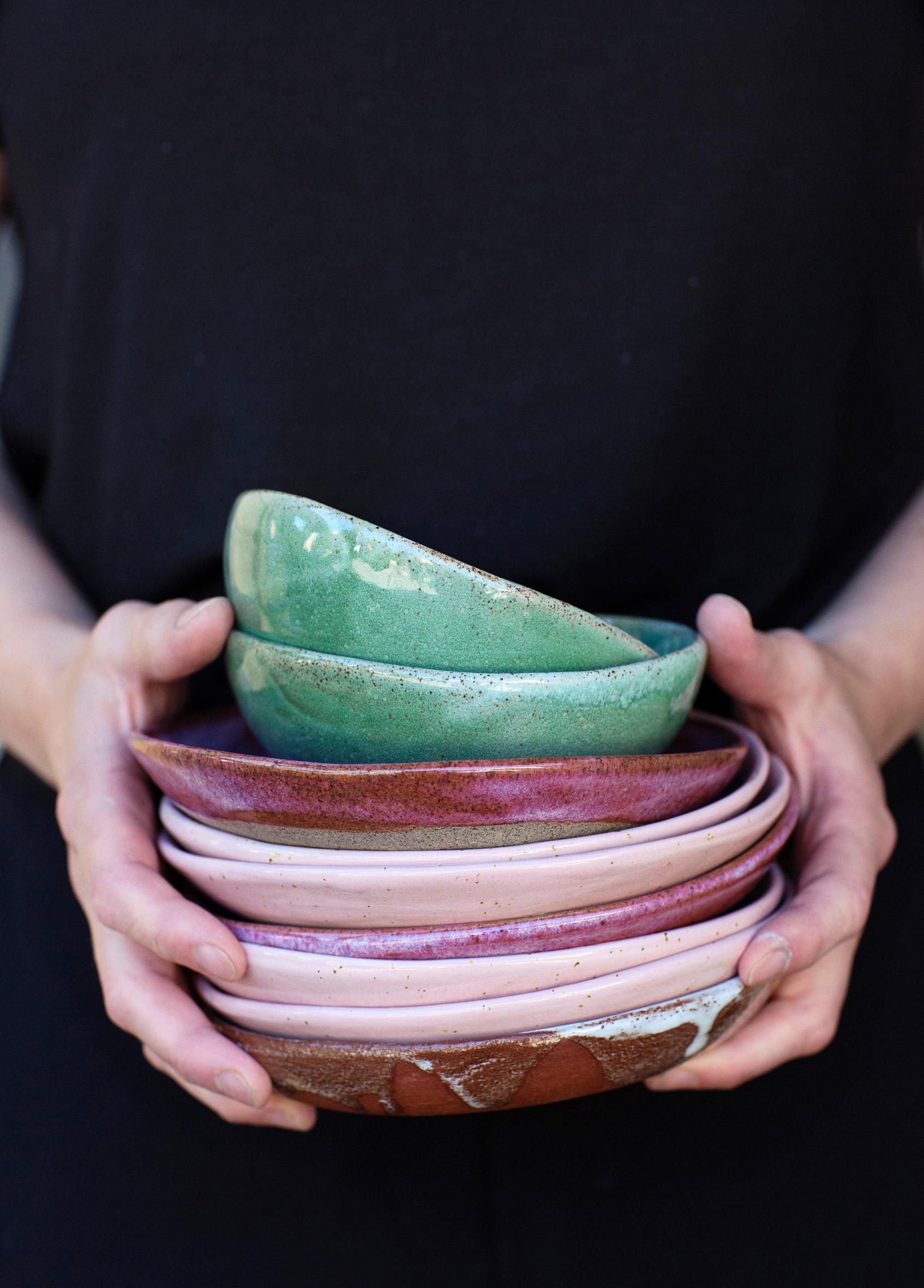 Aloin tehdä astioita ja postasin niistä kuvia Instagramiin. Yllätyin, kun sain kiinnostuneita yhteydenottoja, joissa kyseltiin mahdollisuutta ostaa keramiikkaani. Alussa käytin tuttavan polttouunia. Kun työtilauksia tuli lisää, päätin hankkia itselleni oman uunin. Työhuone löytyi kodin naapurista.