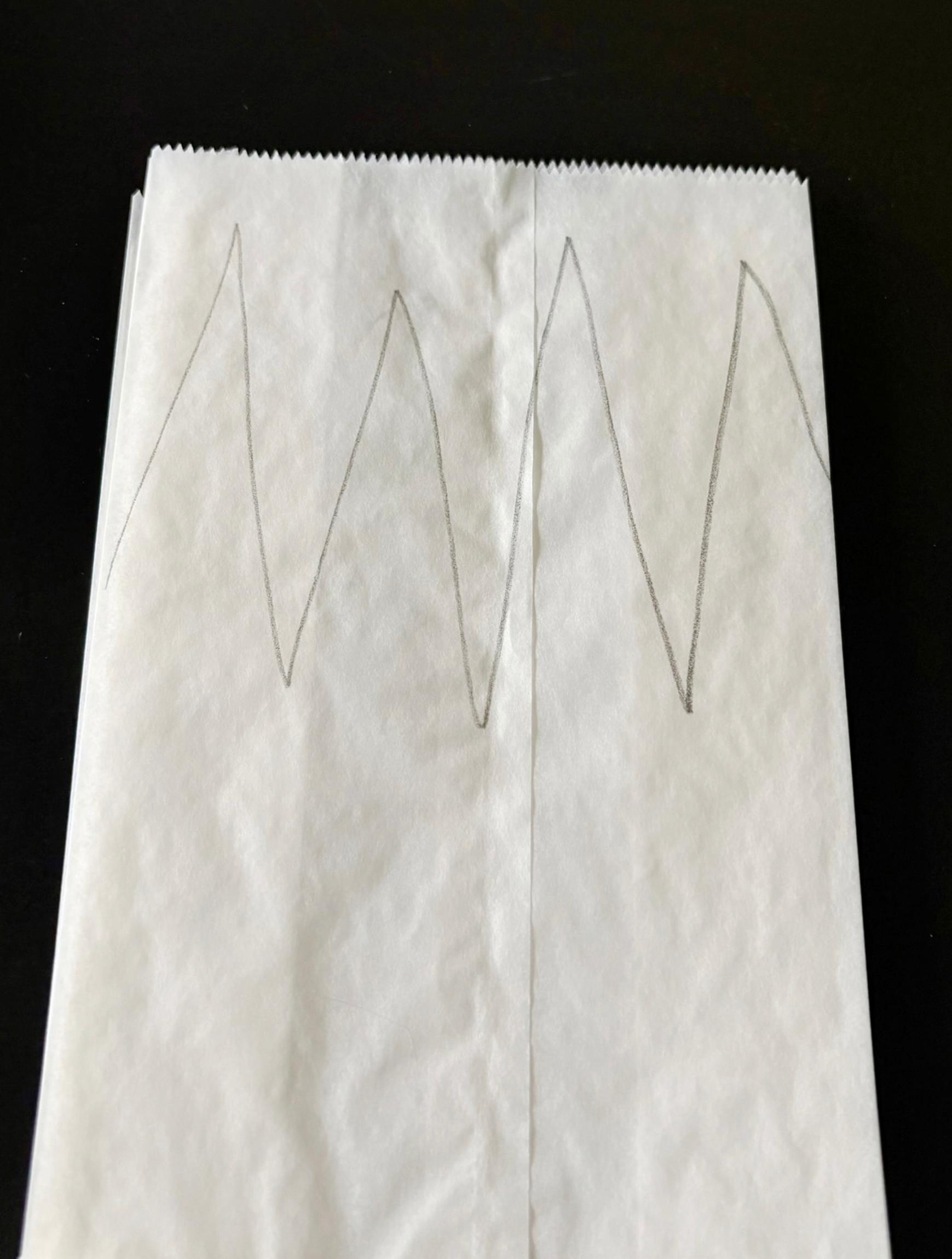 6. Jatka samaan tapaan loppujen nippujen kanssa. Halutessasi voit myös piirtää kuvion erikseen jokaiseen pussinippuun erikseen. Tällöin kannattaa käyttää viivoitinta, jotta sakarat toistuvat mahdollisimman samanlaisina.