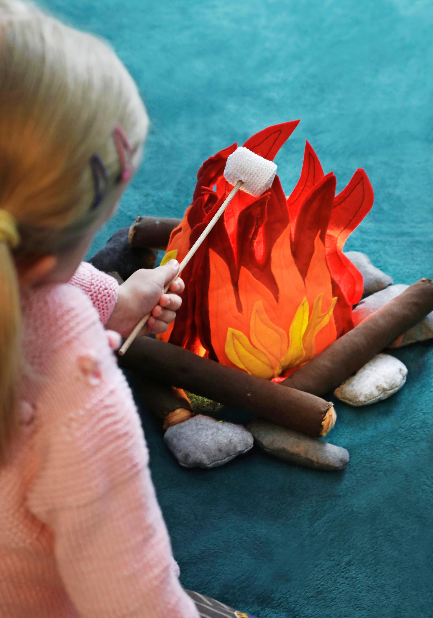 Virkatut leivonnaiset, kasvimaa paperimassasta ja pahvilaatikosta, nuotio huovasta ja vanhoista vilteistä! Itse tehdyt lelut ovat Jenni Tialan, 40, ja pienen tyttären yhteinen harrastus. Kässäpussi kulkee aina Jennin mukana, oli kyse sitten palaverista tai vartin bussimatkasta.