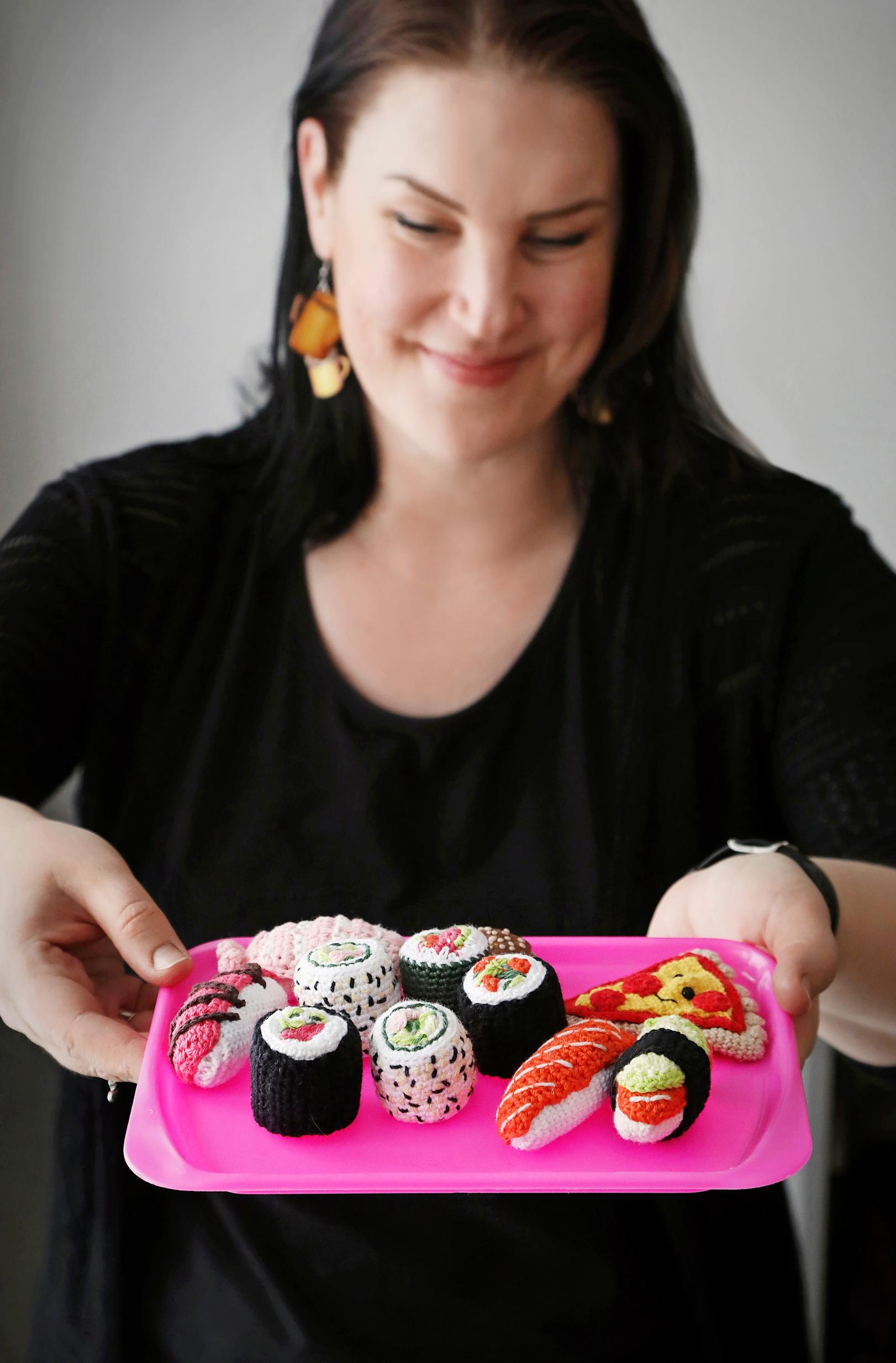 Kun lapsi toivoo lelua leikkikeittiöön, Jenni tarttuu lankaan – virkatut sushit ja itse tehdyt satuhahmot kestävät käyttöä