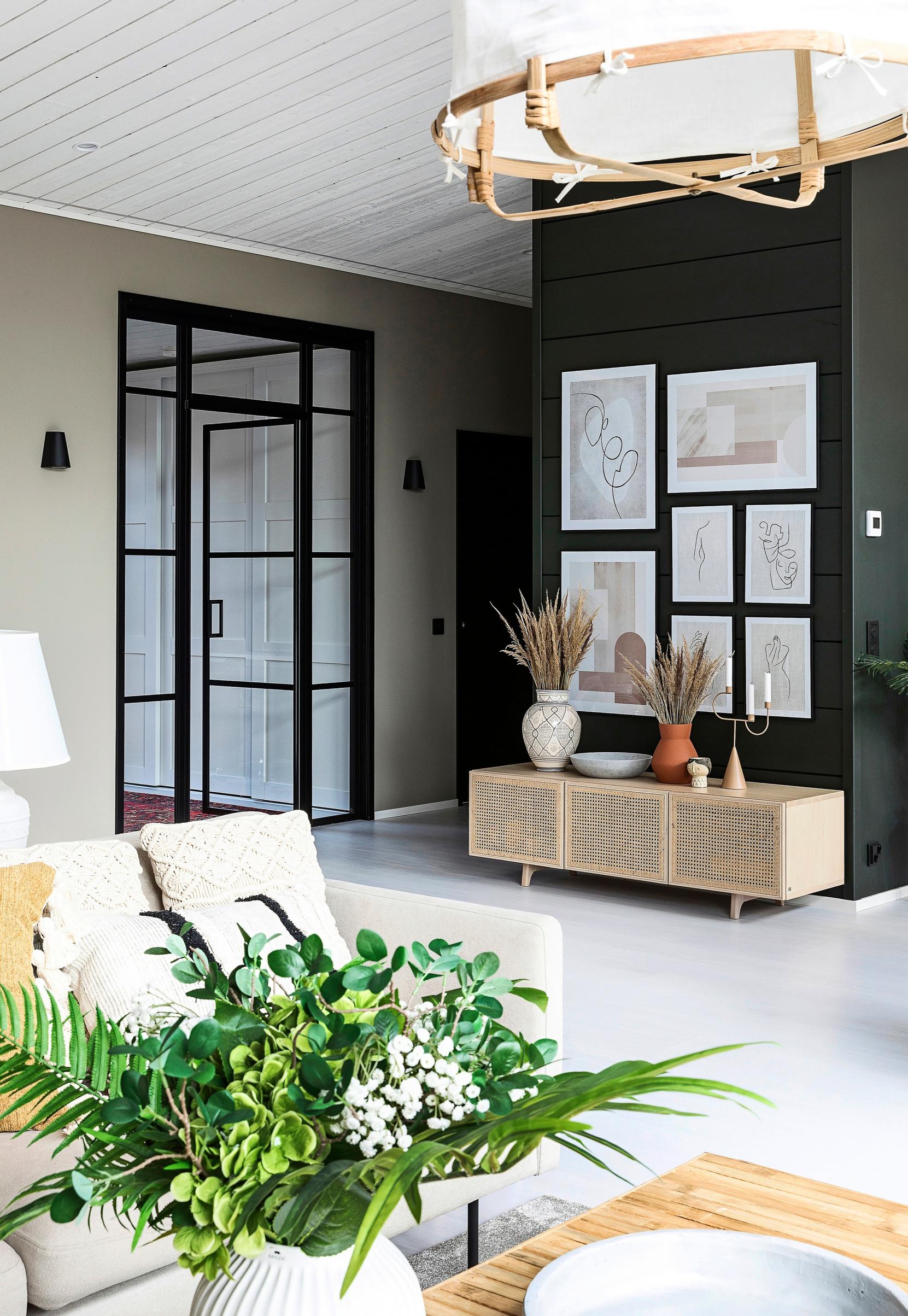 – Pidän siitä, että etupihalta voi nähdä ikkunoiden kautta koko talon läpi ulos asti, sanoo talon omistaja Jenni Hynnä.
