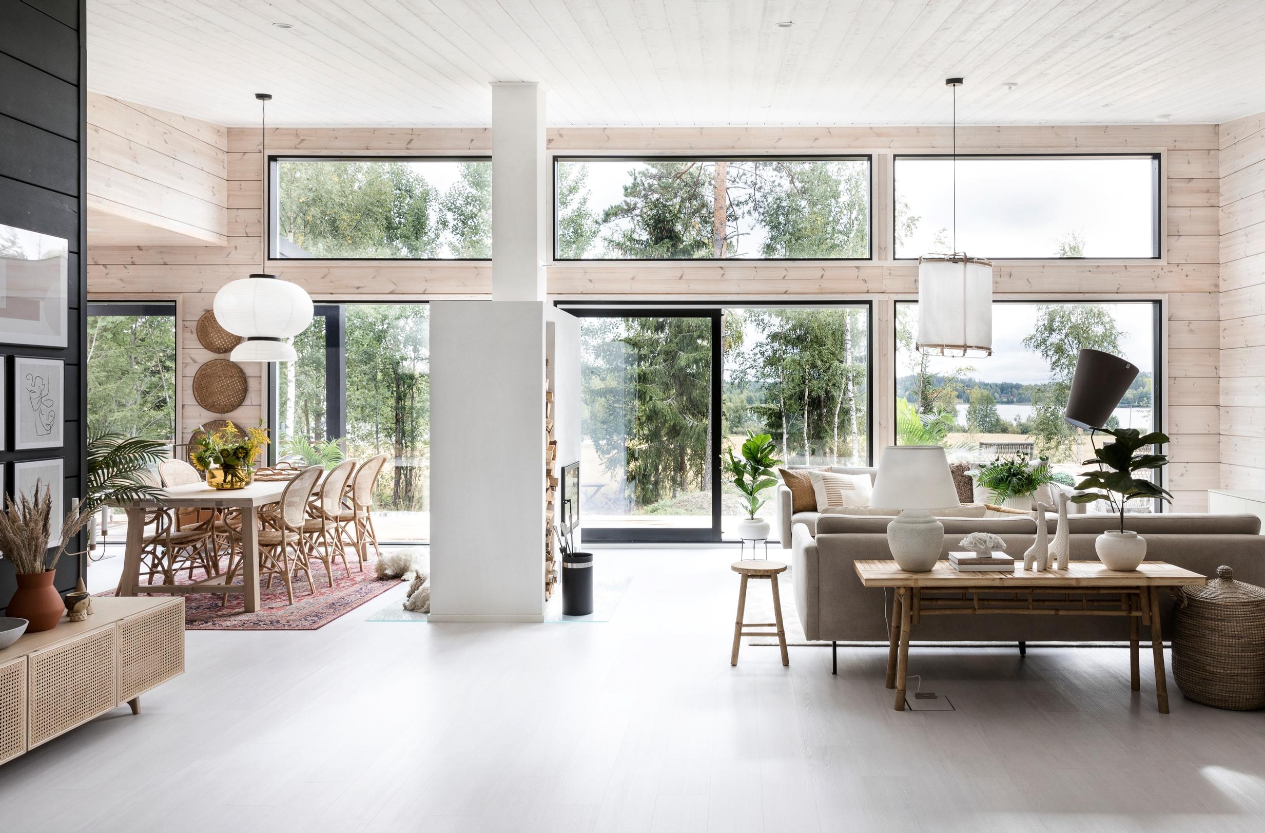 – Halusimme avaran, tilavan ja selkeän pohjan, joka toimii hyvin arjessa. Tahdoimme myös paljon valoa tuovia, isoja ikkunoita, Jenni kertoo.