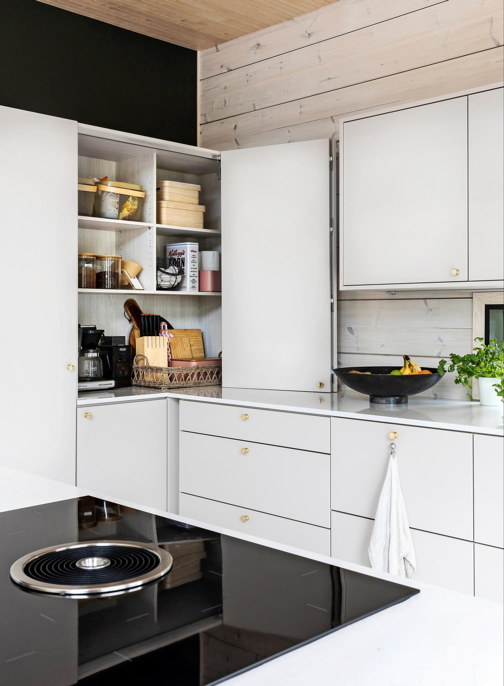 – Kaikelle on selkeästi omat paikkansa, jotta mikään nurkka ei tursua tavaraa, hän kuvailee.
