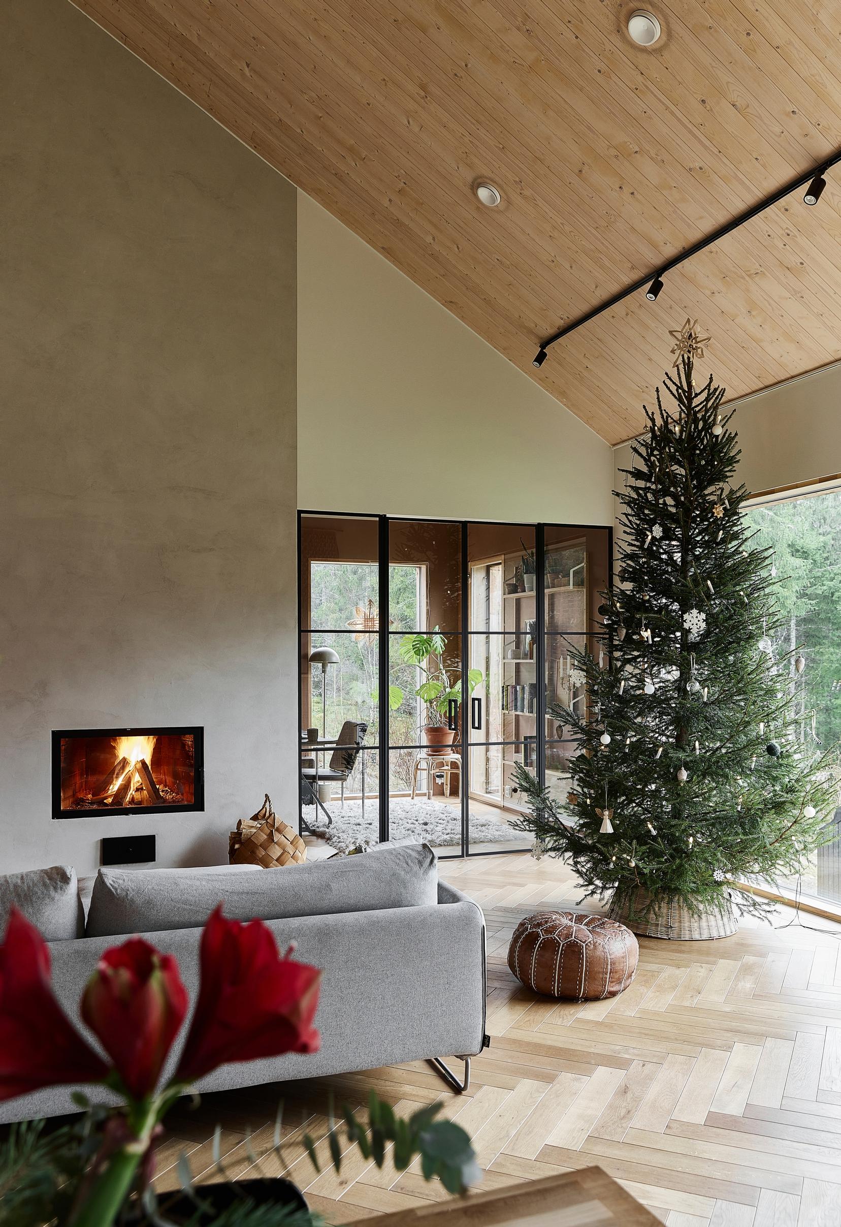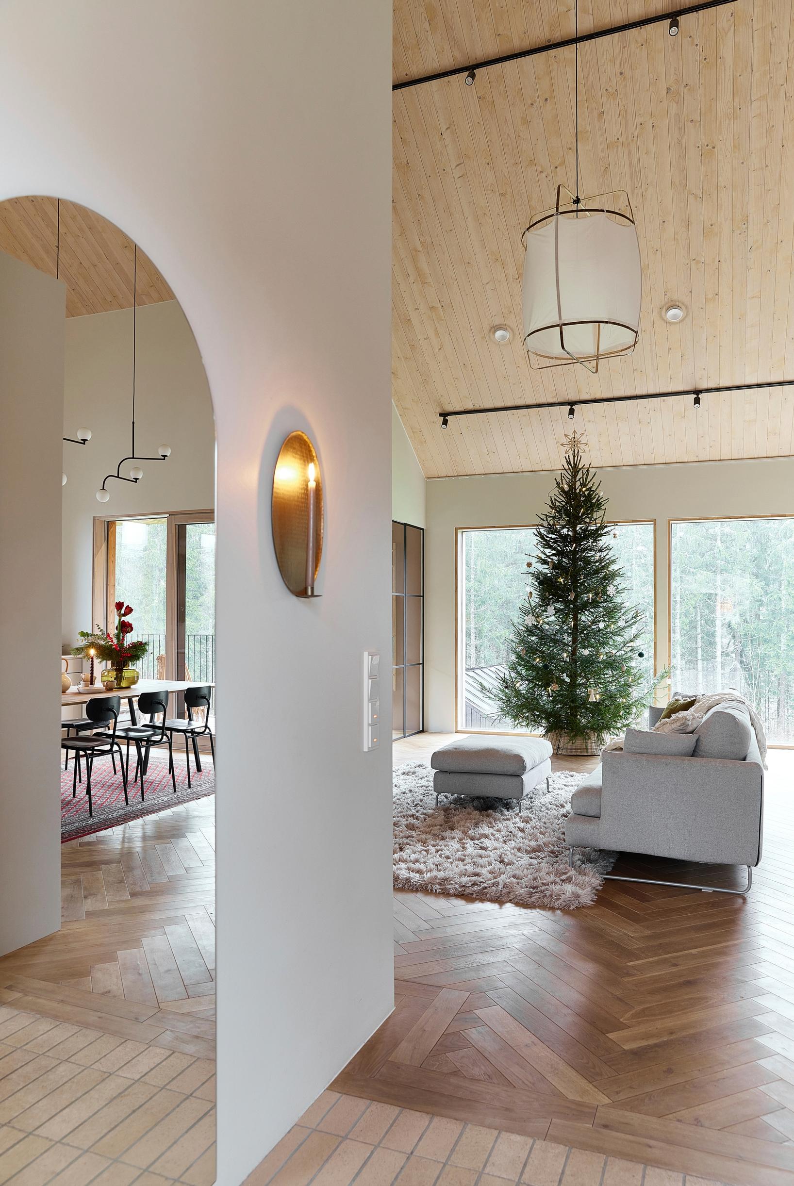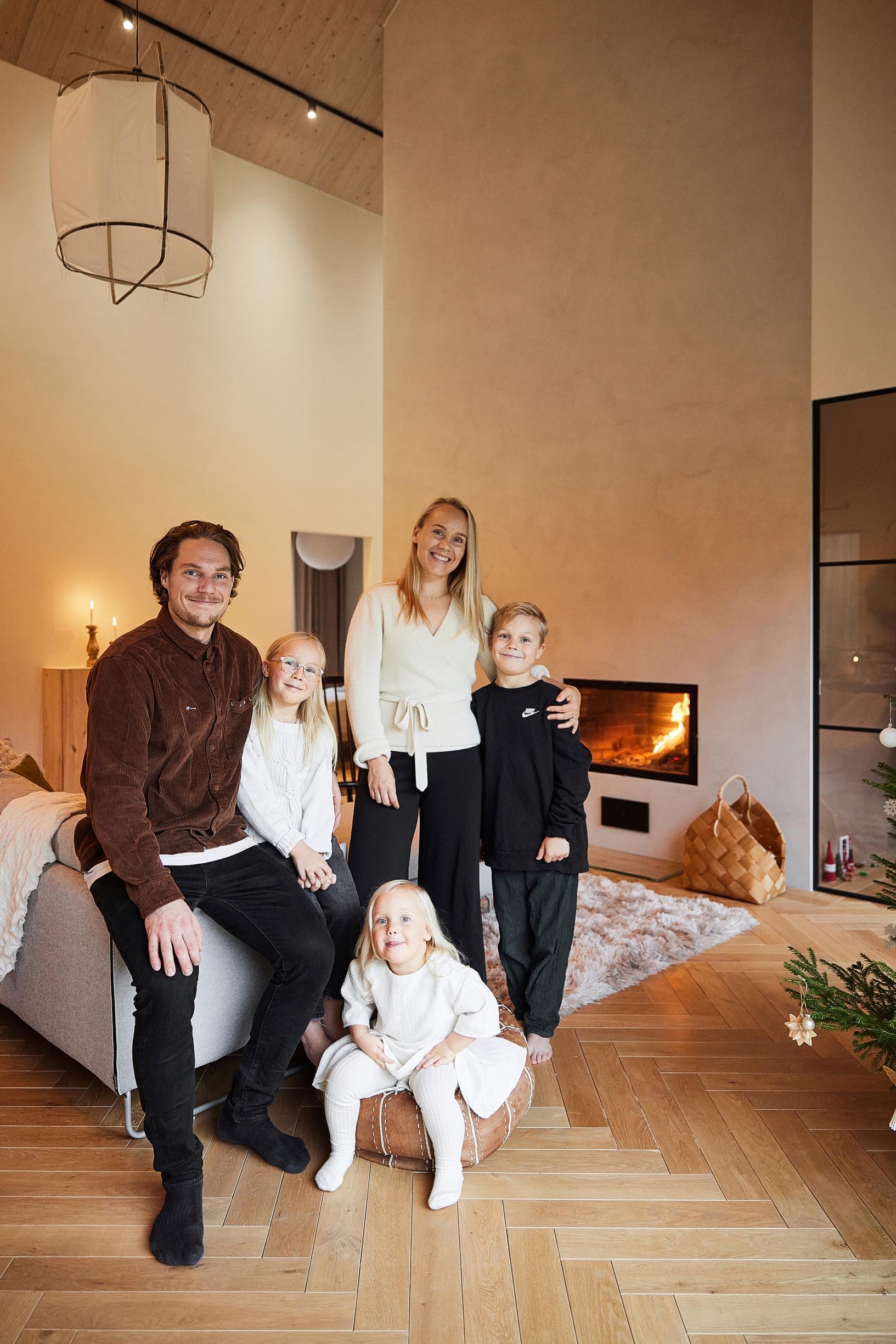 Auroran ja Joelin kodin joulutunnelma on niin rauhaisa ja tyyni, ettei uskoisi olevansa keskellä lapsiperheen vauhdikasta elämää. Lämpöä luovat ympärillä tuikkivat kynttilät ja joulumusiikki, joka soi hiljaa taustalla. Kodissa kaikki näyttää niin harmoniselta, kuin asiat olisivat loksahdelleet paikoilleen itsestään. Kauneuden taustalla on kuitenkin ollut valtava työ suunnitella ja rakentaa talo itse.