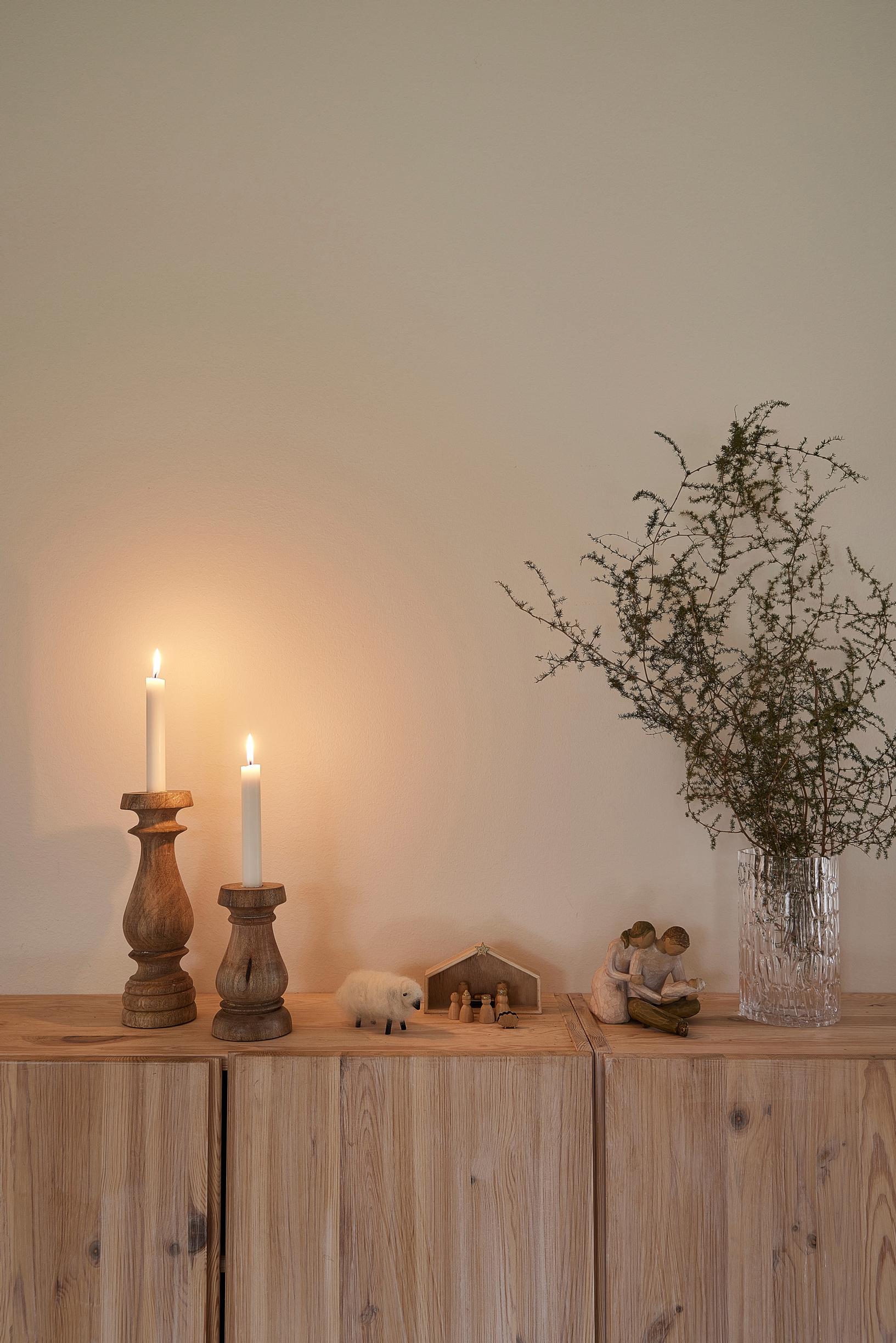Aurora: Valaistus on tunnelman luojista mielestäni tärkein. Harvoin käytän kattovaloja. Epäsuorat valonlähteet ja seinävalaisimet lisäävät levollista tunnelmaa, ja joulunaikaan ikkunoissa täytyy ehdottomasti olla joulutähdet. Kynttilöitä poltan ympäri vuoden, ja joulukaudella ne palavat aamusta iltaan. Lapsetkin tietävät, että aamupalapöytäänkin sytytämme kynttilän, vaikka kyseessä olisi vain lyhyt hetki ja kiireinen arkiaamu. Kynttilän lepattavassa liekissä on jotain taikaa, se on niin rauhoittava.