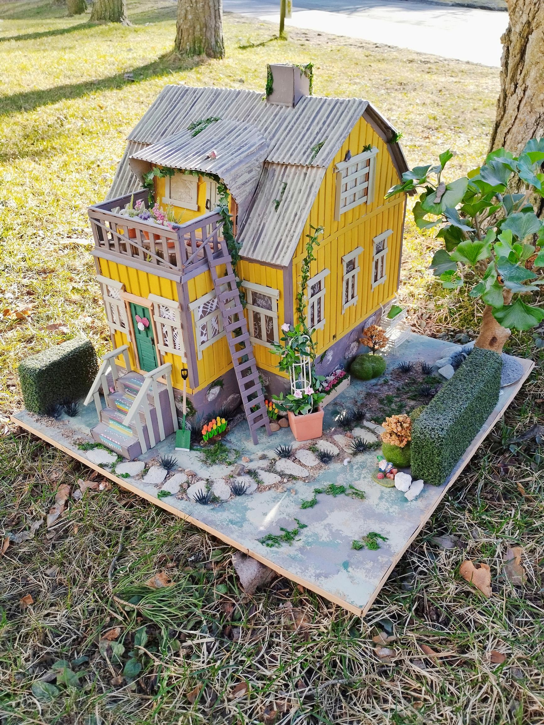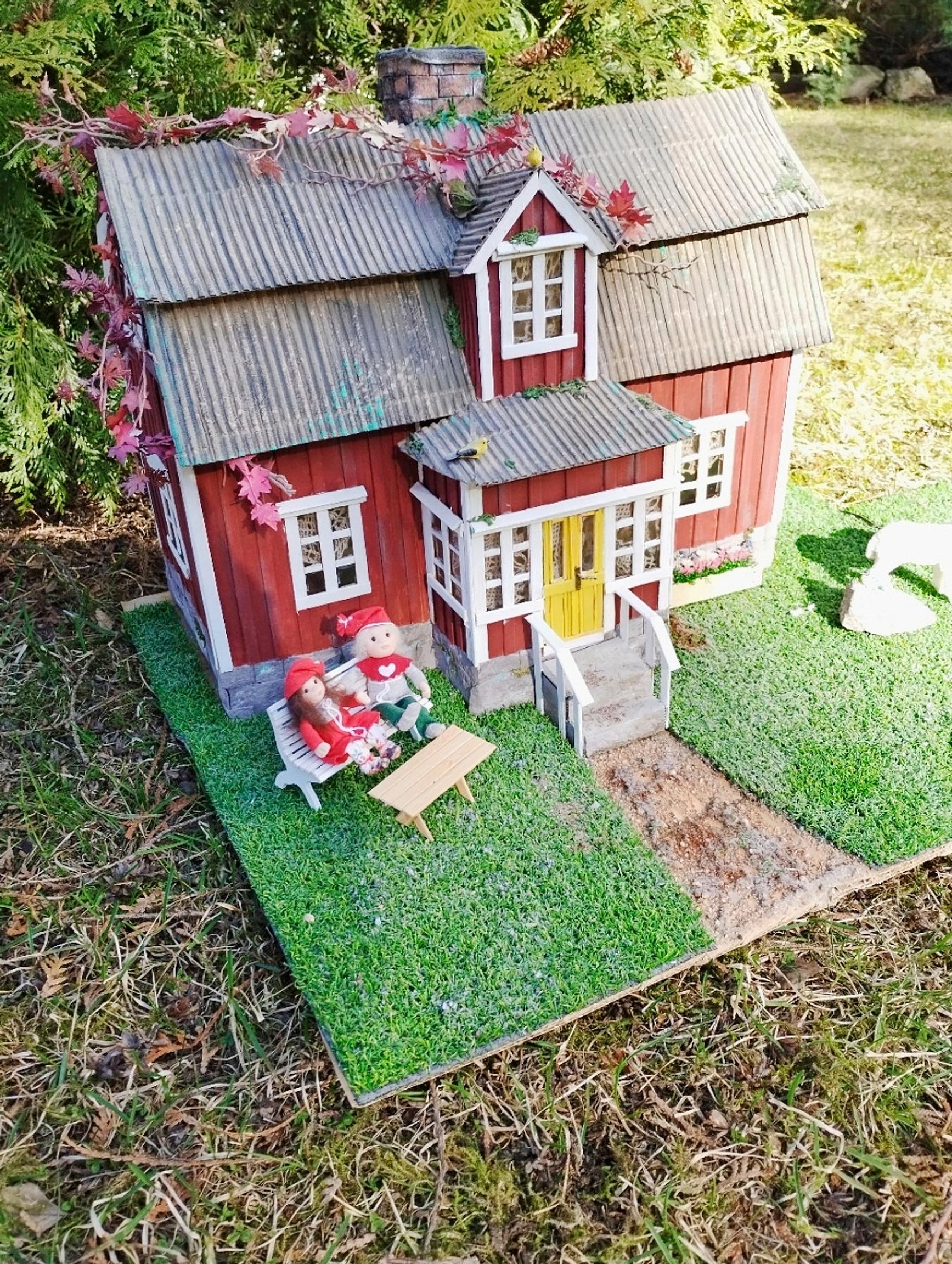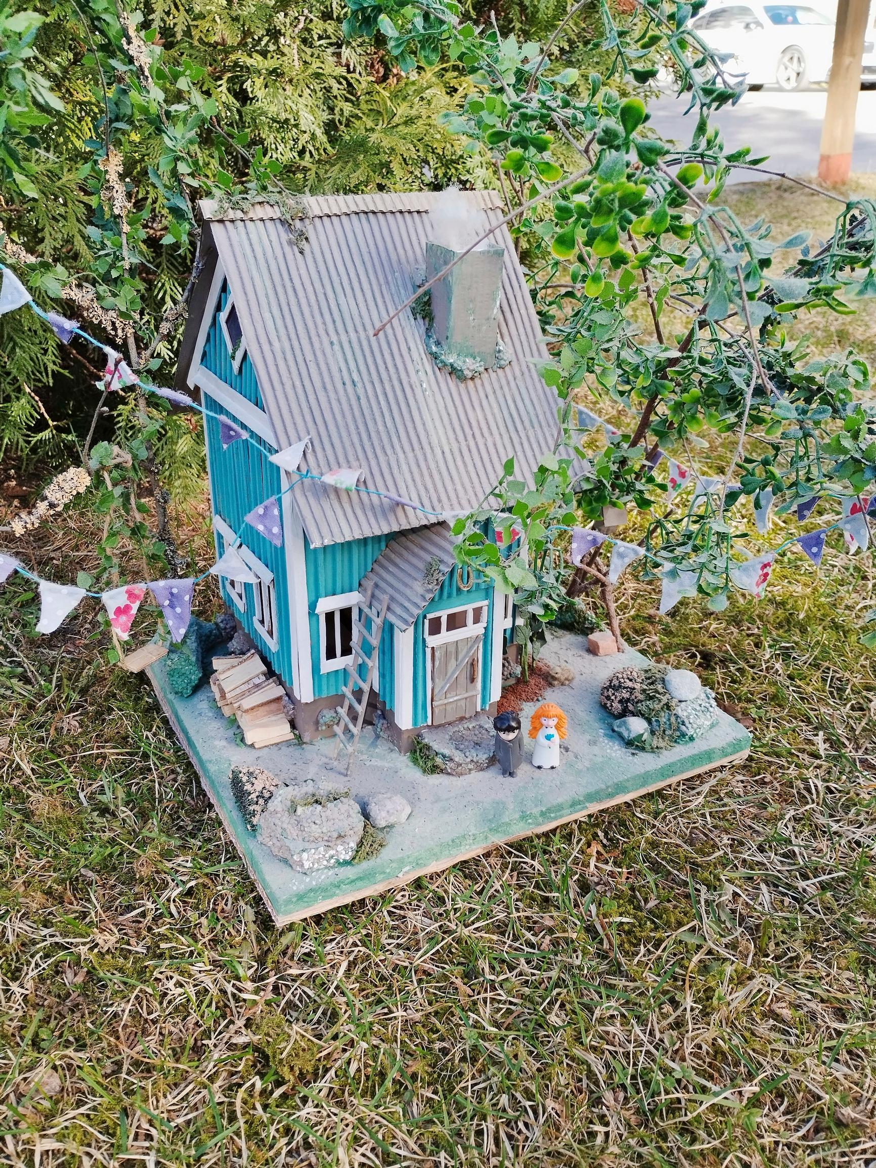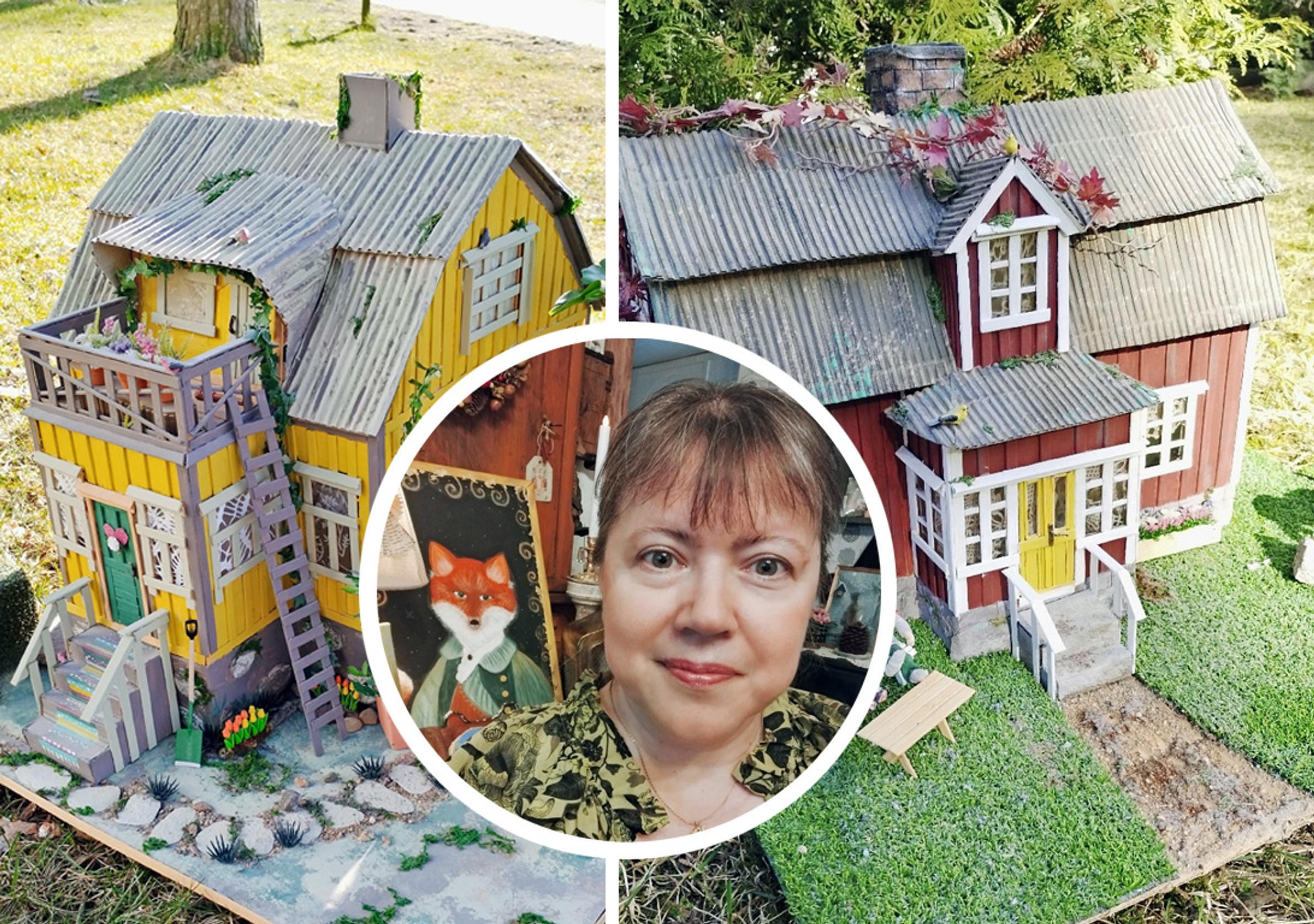 Pahvitaloista rakkain on aika samanlainen kuin mummolani. Lapsena vietin aikaa maalaismummolassa, joka oli mansardikattoinen punainen puutalo. Siellä oli kissoja ja joskus pari possua. Niinpä talosta tuli Kissankulma. Siinä on myös jotain samaa kuin Vaahteramäen Eemelin kotitalossa. Astrid Lindgrenin maailma, Peppi Pitkätossu ja Melukylä, kiehtovat. Yksi taloista on vähän kuin Viirun ja Pesosen talo, siellä on hahmotkin pihalla.