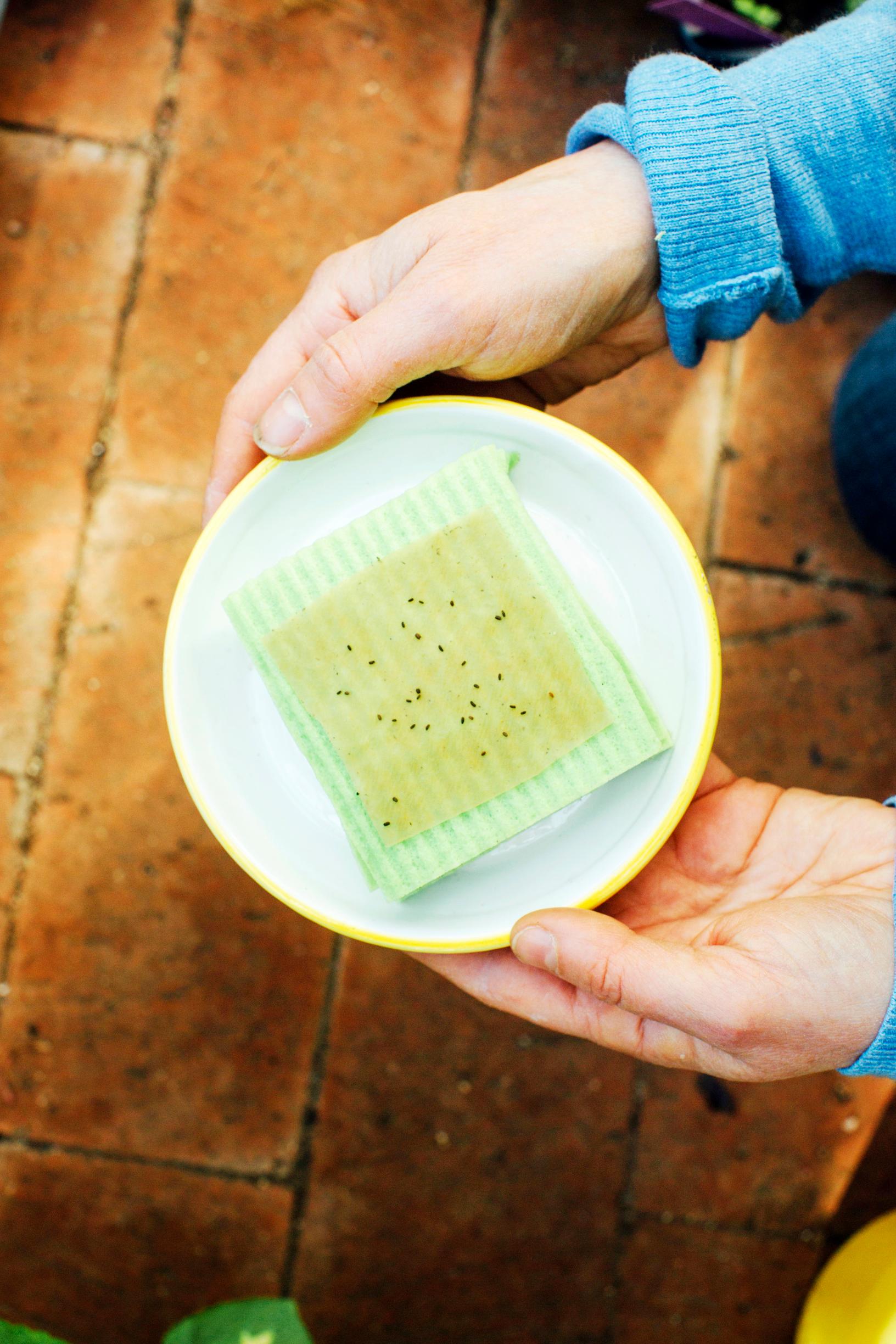 Jos haluat jouduttaa taimettumista, laita siemenet suodatinpussin ja imukykyisen alustan päälle ja peitä ne ilmavasti esimerkiksi juomalasilla tai kelmulla. Älä päästä siemeniä kuivumaan. Kun alkeisjuuri pilkistää esiin, siirrä siemen hellävaroen multaan.