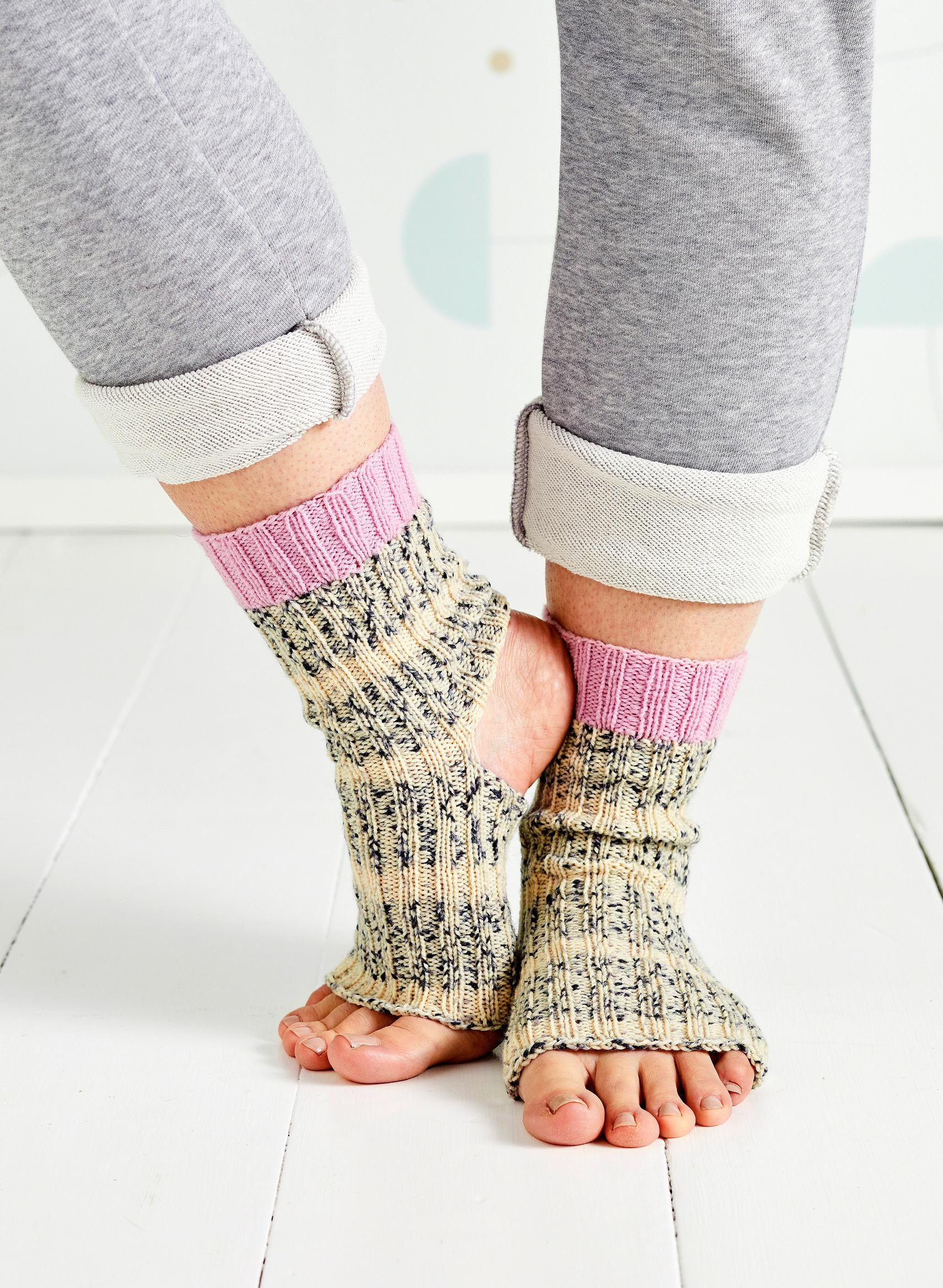 Joogasukat pitävät jalat lämpiminä, mutta varpaat ja kantapäät luistamattomina asanoissa. Sukat neulotaan pehmeästä merinovillasta, ja mikä parasta, kantapäätä ja kärkikavennuksia ei tarvitse tehdä.