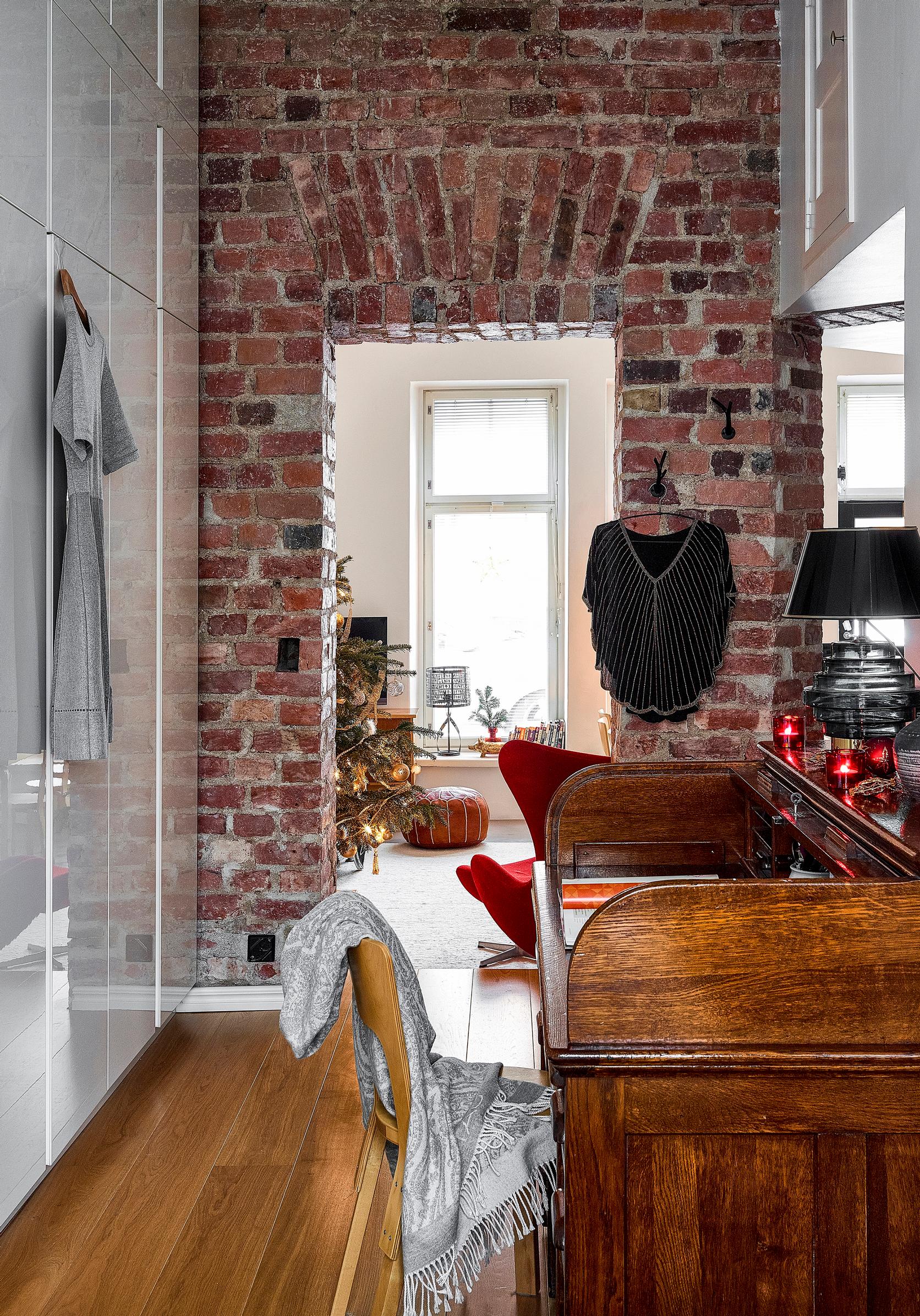 kotimme vanhoista tiiliseinistä. Ne olen kuorinut esiin omin käsin, tiilen kerrallaan. En uskaltanut antaa hommaa remonttimiesten tehtäväksi, ettei upea tiilipinta tuhoutuisi liian rajussa käsittelyssä. Muutamaa kohtaa jouduimme paikkaamaan, ja muurasin sekaan vanhoja tiiliä. Projektiin kului useita viikkoja. Seinästä tuli mielestäni yksi kotimme hienoimmista yksityiskohdista.