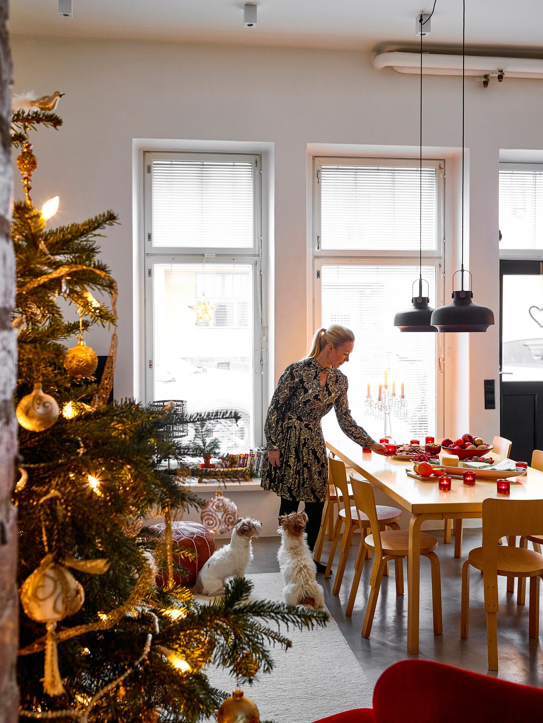 täällä ovat joulua edeltävät glögijuhlat joulukuun puolivälin tuntumassa. Kutsumme niihin paljon ystäviä ja juhlistamme joulunaikaa yhdessä. Vaikka olemme usein aaton Keski-Suomessa lumisissa maisemissa, laitan kodin silti yhtä jouluiseksi. Usein somistan joulua kotiin itsenäisyyspäivän aikaan.