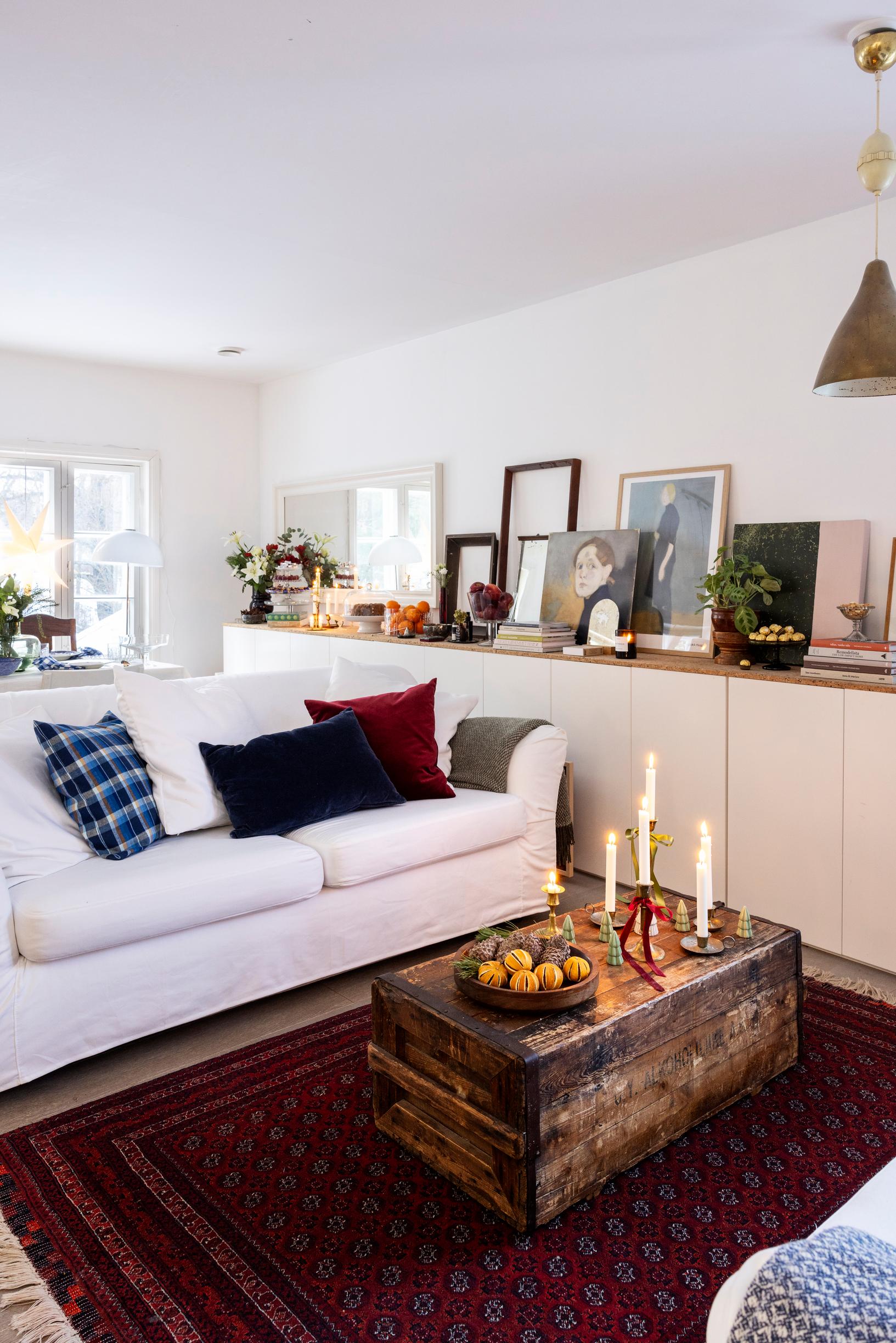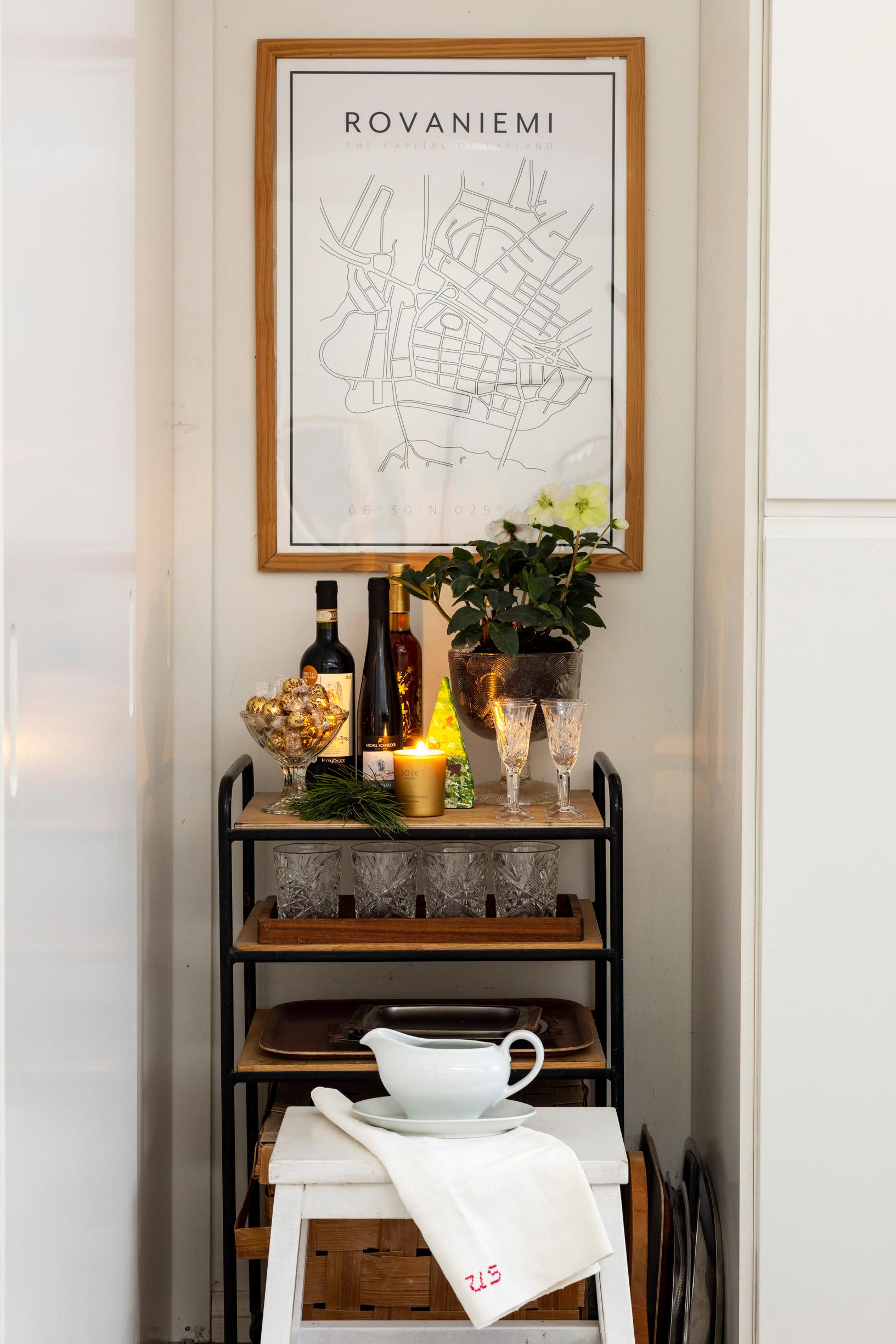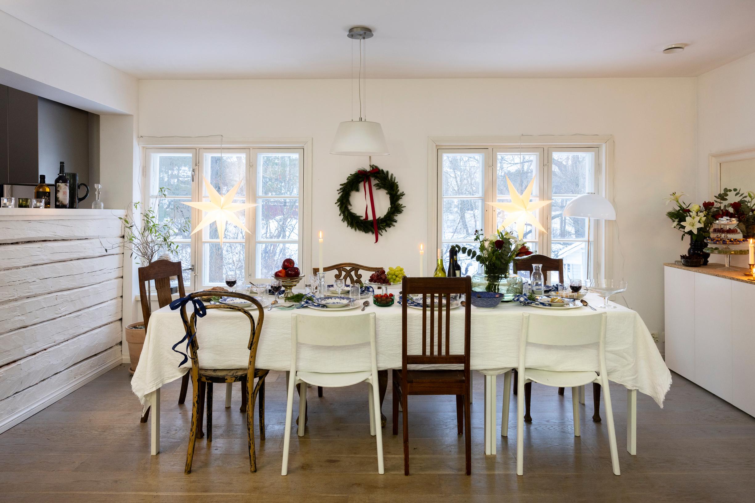 Kahden yrittäjän perheessä jouluun laskeudutaan toisinaan syöksykierteellä. Haaveilen usein täydellisen siististä ja kauniista joulukodista. Aina kuitenkin jokin paikka ryöppyää setvimättömiä paperipinoja tai lasten vaatteita. Panostan tiloihin, joissa oikeasti vietämme aikaa, eli olohuoneeseen, keittiöön ja ruokailutilaan. Eteisen kenkäkaaos ei haittaa, sillä ei meistä kukaan jouluaan eteisessä vietä. Priorisoin, jotta ehdin kaiken.