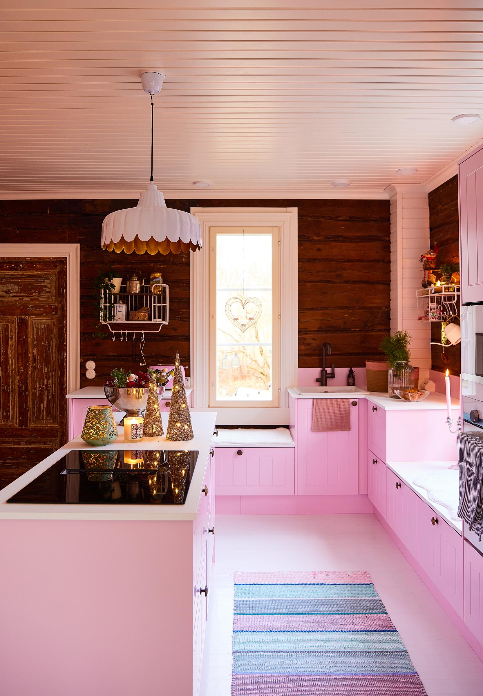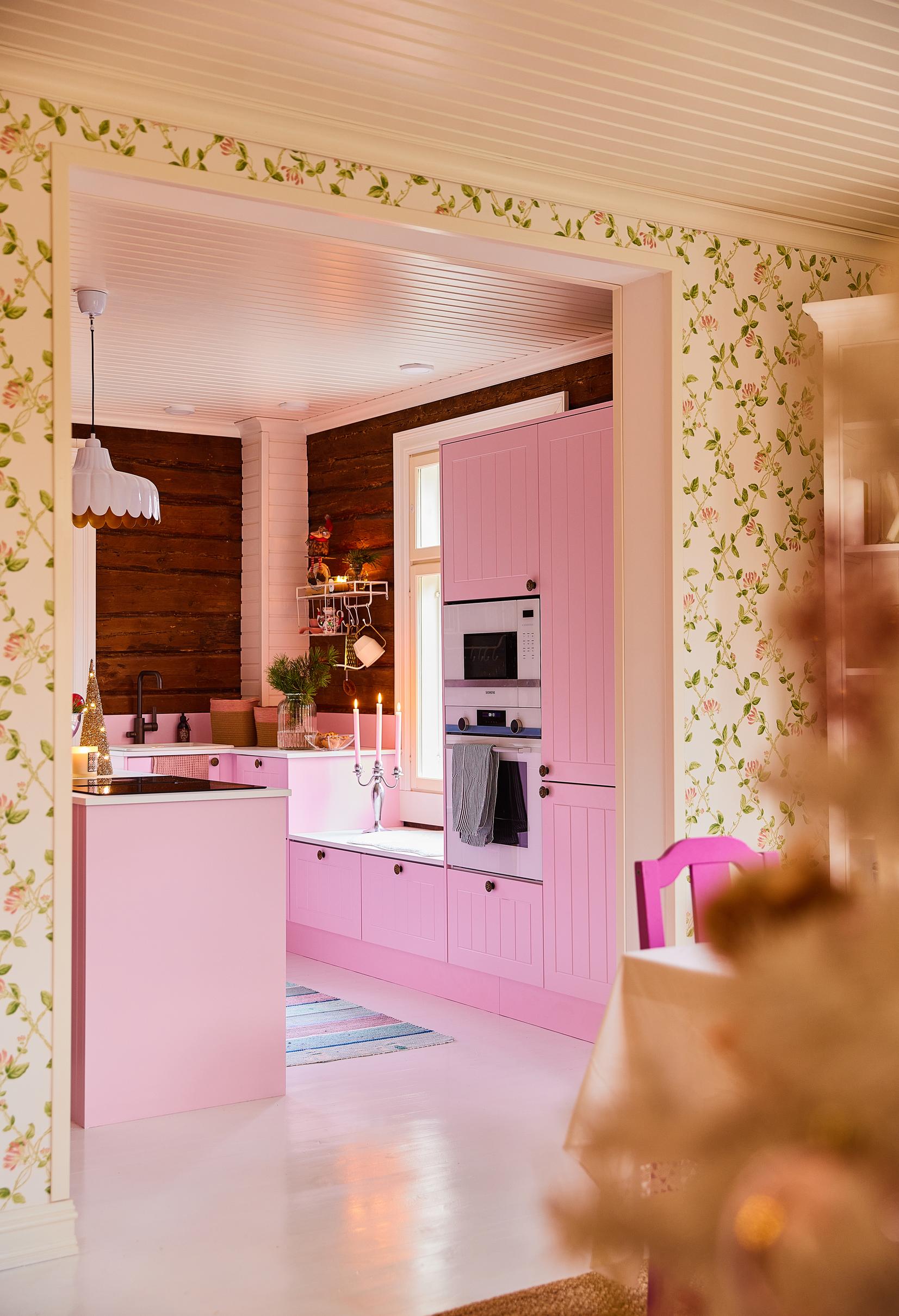 Jouluinen Villa Vappu on värikäs kuin karkkipussi – ”Olin aina unelmoinut vaaleanpunaisesta keittiöstä, ja sekin on nyt täällä”