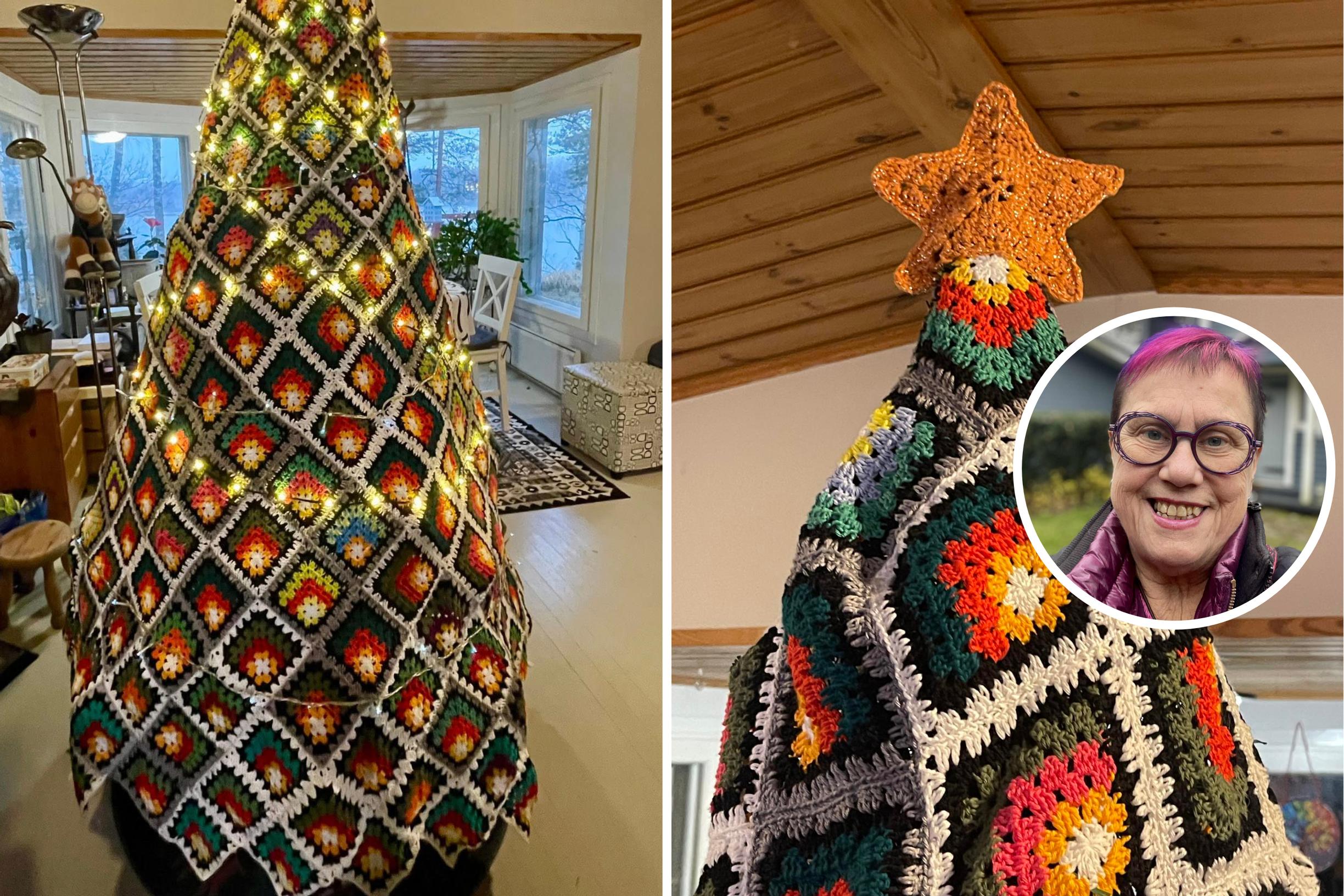 Tämä joulukuusi ei taatusti varista! Marsa virkkasi kuusen noin 300 isoäidinneliöstä