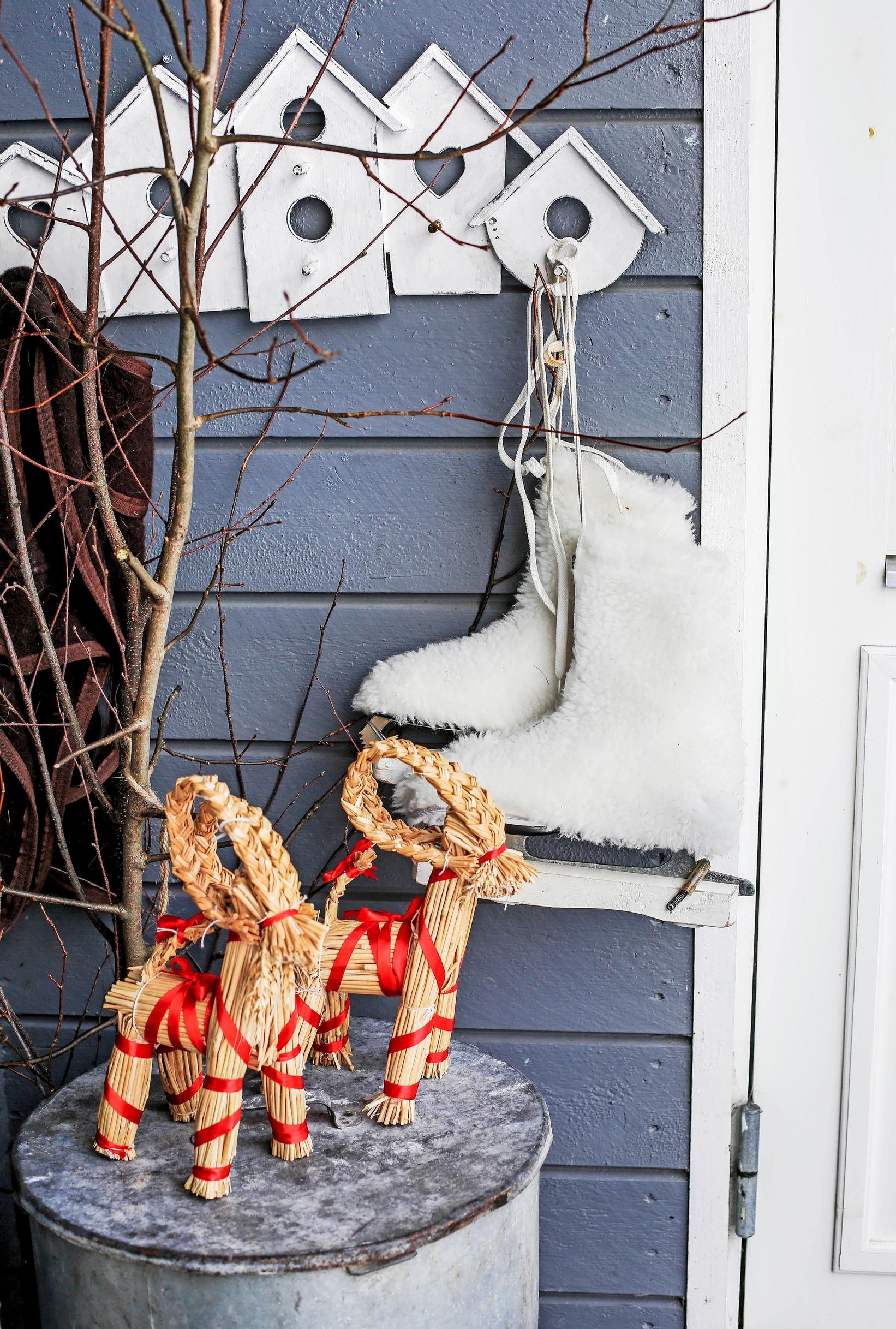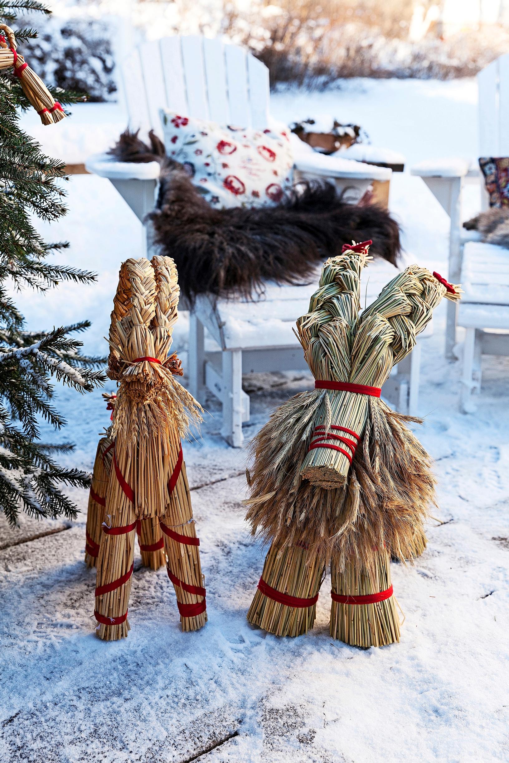 Olki on perinteinen joulukoristeiden materiaali, ja siitä innostuttiin uudelleen sodan jälkeisen materiaalipulan aikaan. 1950-luvulla ensimmäiset suomalaiset sisustuslehdet neuvoivat koristelemaan kotia hillityn tyylikkäästi olki- ja puukoristeilla.