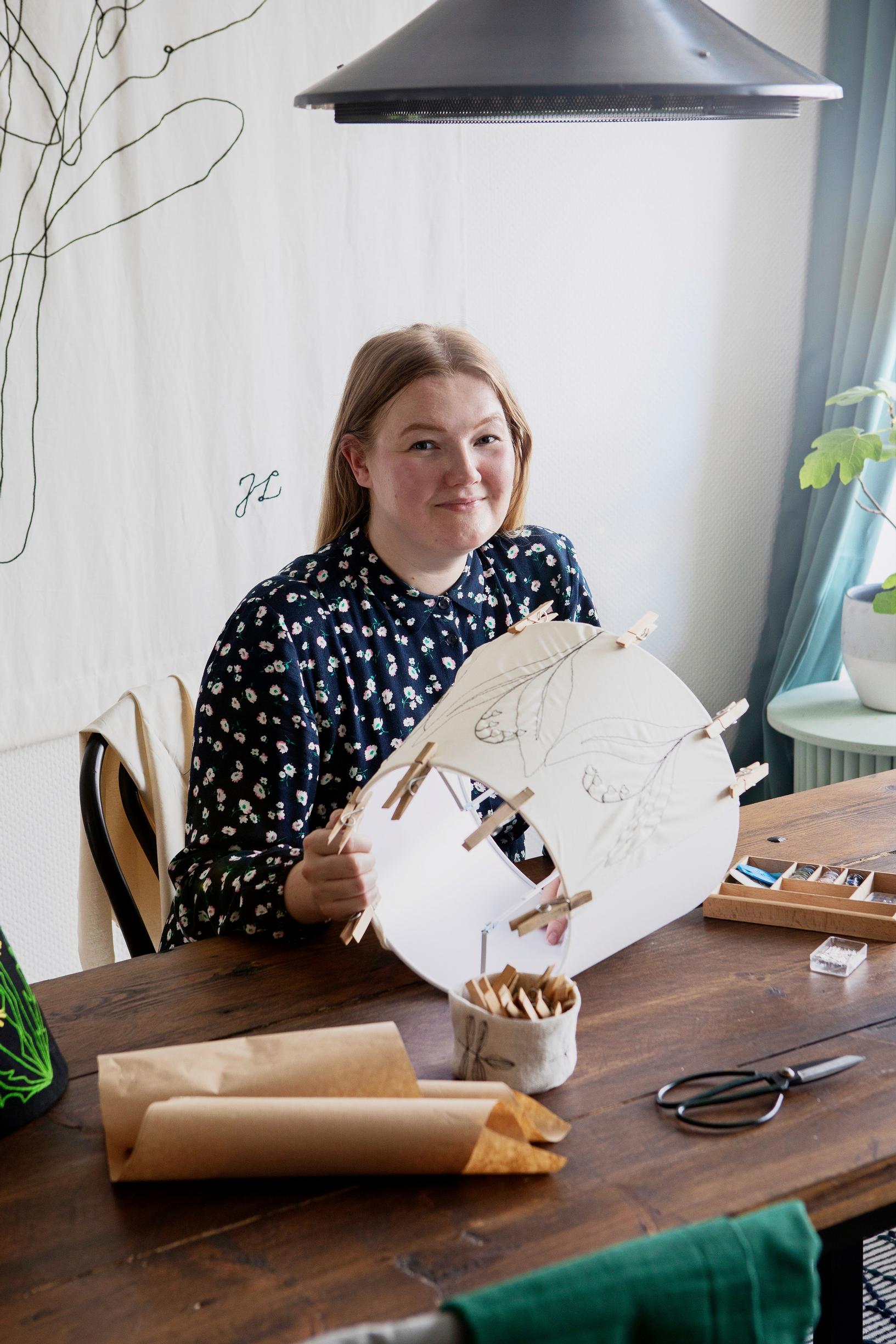 "Löysin brodeeramisen valmistuttuani valokuvaajaksi. Minusta tuntui, että tarvitsin harrastuksen, jossa voisin käyttää luovuuttani uudella tavalla. Halusin tehdä enemmän käsilläni. Aloitin ompelemalla vaatteita, mutta siirryin pian brodeeraukseen. Aluksi kirjoin käsin, mutta pian huomasin sen olevan tekniikkana minulle liian hidas.