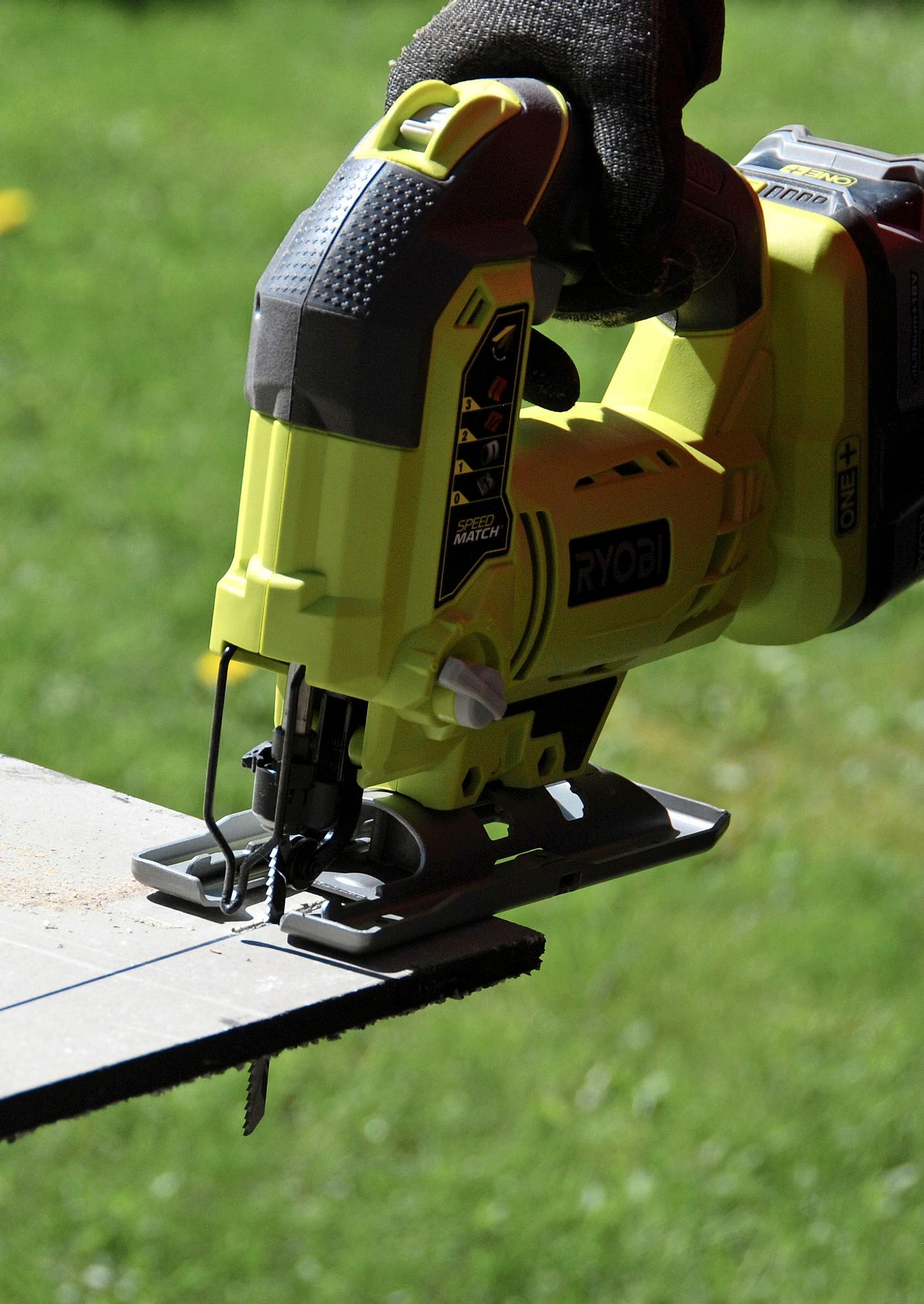 5. Leikkaa sokkelilevyt mittaan. Voit tilata levyt joko sellaisinaan tai määrämittaan valmiiksi leikattuina. Jos teet sokkelin pinnoituksen itse, muista leikata levyt aina takapuolelta, jotta reunasta tulee siisti. Parhaiten homma hoituu käsisirkkelillä, mutta se sujuu joutuisasti myös kuviosahalla. Ota avuksi imuri, jotta saat pölyt talteen.