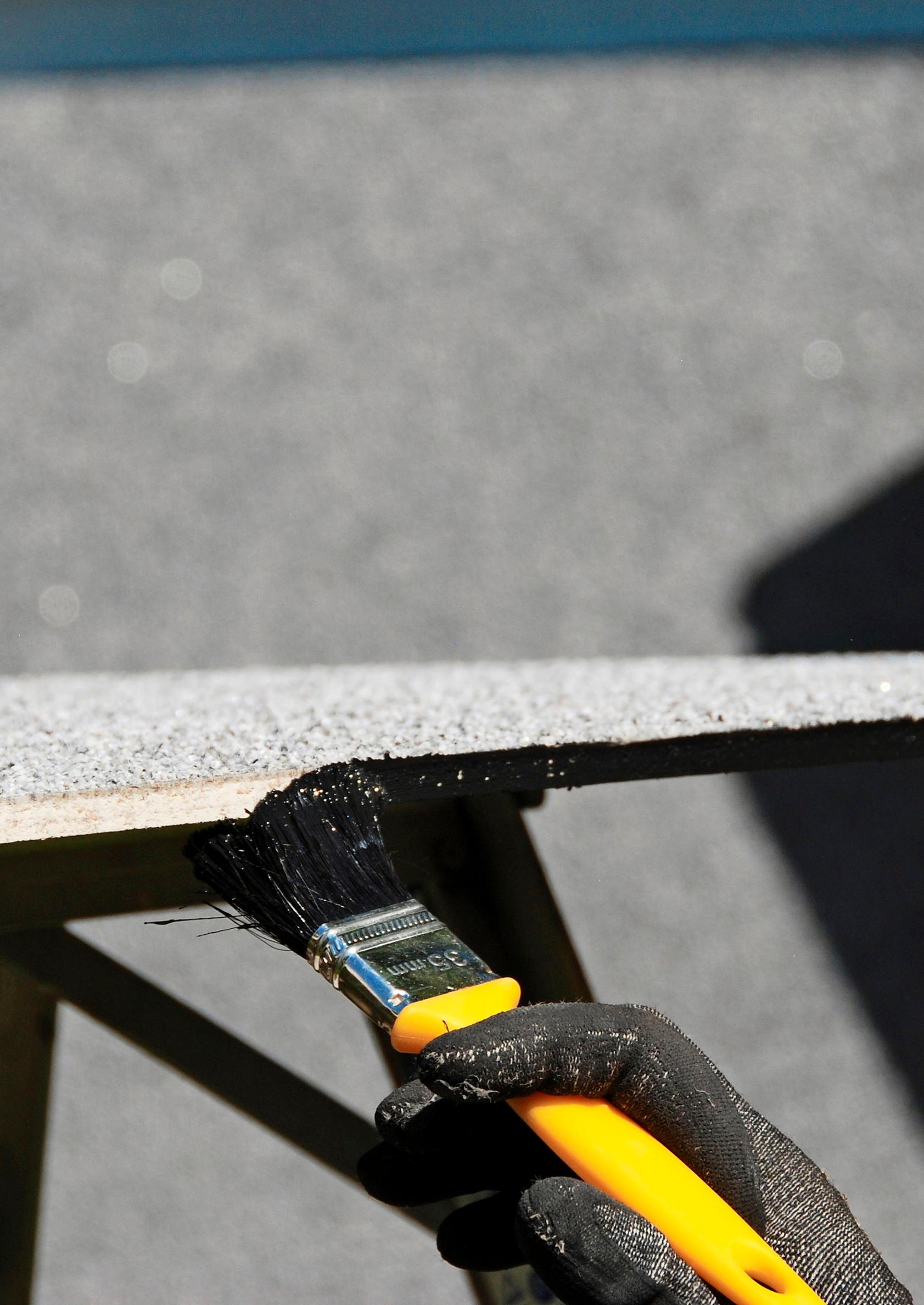 3. Lisää tiiviste puiden päälle. Kun koolauspuut ovat paikoillaan, liimaa niiden päälle solumuovinen tiivistenauha. Nauha toimii tarpeellisena liikuntasaumana levyn ja koolauspuun välissä. Nauhassa on tarrapinta, joten voit vain painaa sen kiinni. Leikkaa nauha sopivaan mittaan saksilla tai mattopuukolla.