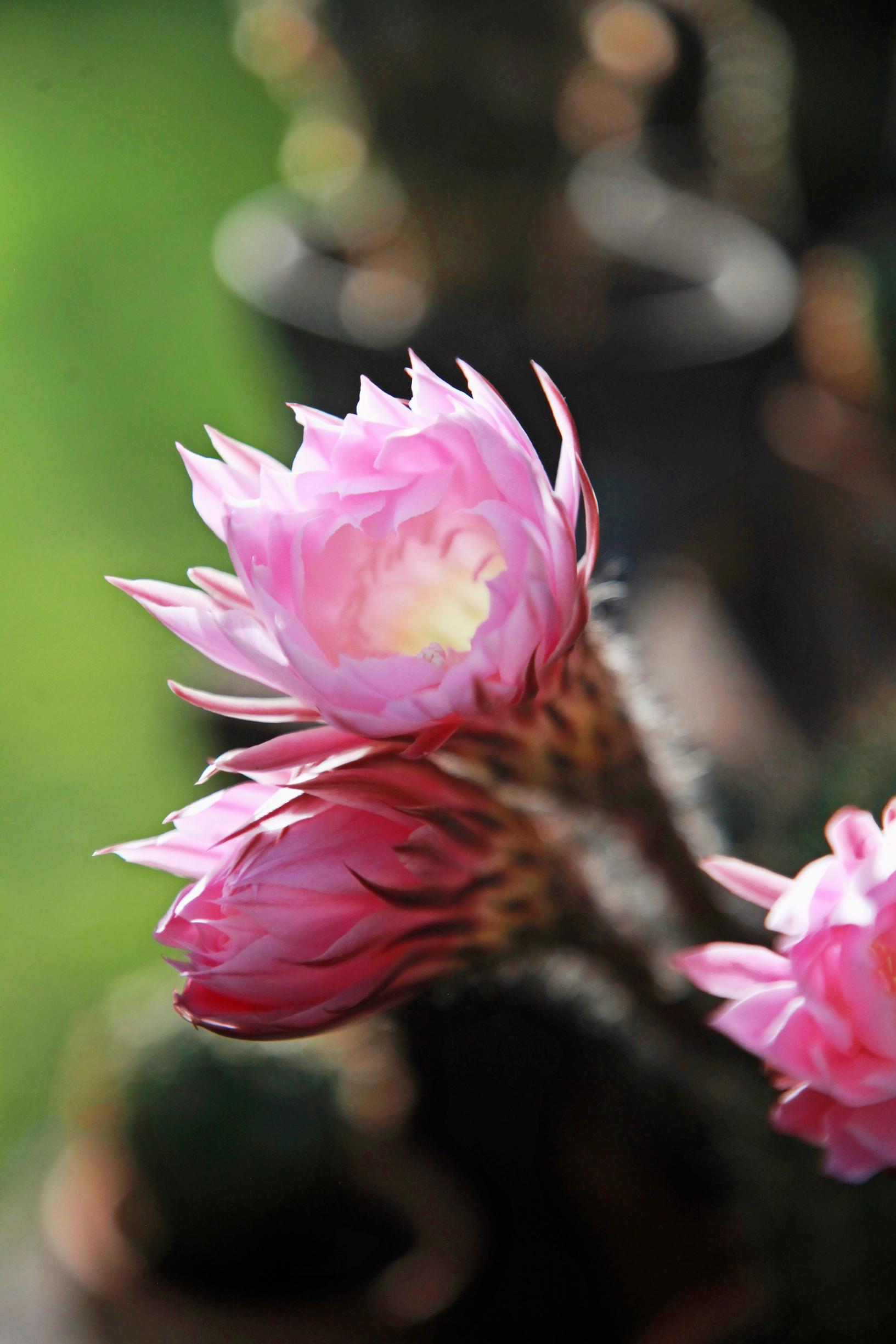 Kukat ovat isoja ja vaaleanpunaisia yhtä valkokukkaista kaktusta lukuun ottamatta. Ne tuoksuvat parfyymimäiseltä varsinkin iltaisin.