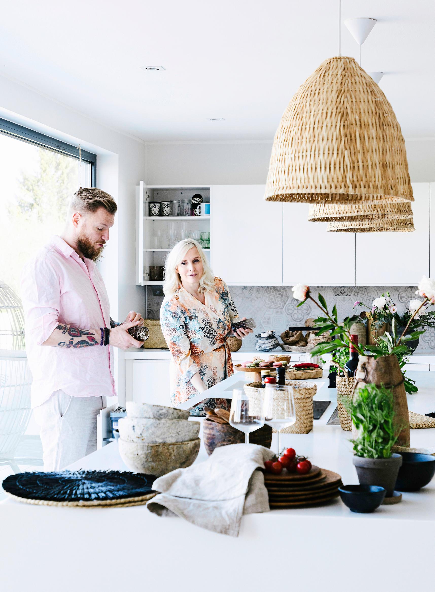 Pari haluaa kodin olevan molempien näköinen. Tämän vuoksi suuri muutos vitivalkoisesta rouheaan bohoon oli välttämätön, vaikka se käynnistyikin lähes itsestään.