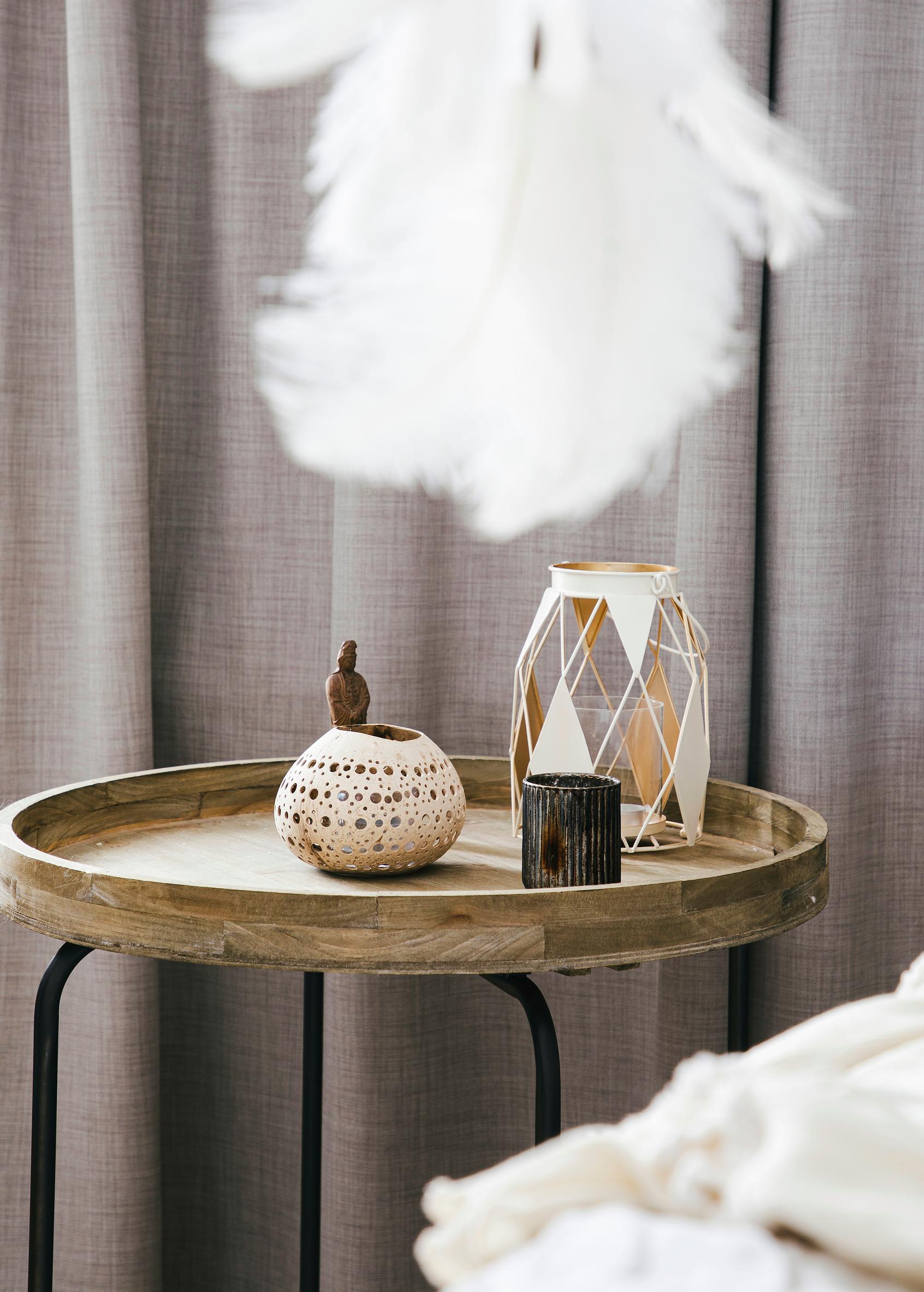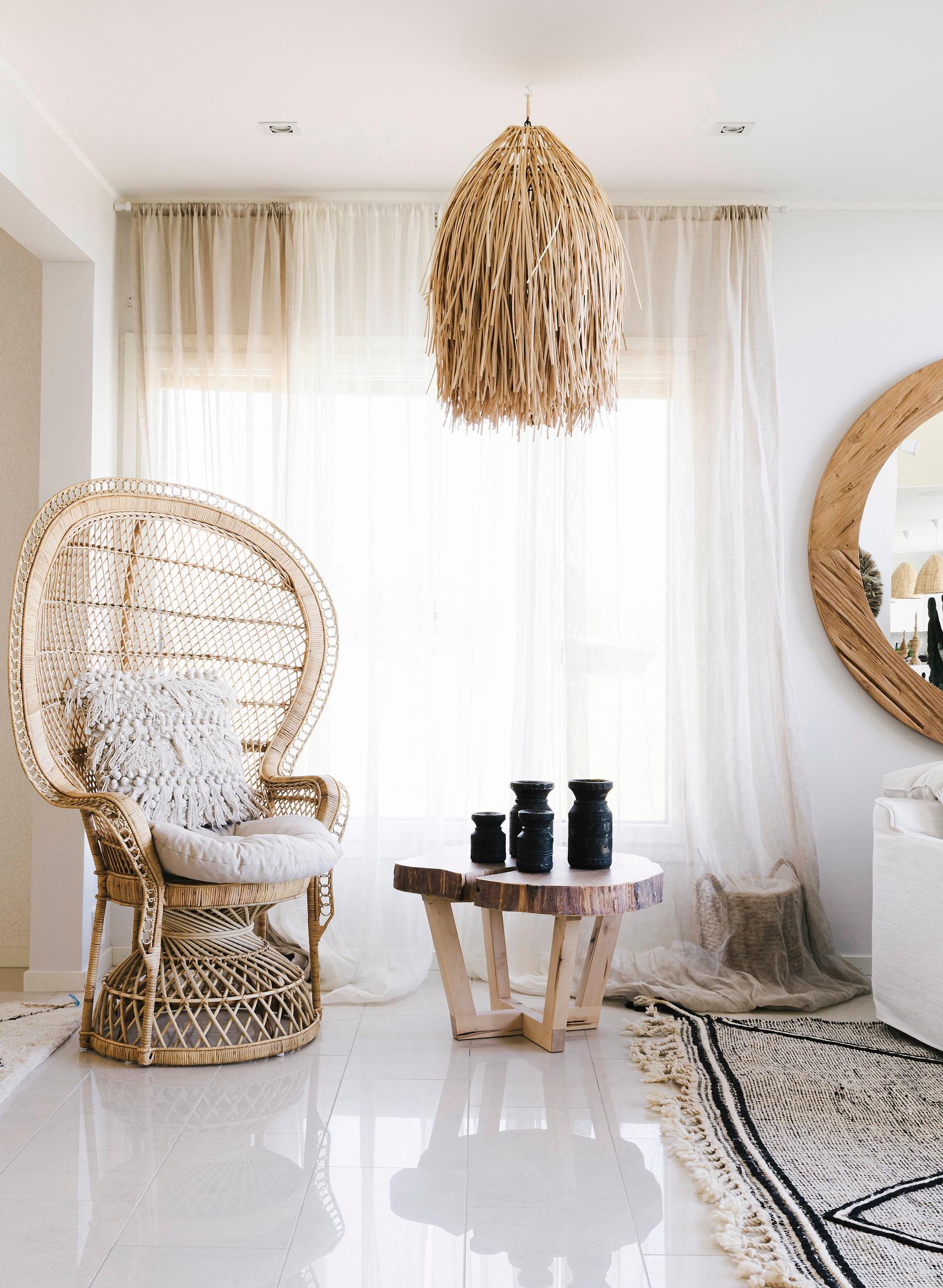 – Pikkuhiljaa sisustukseen alkoi ilmaantua yhä enemmän puunsävyjä. Tilasin tuotteita ulkomaisista verkkokaupoista. Päädyin usein bohotyylisiin huonekaluihin ja esineisiin, jotka oli tehty luonnonmateriaaleista.