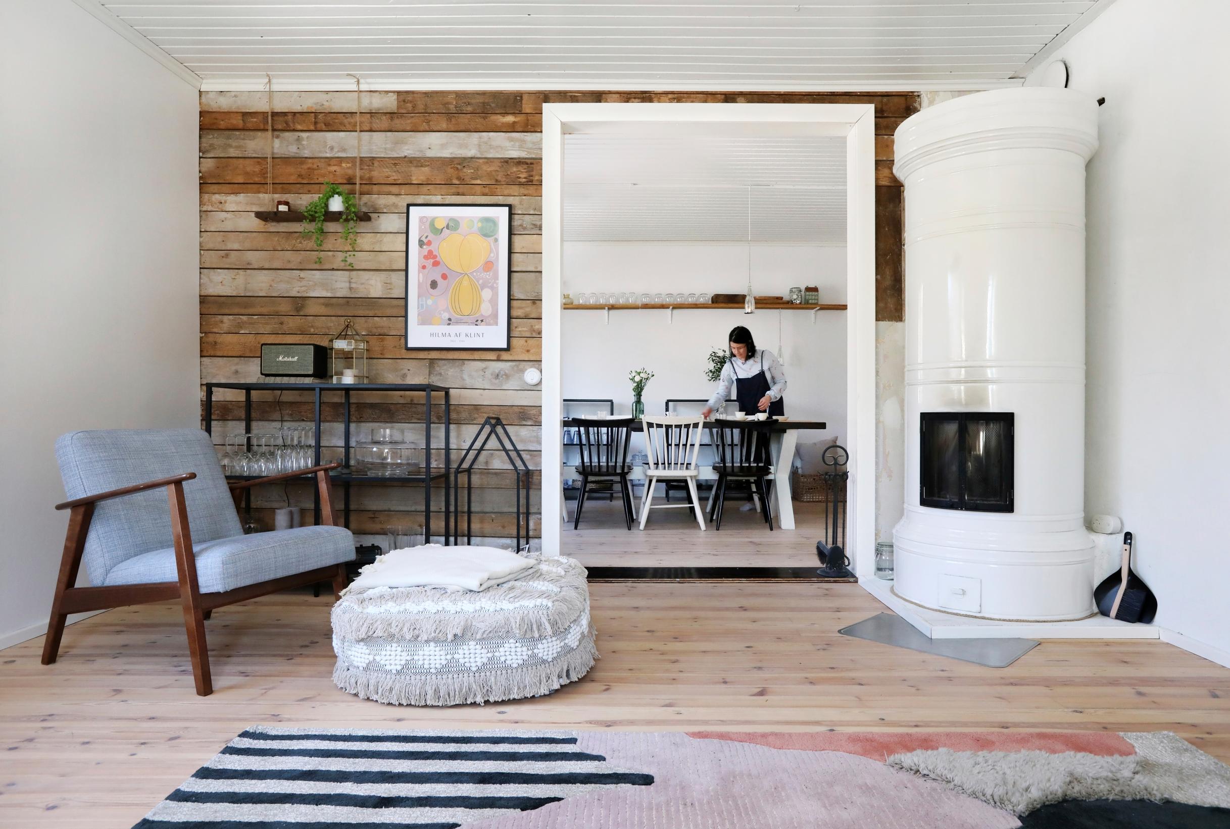 Tapetinriekaleet koristavat lautaseiniä ja lattia narisee täydellisesti – Saden ja Alessandron rintamamiestalossa roso saa näkyä