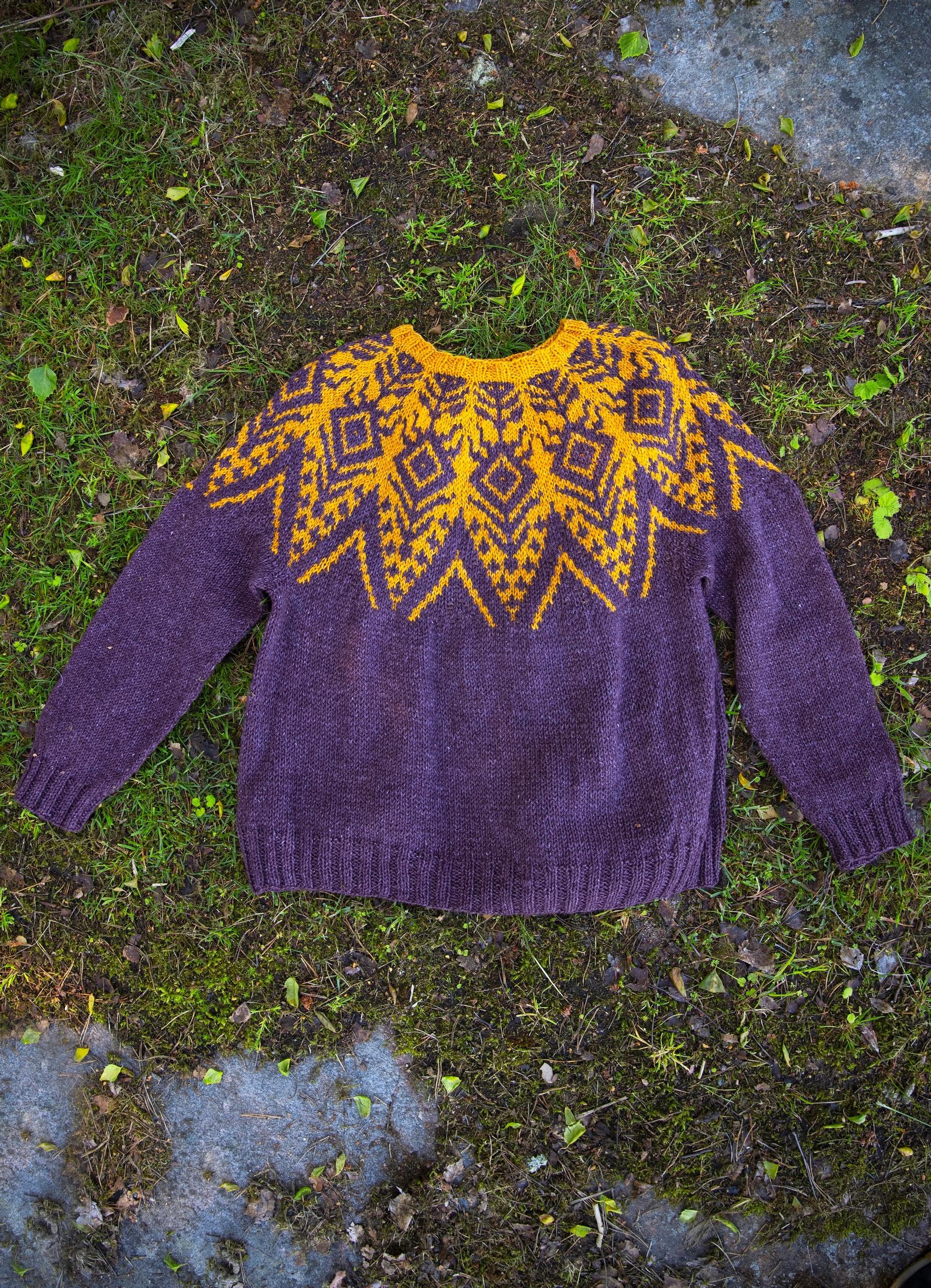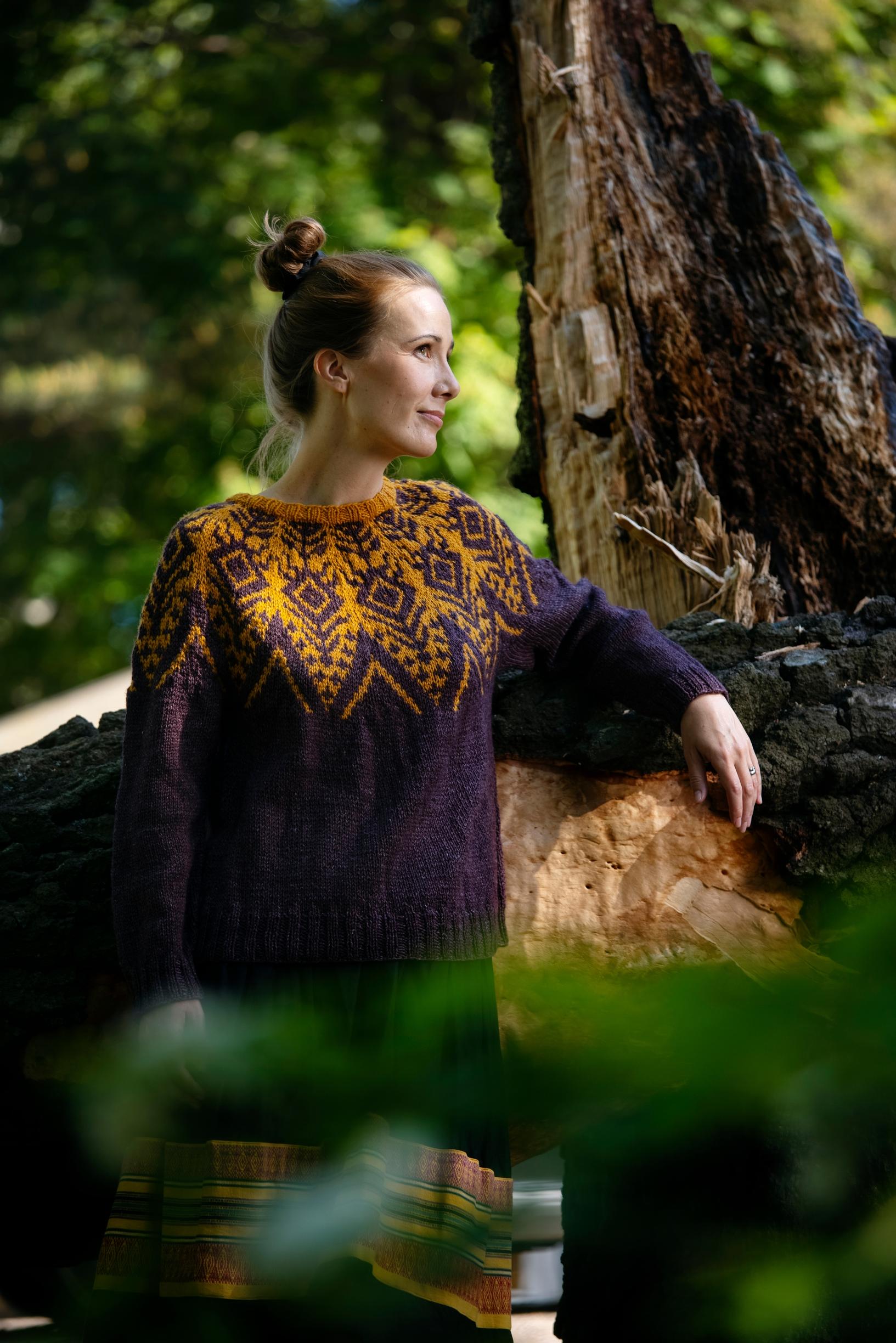 Kaarrokeneule on löytänyt tiensä monen neulojan puikoille, eikä ihme – perinnekäsitöistä ammentavat kuviot tarjoavat samaan aikaan silmäniloa ja haastetta. Tämä kaksivärinen, ylhäältä alas neulottava Ajattara-villapaita on inspiroitunut metsänhengistä. Ohjeessa on kuusi kokoa.