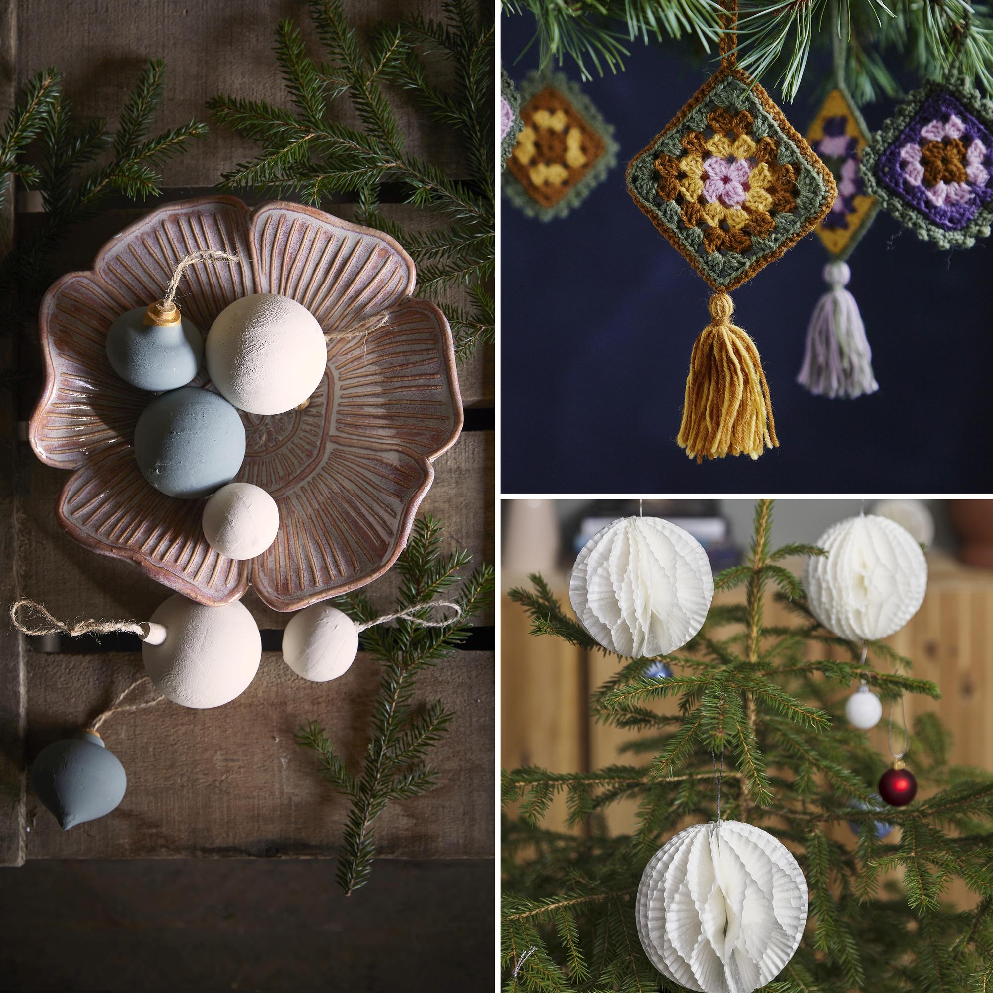 Oi kuusipuu! Joulukuusenkoristeet – kuten pallot, enkelit ja nauhat – pukevat kuusen juhla-asuun. Kokosimme ihanimmat ohjeet, joilla teet joulukuusenkoristeet itse.