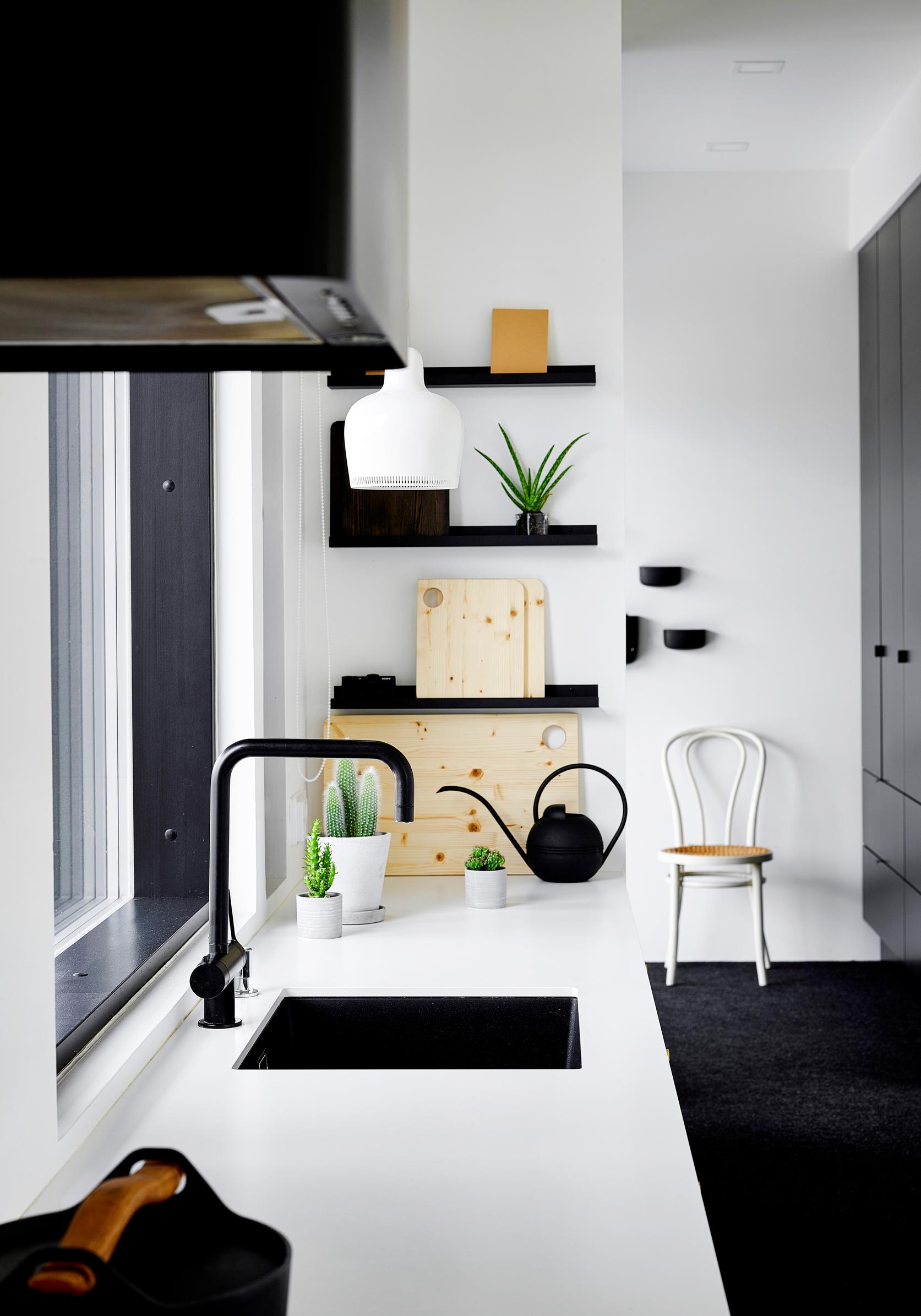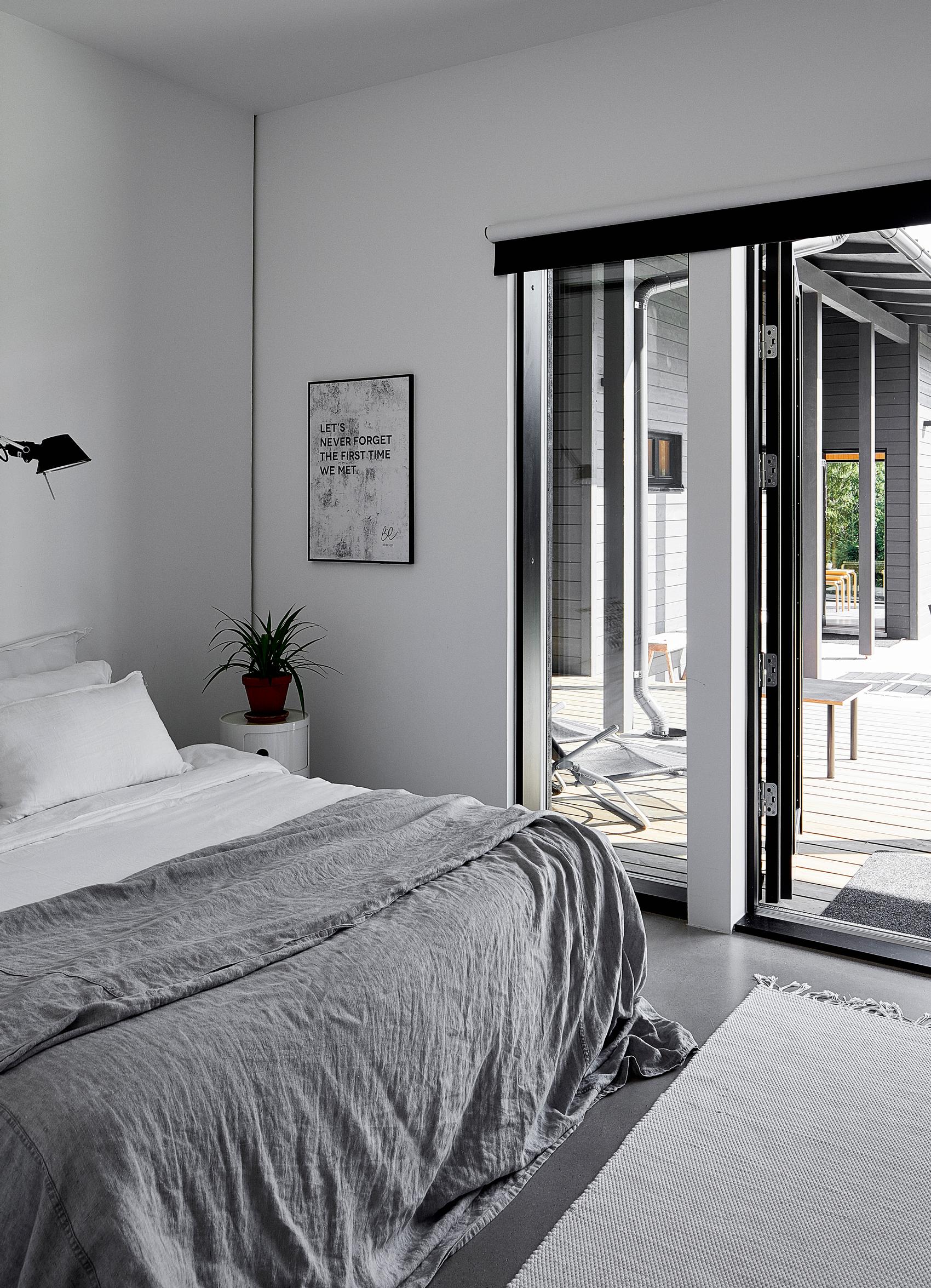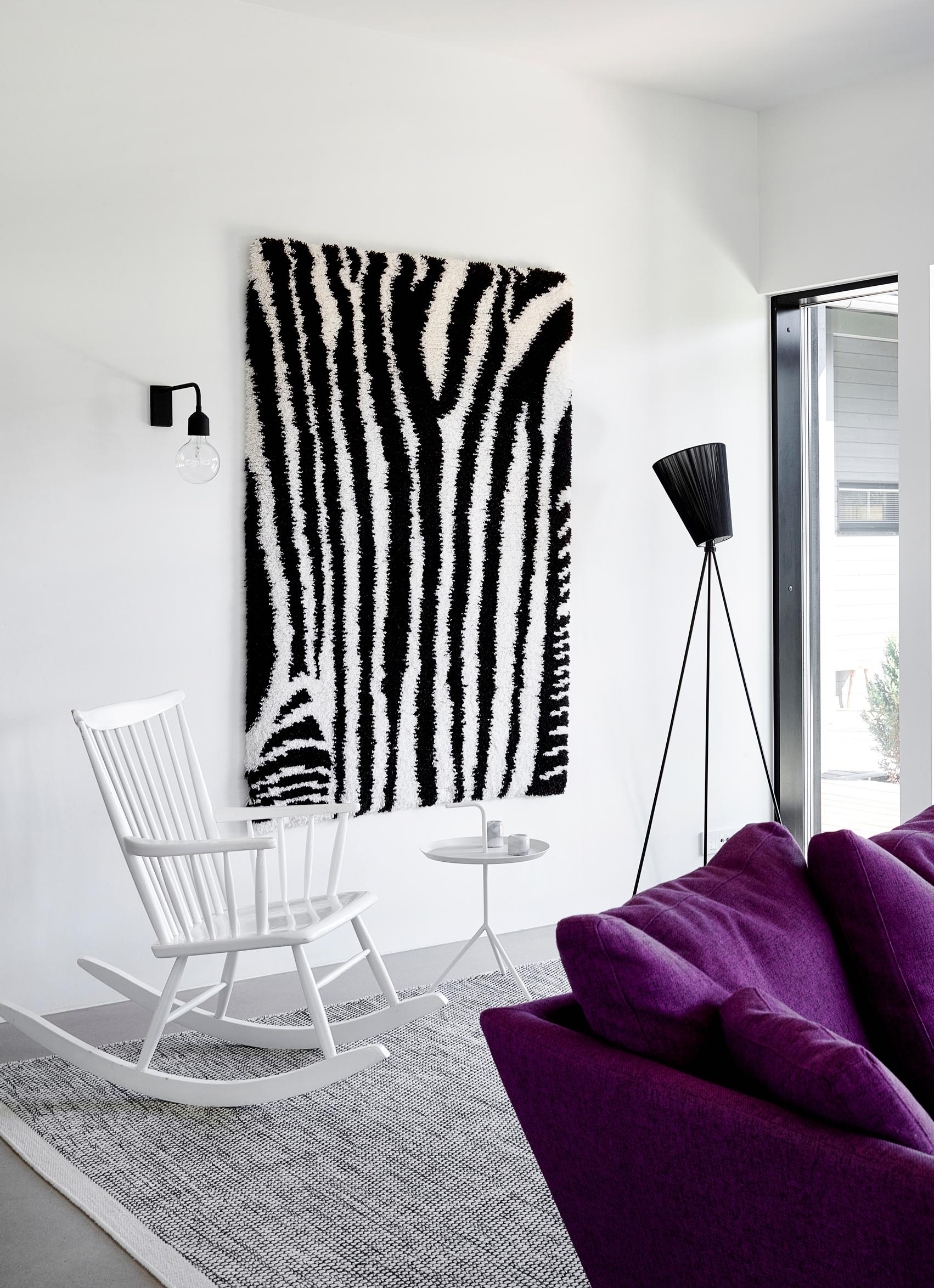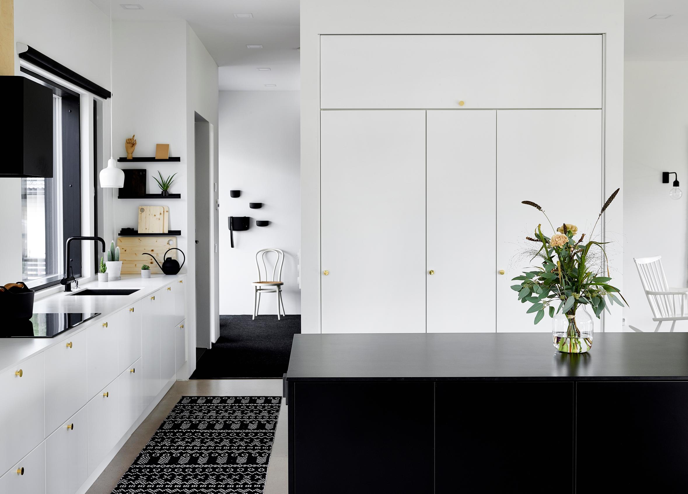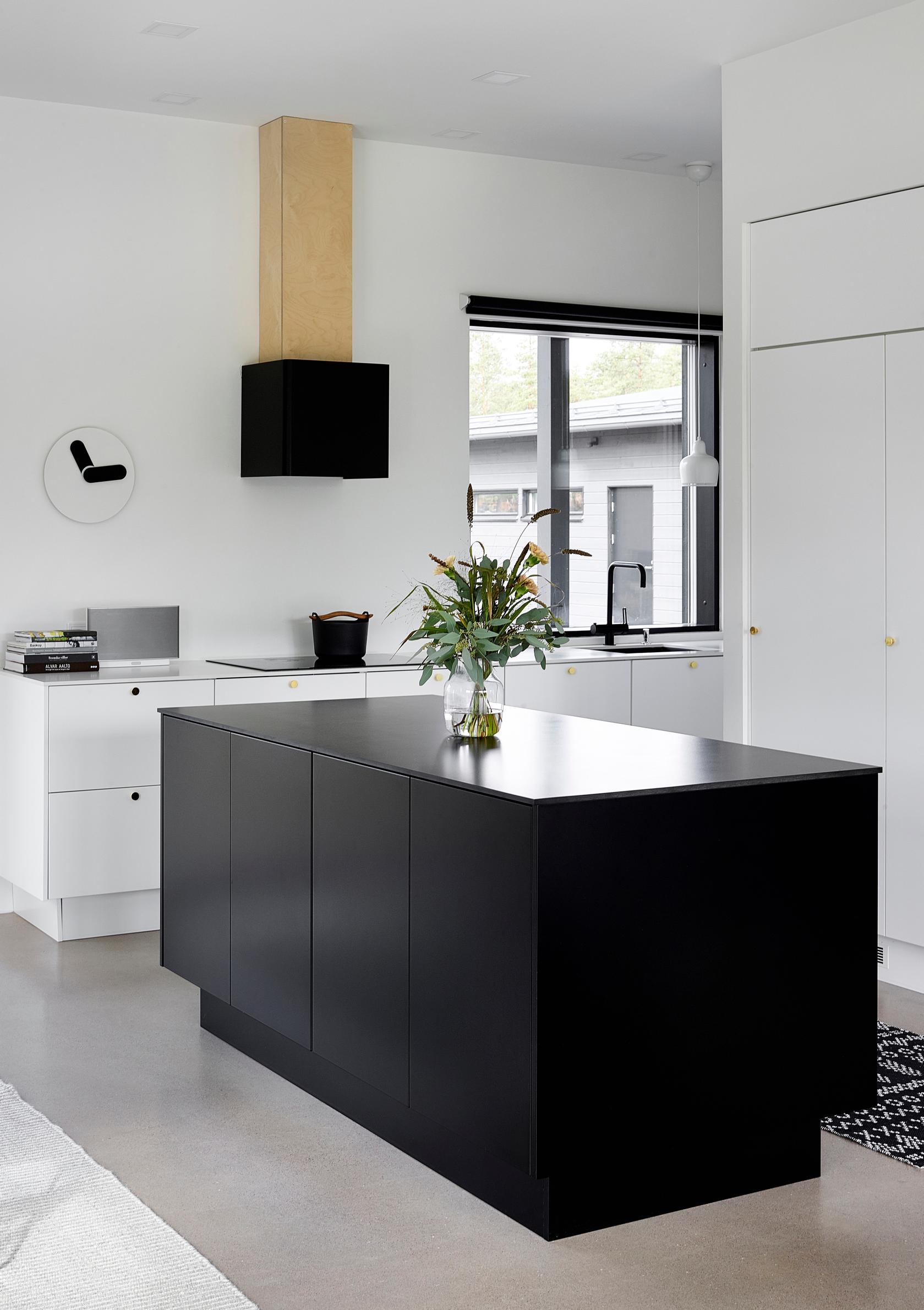 Sisustaminen on Jukan intohimo. Inspiraationa ovat sosiaalisen median kanavat sekä kotimainen rakennus- ja käsityöperinne. Makukin menee hyvin yksiin Kaisan kanssa. Kodin sisustukselliset valinnat on tehty ajattomiksi ja mustavalkoisen maun mukaisesti. Modernia kotia maustavat perinteikkäät kalusteet ja materiaalivalinnat. Käsistään taitavan miehen kädenjälki näkyy myös saunarakennuksen kalusteissa.